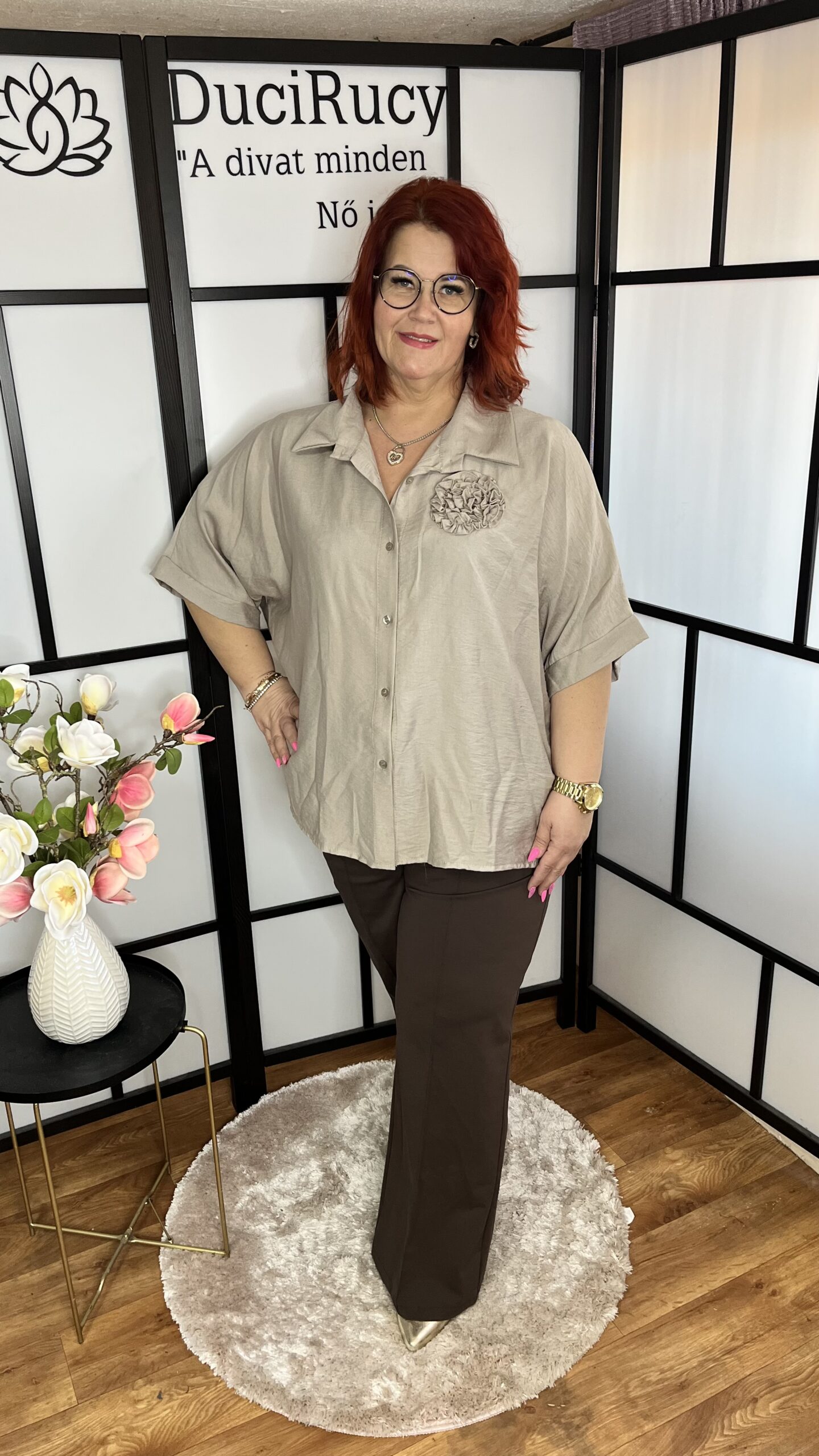 Szuper fazonú, laza, lenge anyagból készült, végig gombos ing. Az ingen egy 3D virágdíszítés található. Igazán trendi darab. Jól kombinálható. Az ing anyaga nem rugalmas.