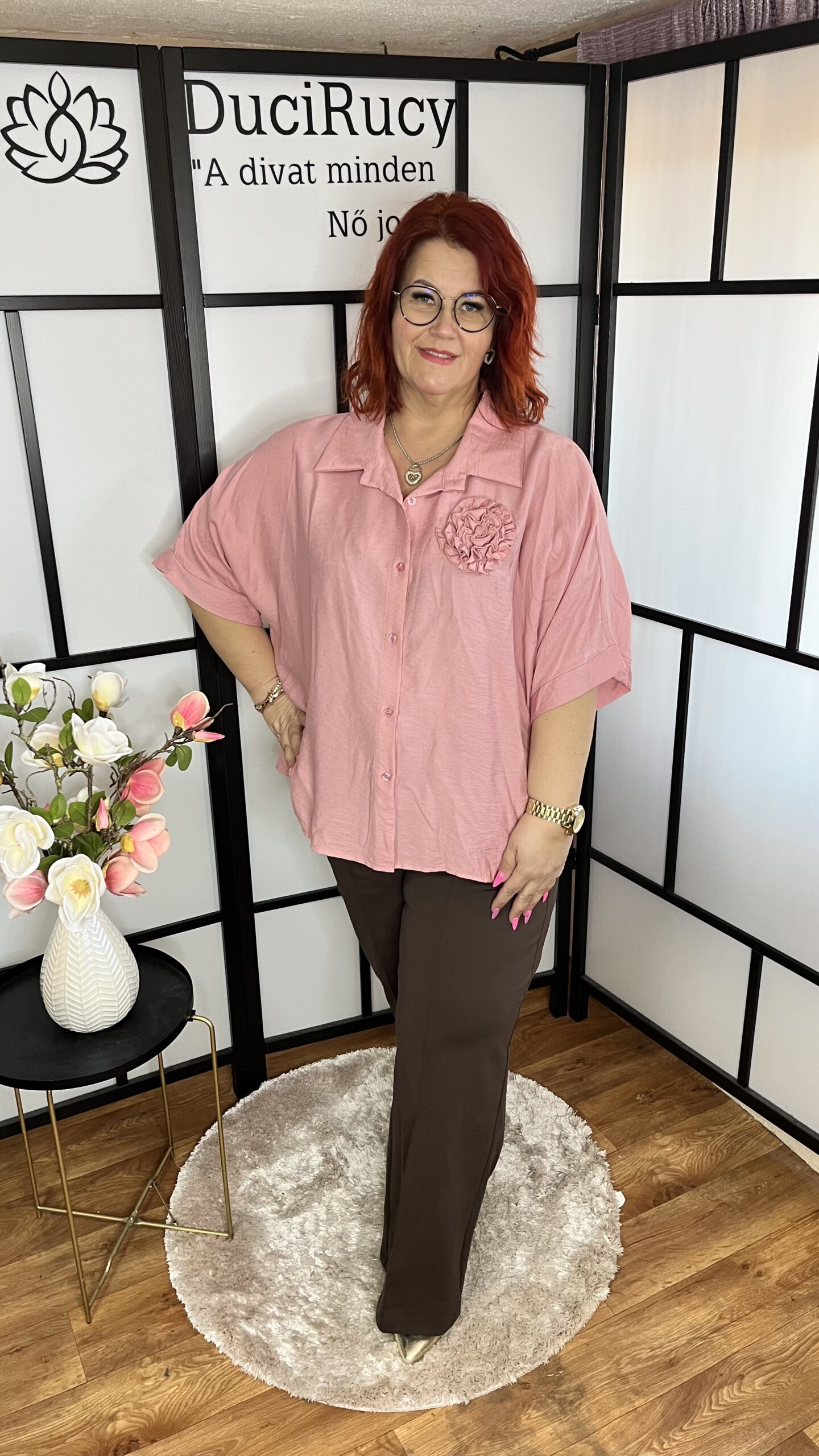 Szuper fazonú, laza, lenge anyagból készült, végig gombos ing. Az ingen egy 3D virágdíszítés található. Igazán trendi darab. Jól kombinálható. Az ing anyaga nem rugalmas.