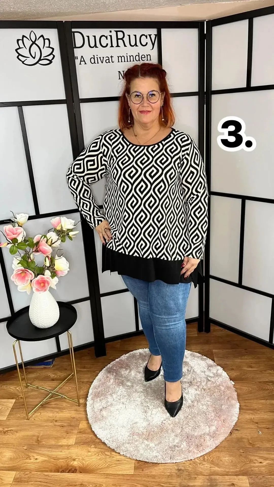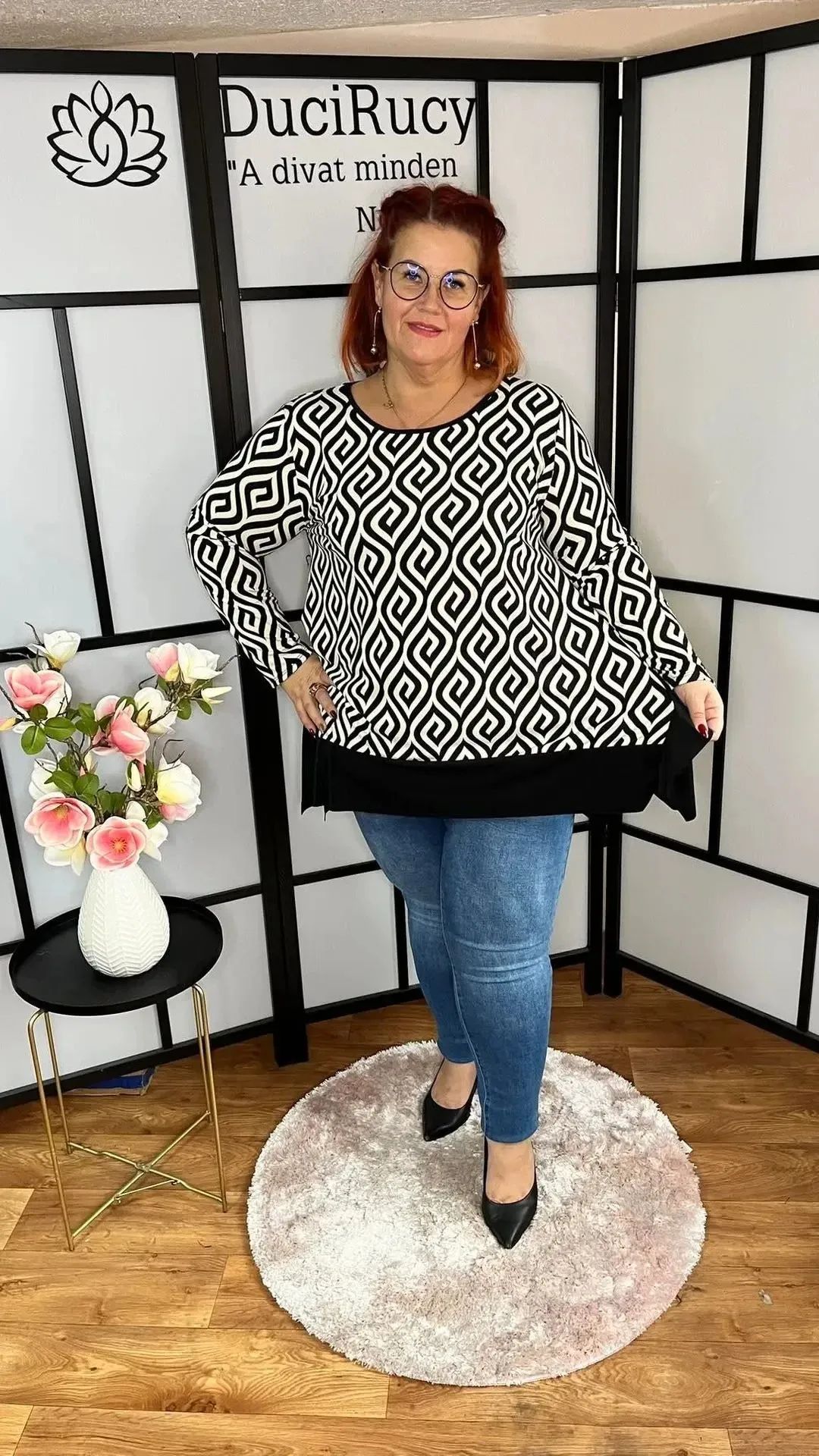 A vonalú jégselyem tunika - bézs-fekete hullám mintával