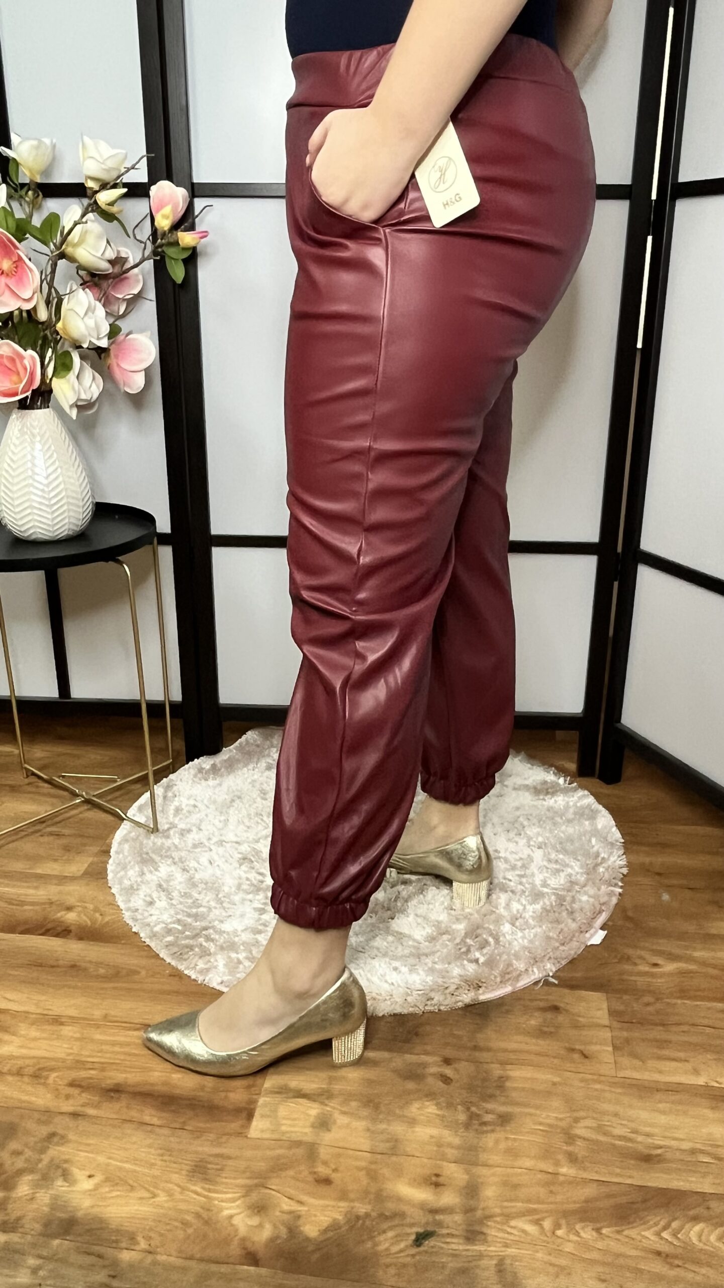 Alul gumírozott és gumis derékkal készült rugalmas műbőr nadrág. Sportosan és elegánsan is egyaránt hordható, nagyon kényelmes, trendi darab. Nem bélelt!