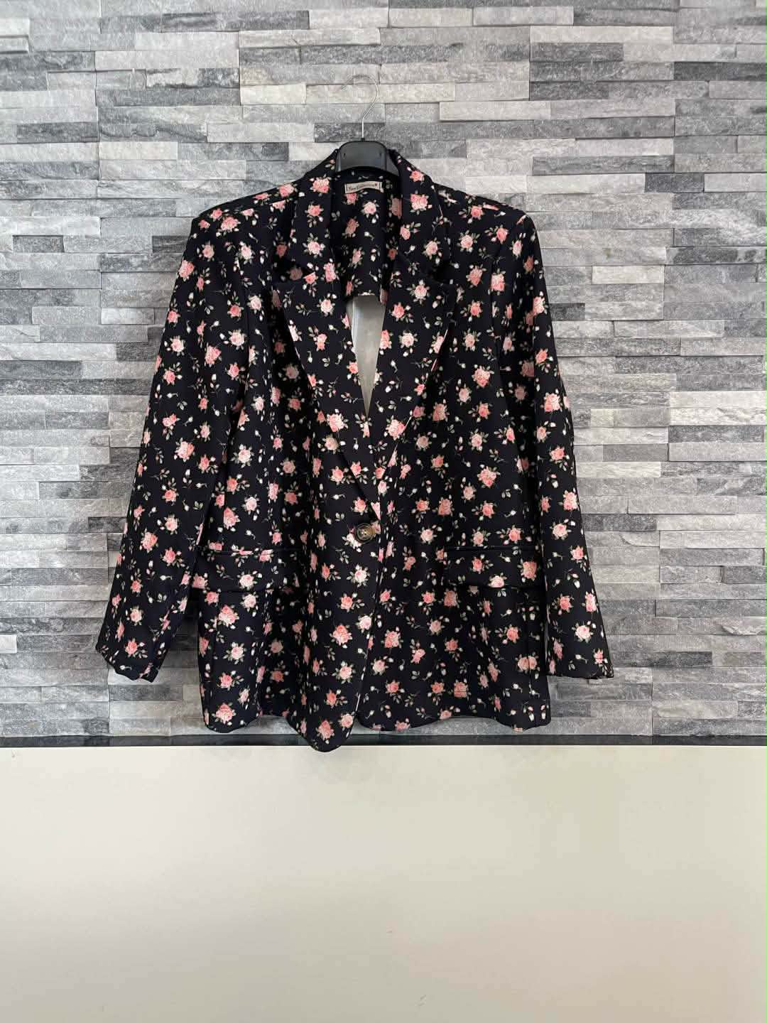 Apró virágos egy gombos blézer fekete színben