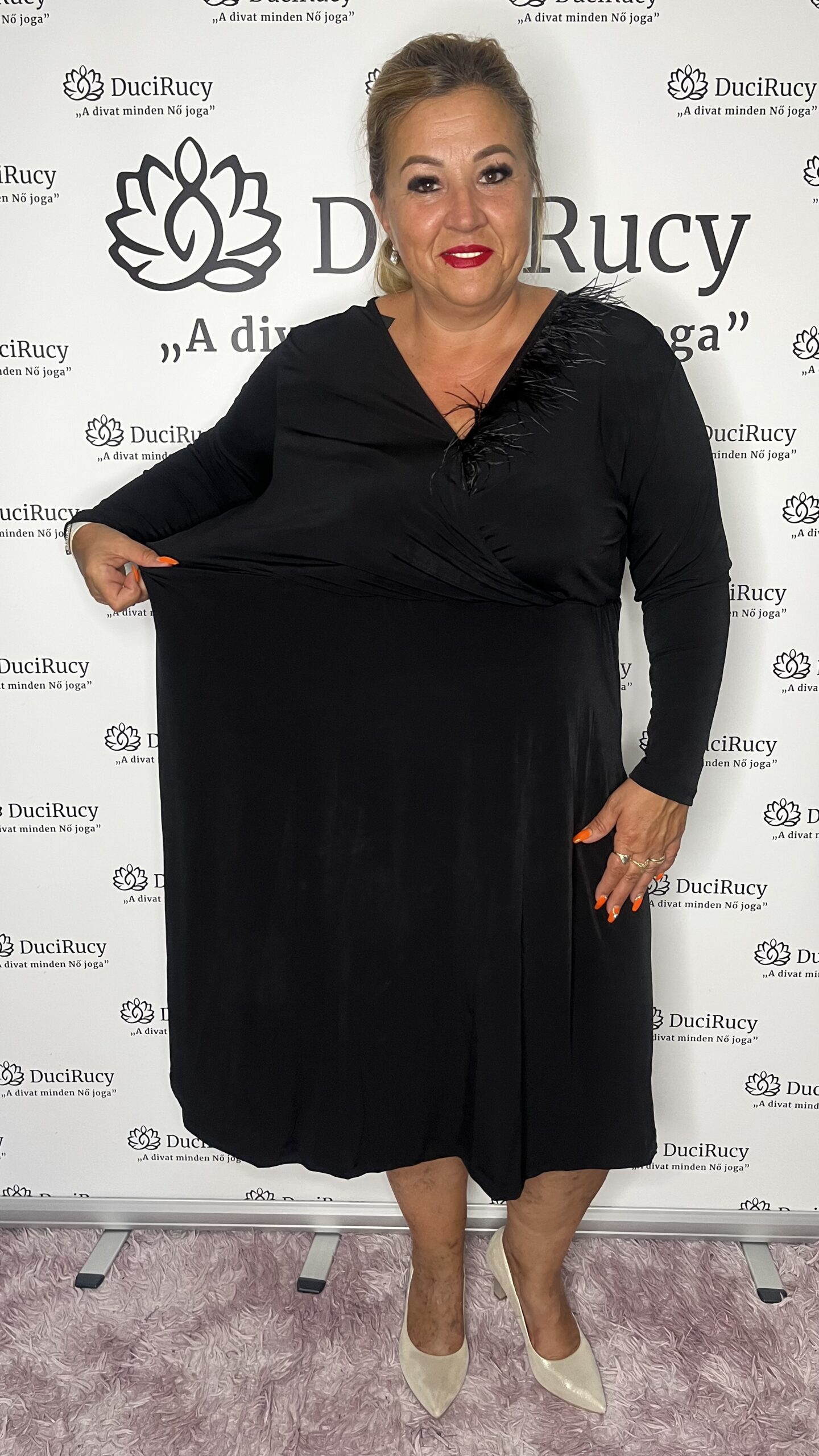Török prémium minőségű, átlapolt fazonú ruha, toll díszítéssel. Derékban gumis, lefelé loknis, térdet takaró. Igazi fiatalos, egyedi, dögös viselet! A ruha anyaga rugalmas. Bármilyen színű kiegészítővel remek viselet lehet bármilyen alkalomra.