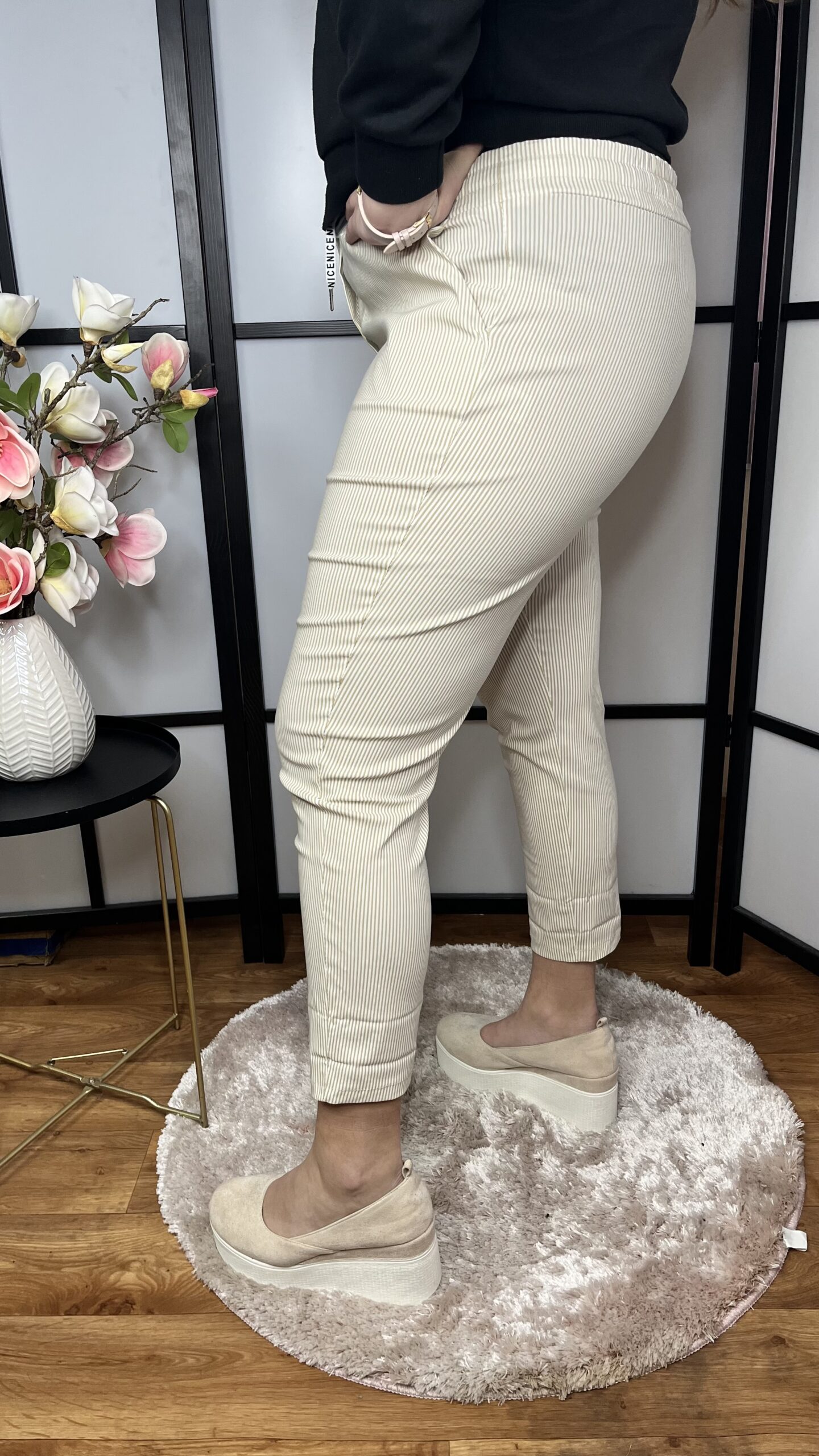 Olasz, rugalmas vászon nadrág gumis derékkal. Molett hölgyeknek kiváló viselet lehet bármilyen alkalomra. Normál magas derekú, ezért molett alakon is nagyon jól mutat. Remekül kombinálható sportos pólóval, tunikával, de akár egy elegáns blúzzal is, ezért a tavaszi/nyári gardrób alap darabja lehet ez a csodálatos rugalmas nagyméretű nadrág.