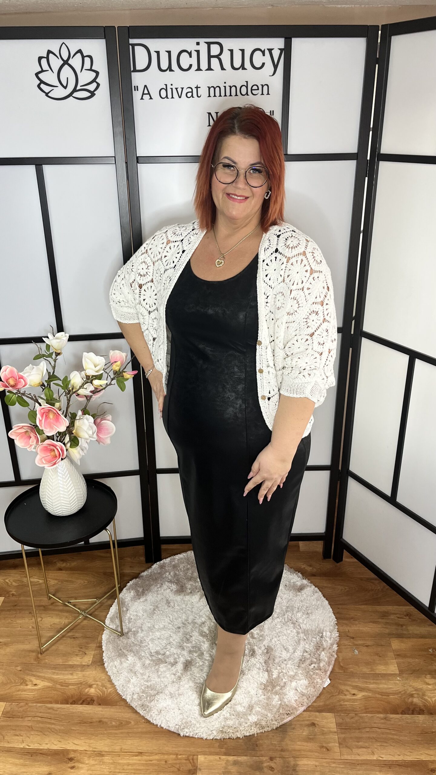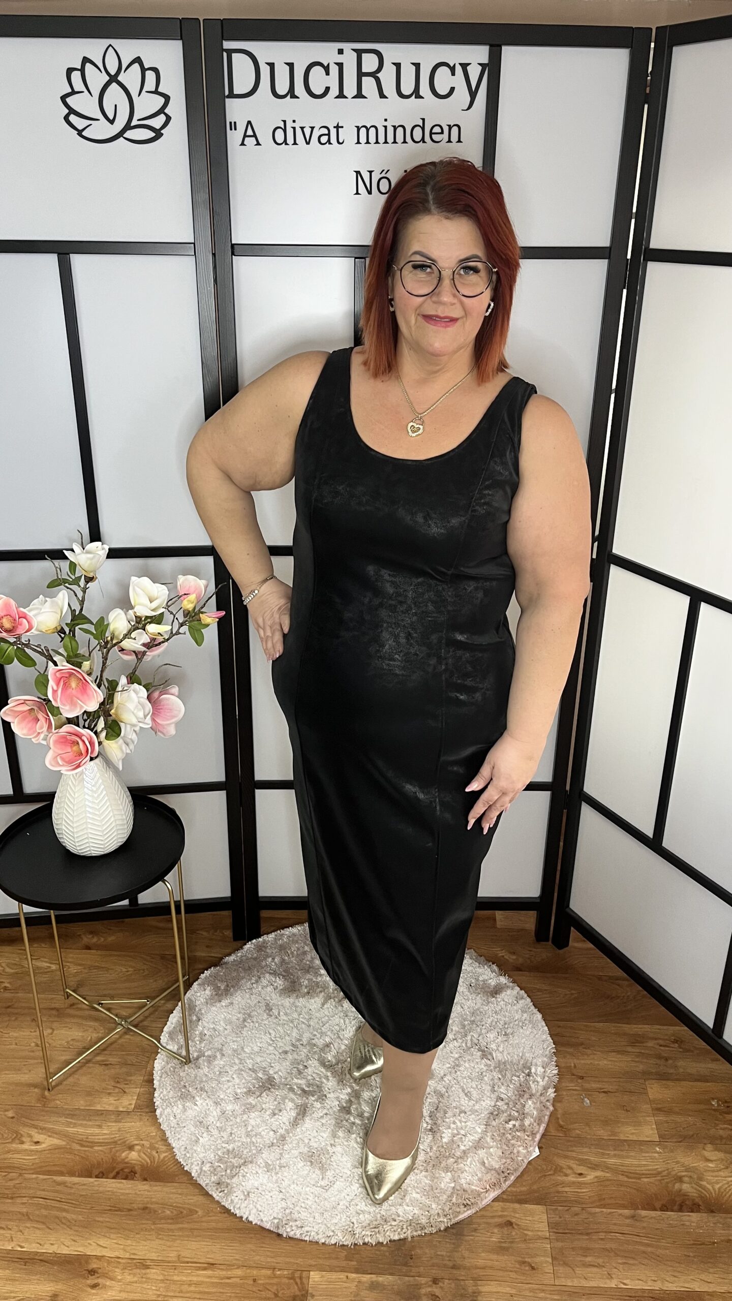 Igazán különleges, bőrhatású anyagból készült, enyhén rugalmas trikóruha. A ruha hátul zipzáros. Igazán mutatós darab, bármilyen alkalomra kiváló választás.