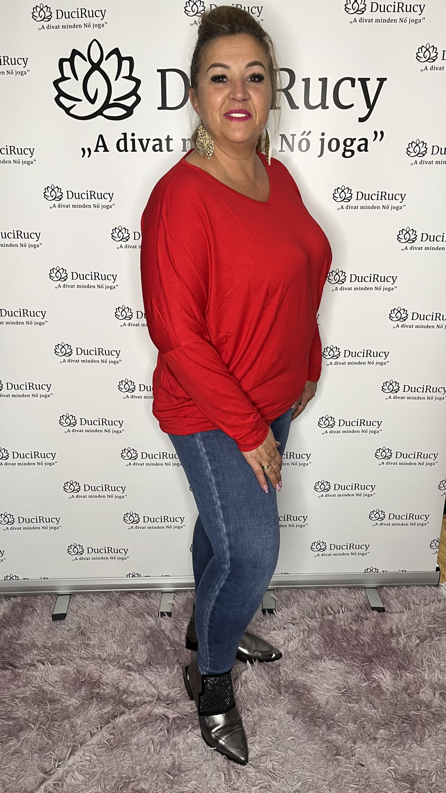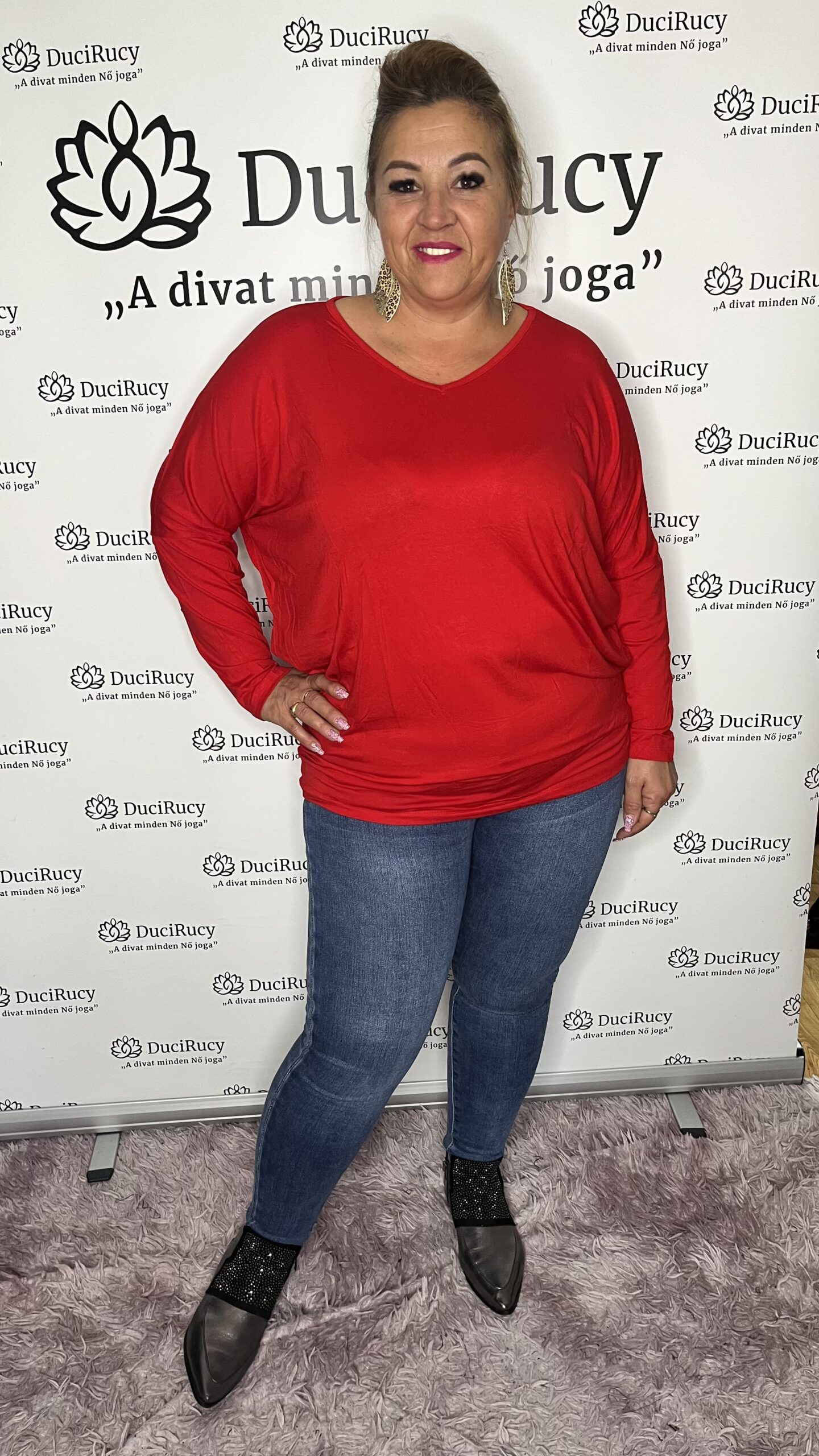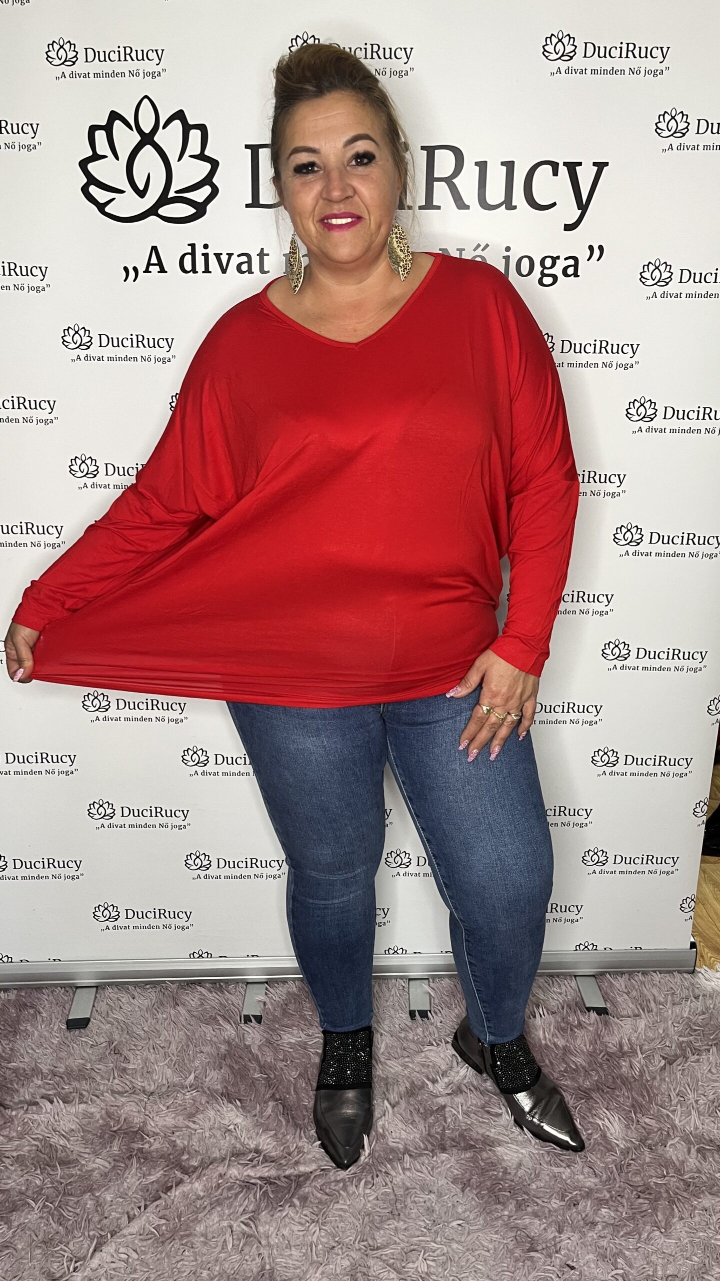 Bubble fazonú (T-ujjú), V nyakú, vékonyabb pamut anyagú felső piros színben