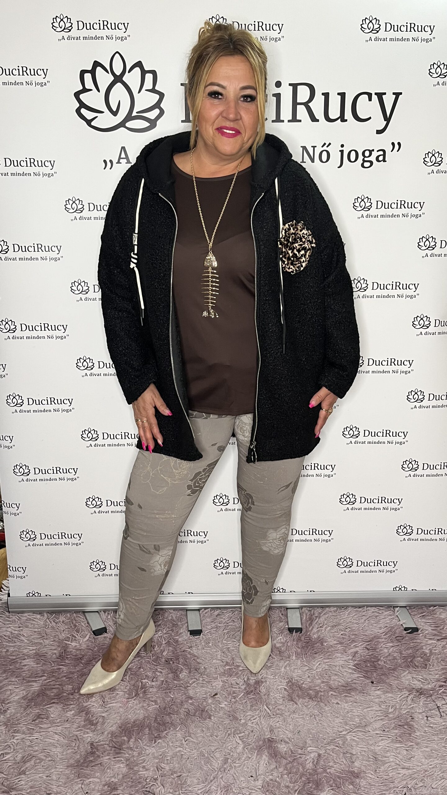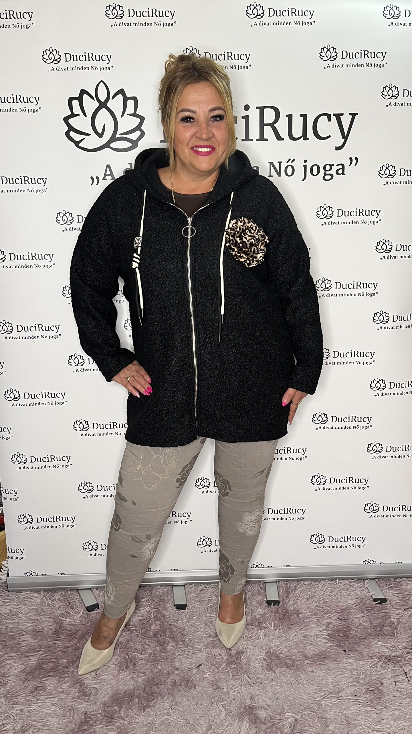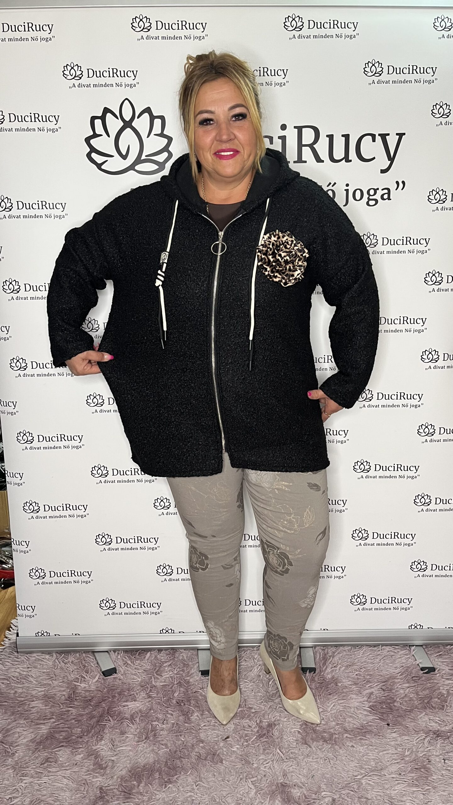 Olasz gyönyörű buklé anyagból készült kardigán/kabátka párduc mintás virág dísszel. Jó meleg, átmeneti időszakra szuper választás.