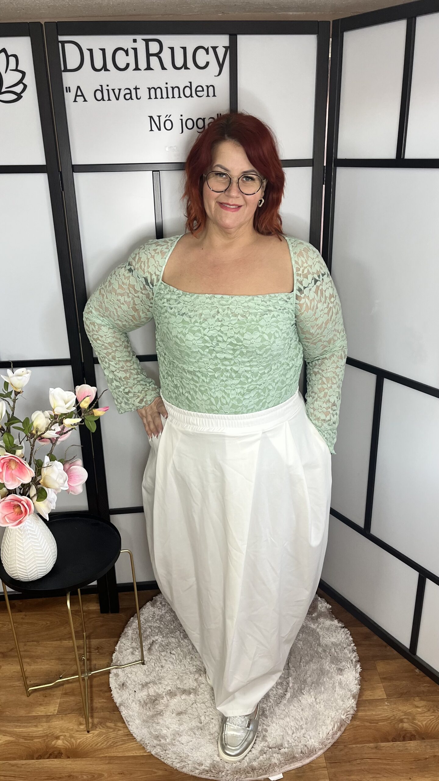 Gyönyörű, kétrétegű csipke body menta színben