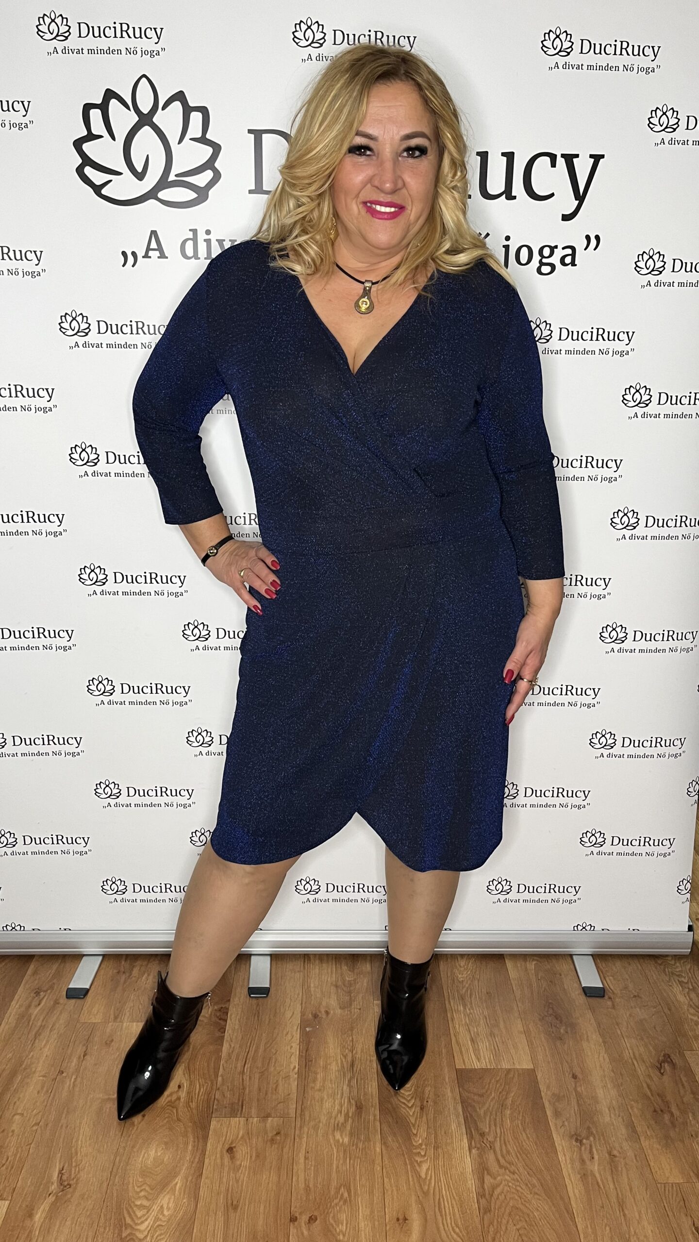 Gyönyörű nagyméretű, extrán rugalmas anyagból készült csillámos lurex átlapolt ruha. Nagyon dögös és csinos viselet bármilyen alkalomról is legyen szó. Mindenhol megállja a helyét. Különleges fazona miatt pedig nagyon jól megosztja az alakot.