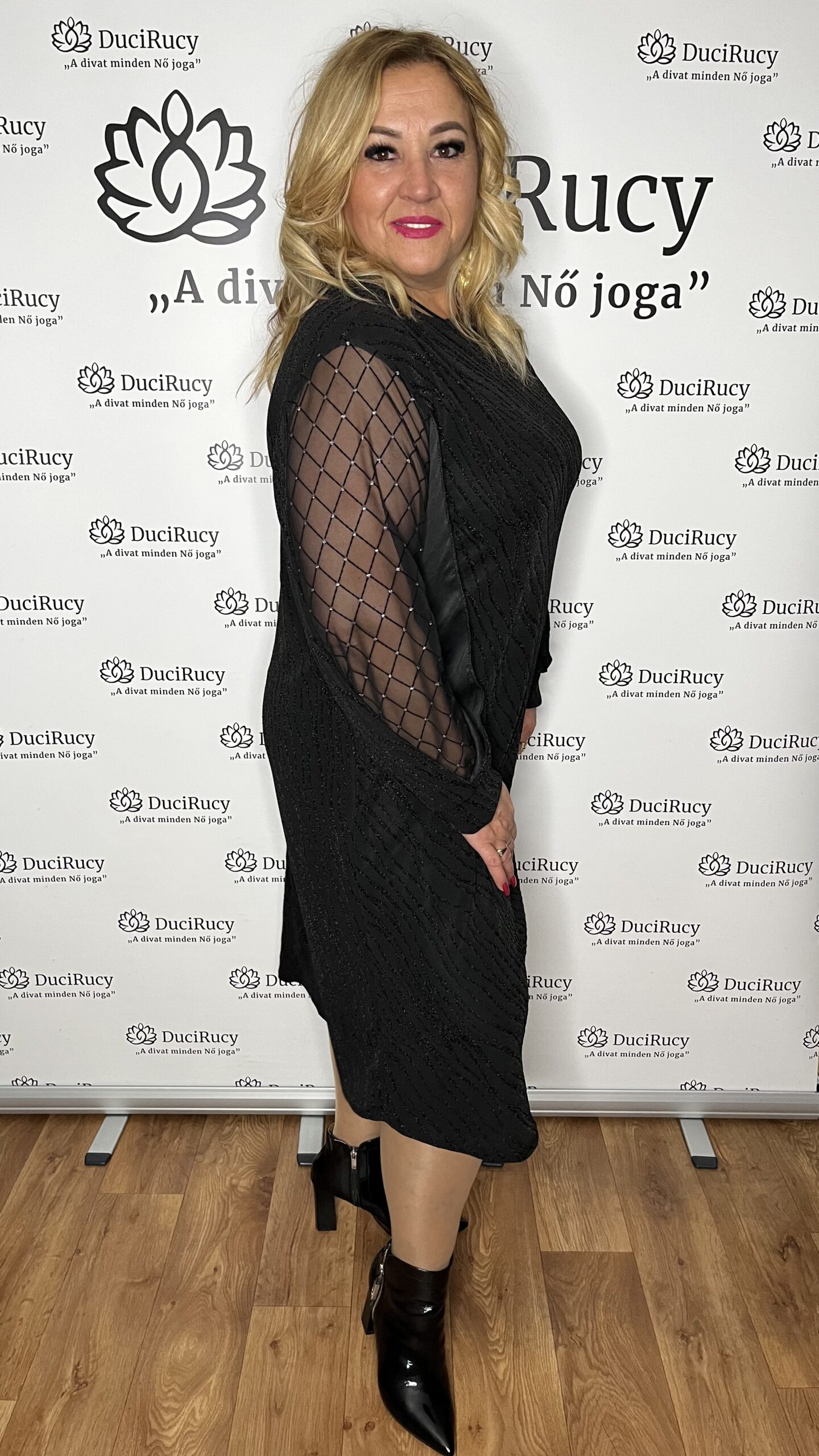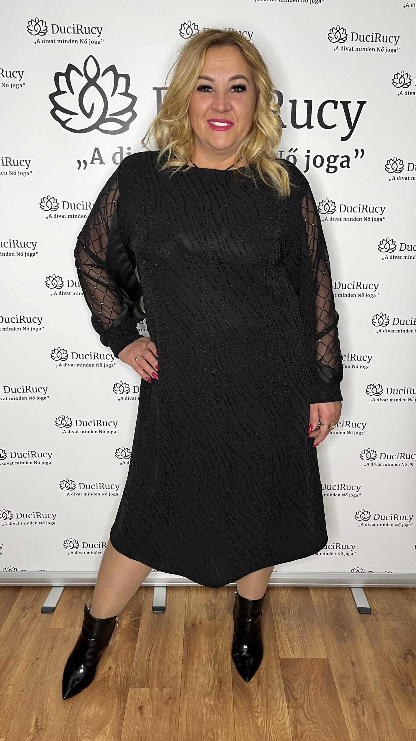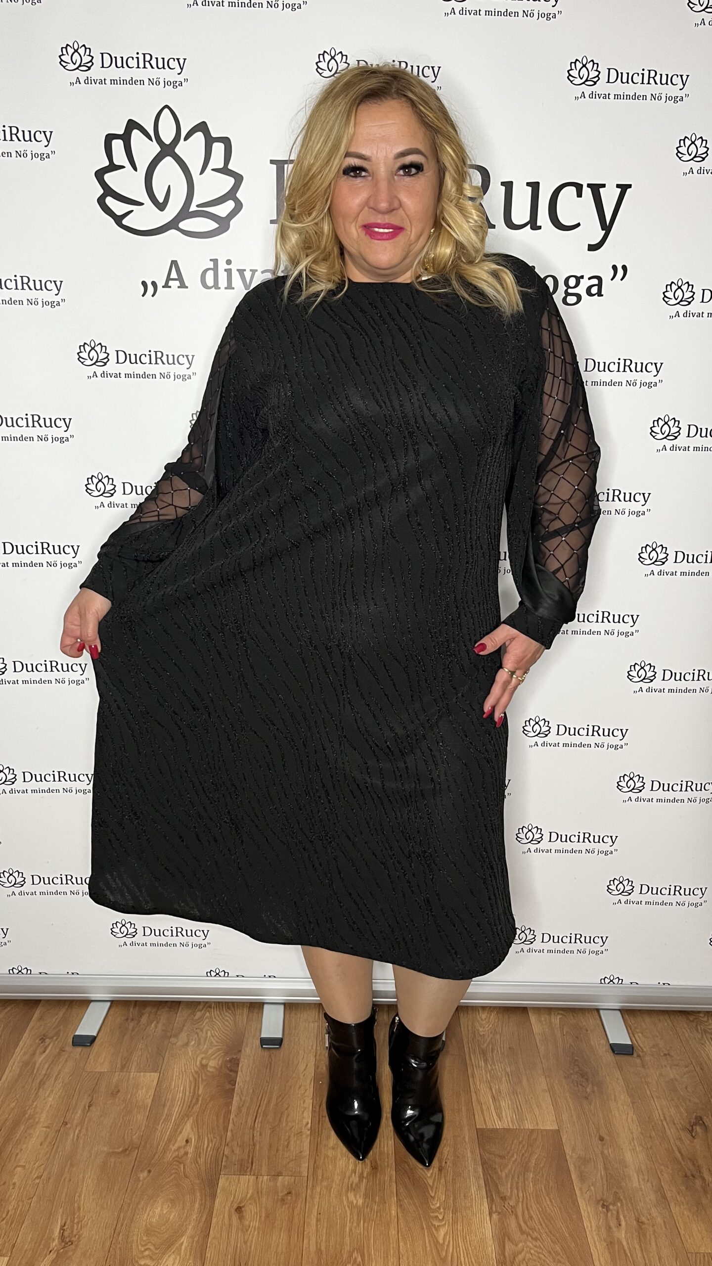 Gyönyörű hullám mintás csillámos nagyméretű rugalmas, térd alá érő lurex ruha tüll betétes újjal kerekített fazonnal. Bármilyen alkalomra megállja a helyét, csodaszép darab.