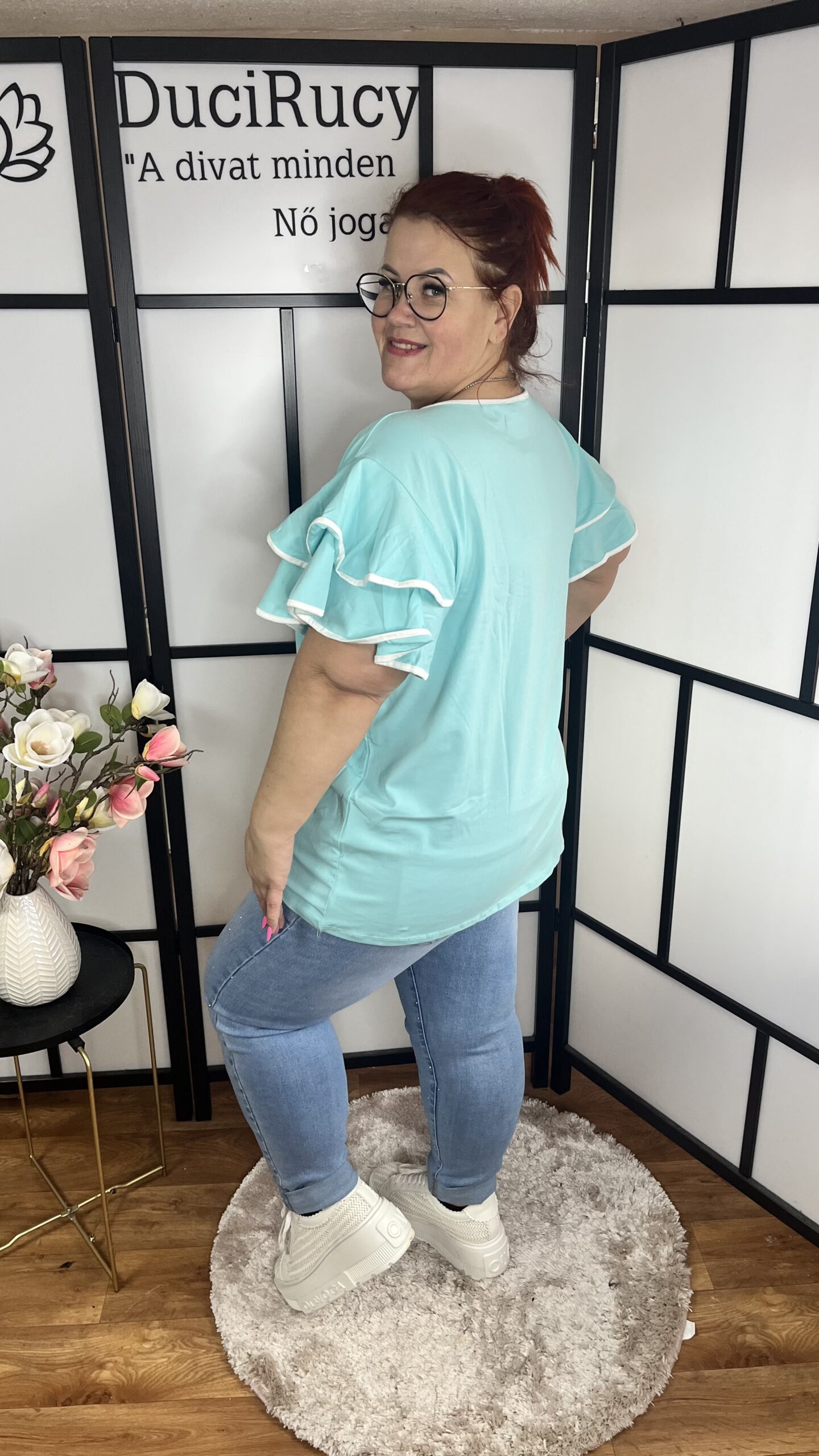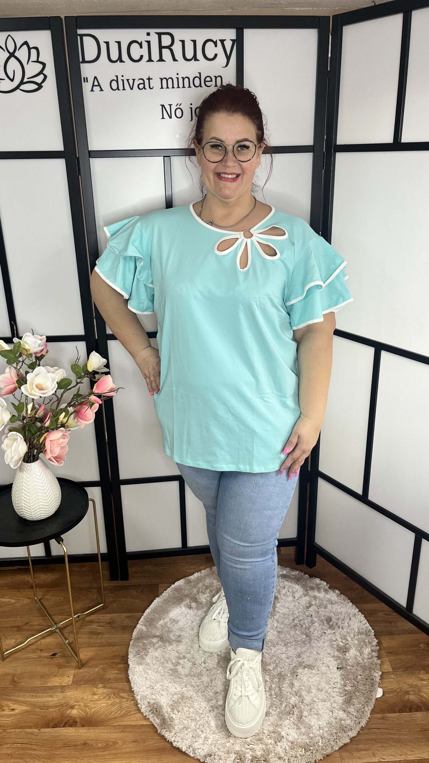 Igazán mutatós, egyenes fazonú, dupla fodros, harang ujjú, különleges virág díszítésű pamut anyagú felső. A felső anyaga rugalmas. Ez a felső egy álom. Különleges, letisztult, egyedi és sikkes. Bármilyen alkalomra kiváló választás.