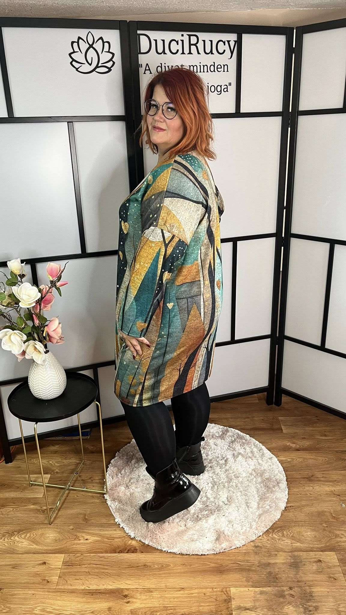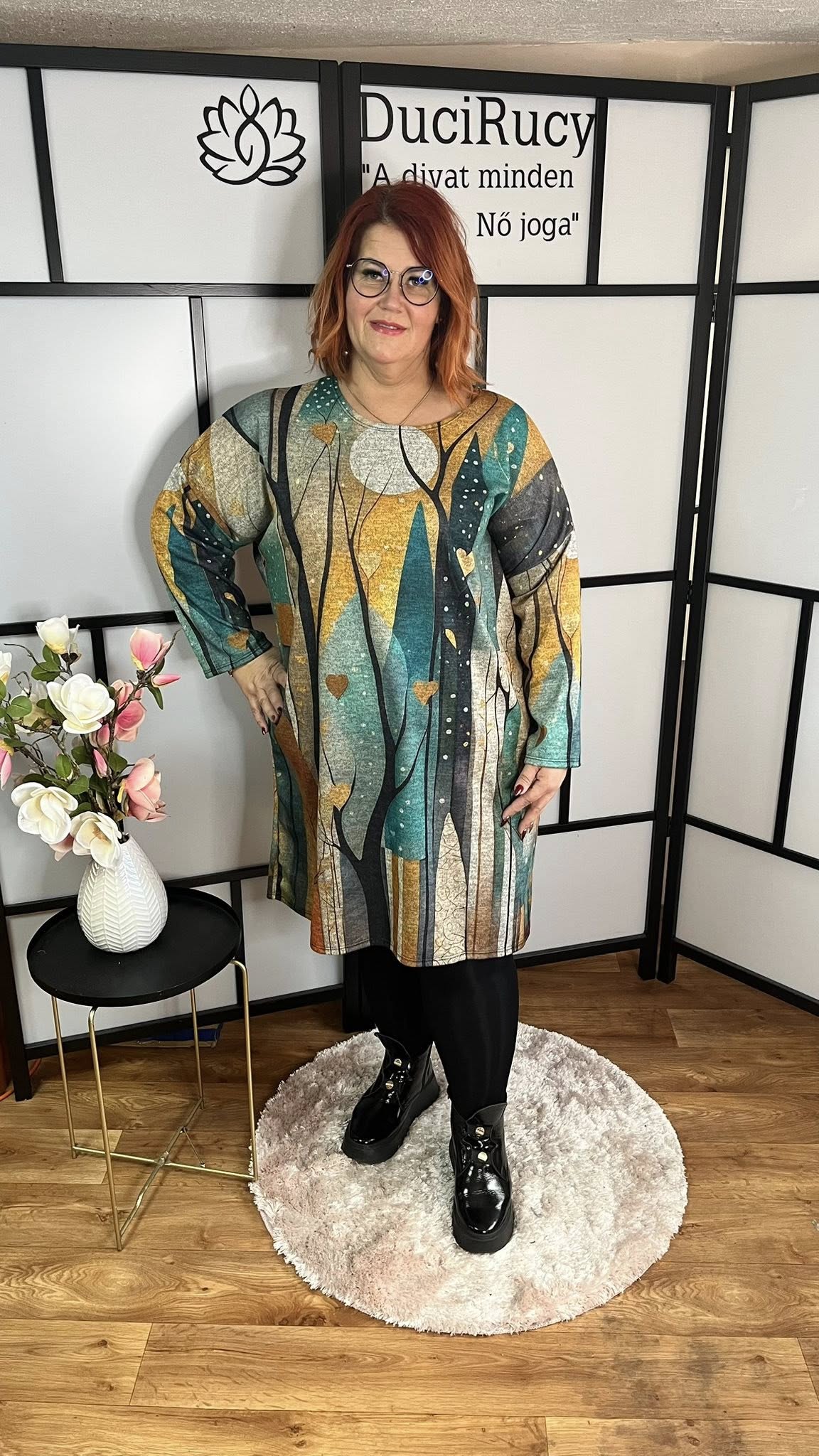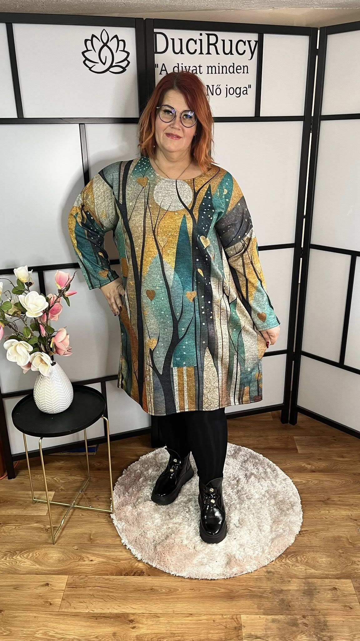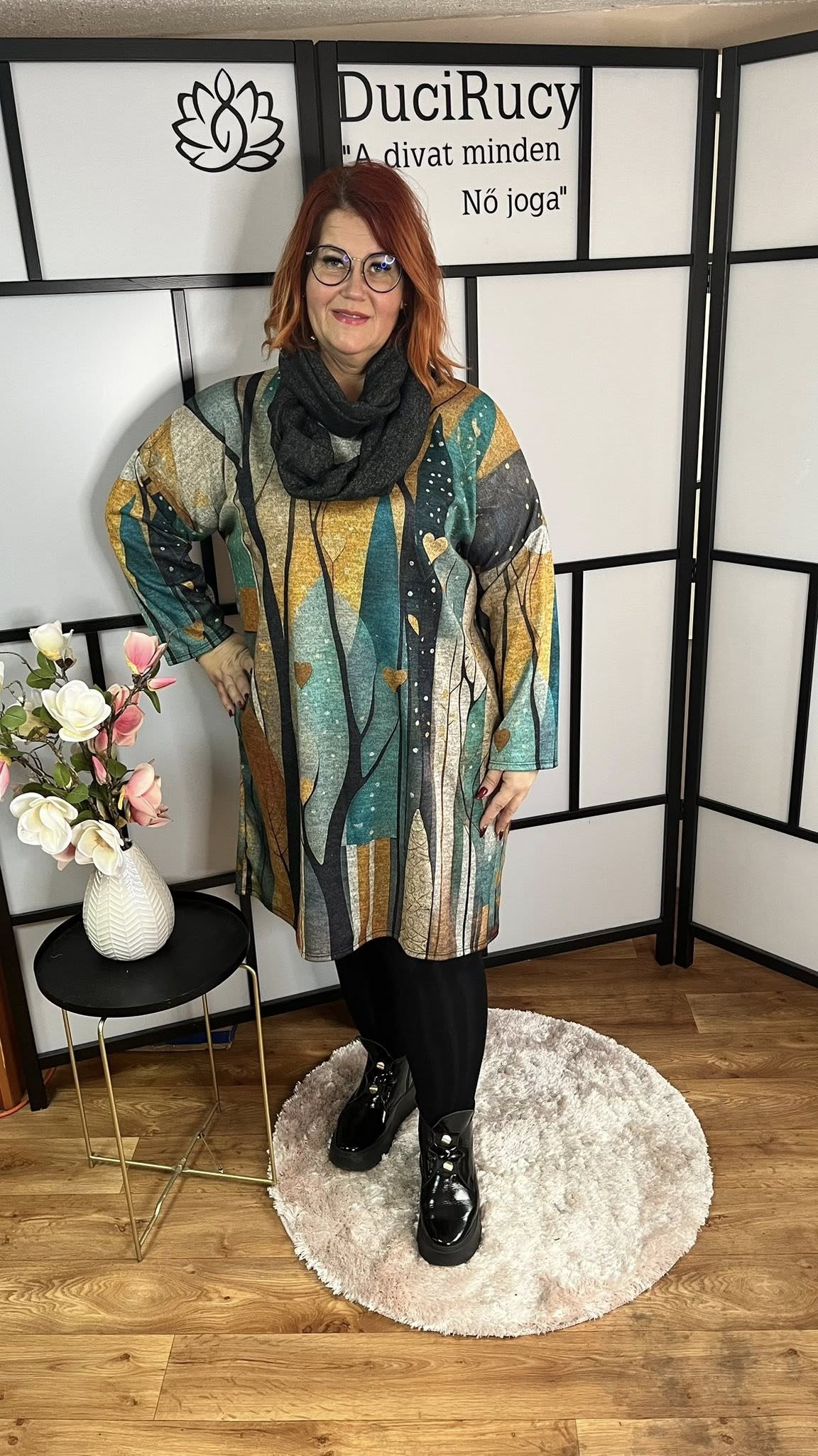 Egyenes fazonú, őszi/téli anyagból készült mintás ruha/tunika ajándék sállal. Nagyon mutatós és bohókás darab. A ruha/tunika anyaga rugalmas.