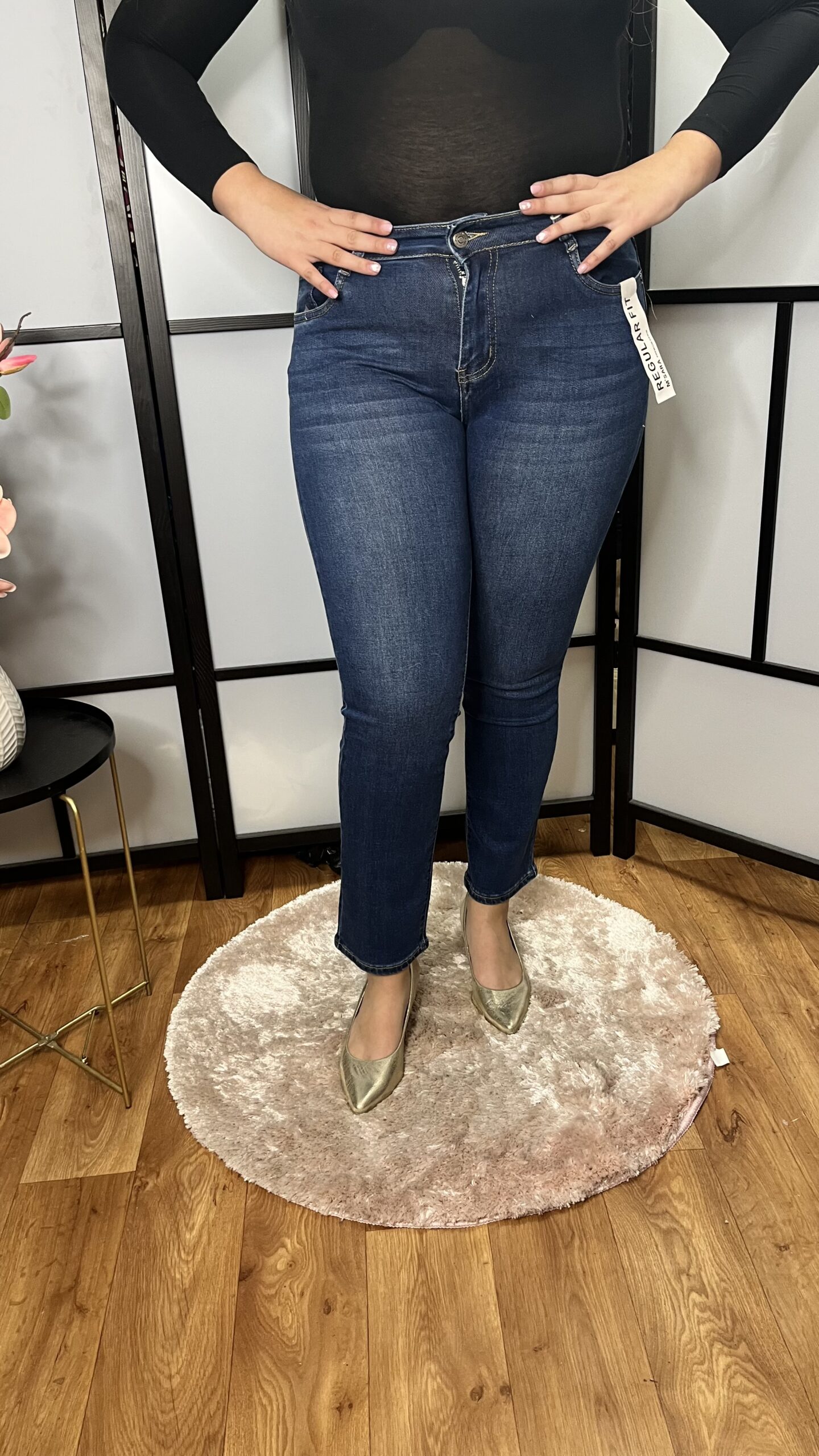 Egyenes fazonú, REGULAR FIT normál magas derekú sötétkék farmernadrág EXTRA méretig elérhető. Puha, rugalmas anyaga biztosítja az egész napos kényelmet.