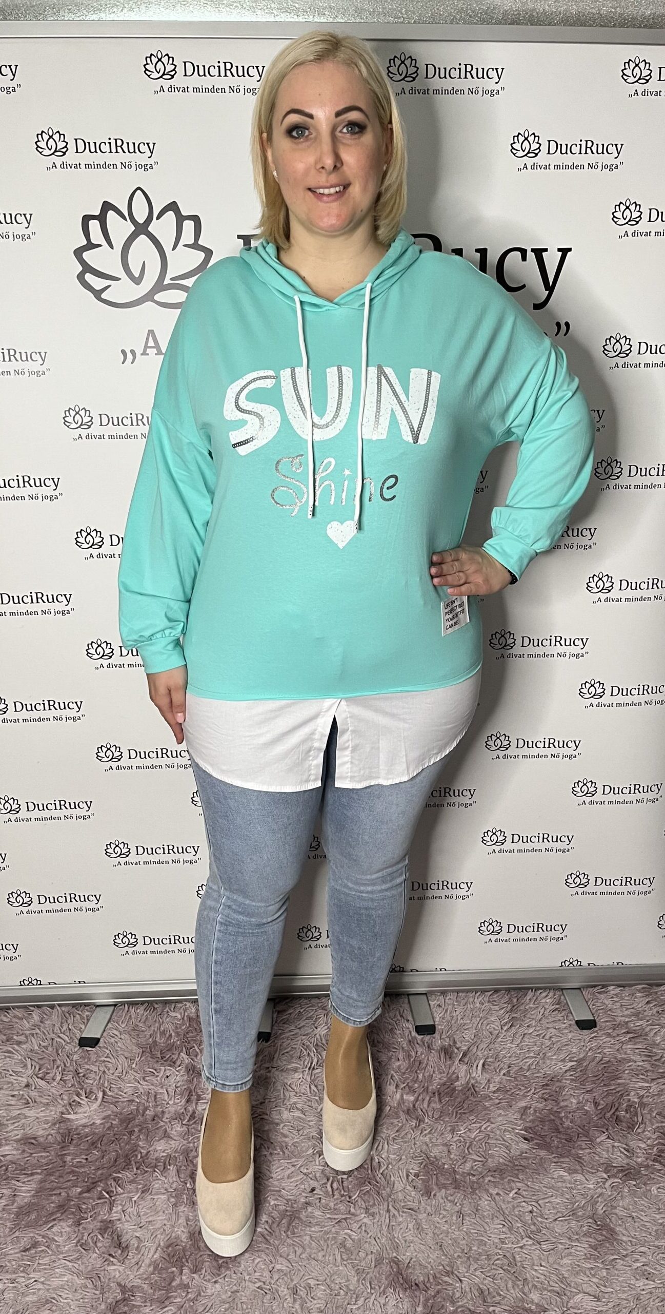Szuper divatos kapucnis pulóver, melynek a hátulja, illetve az elején az alja ing fazonú. A pulóver elöl pár centiméterrel rövidebb fazonú, mint hátul.