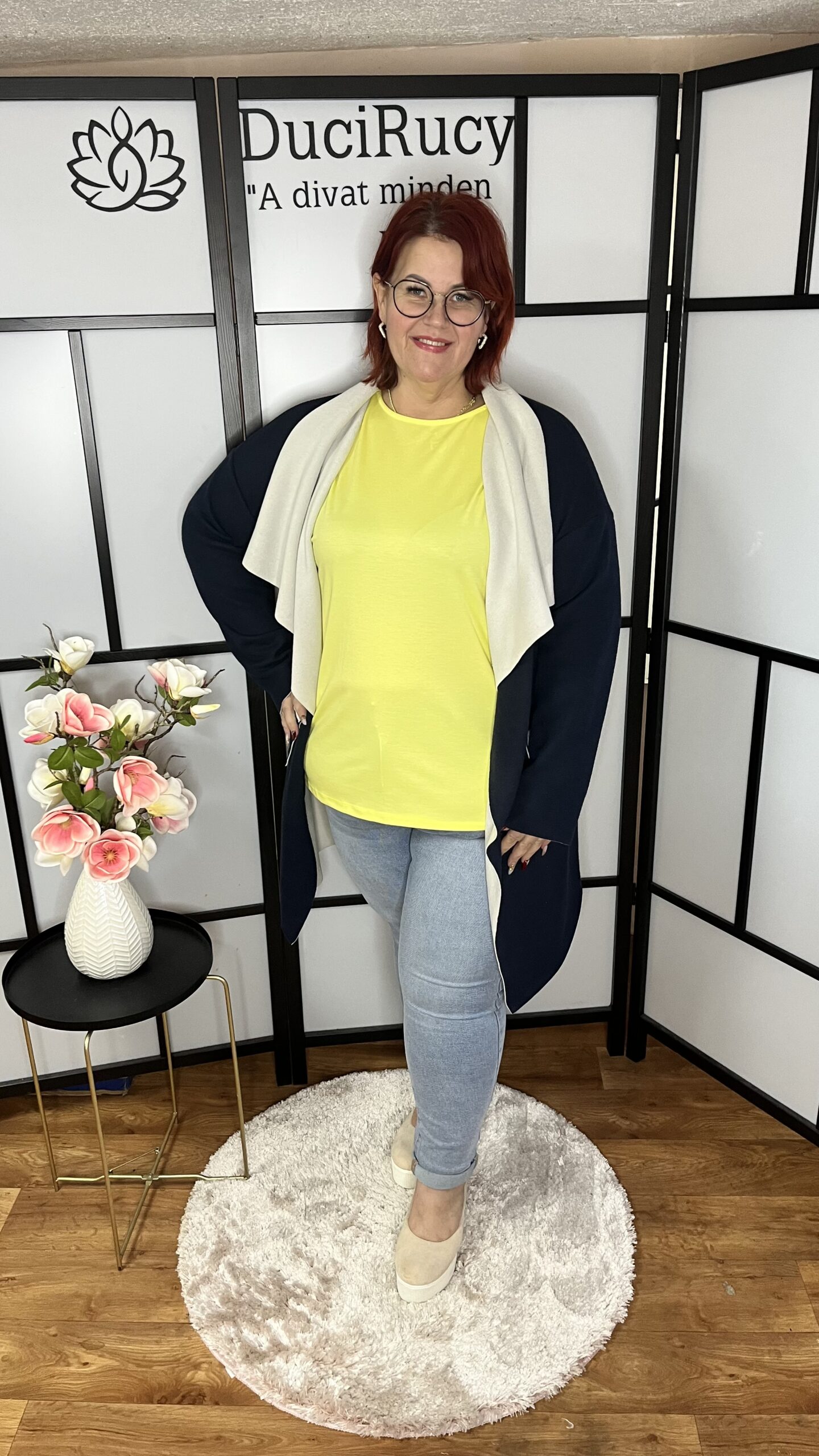 Különleges fazonú, csodás kétszínű, gomb nélküli kardigán, elöl 2 zsebbel. Igazi trendi, divatos darab.