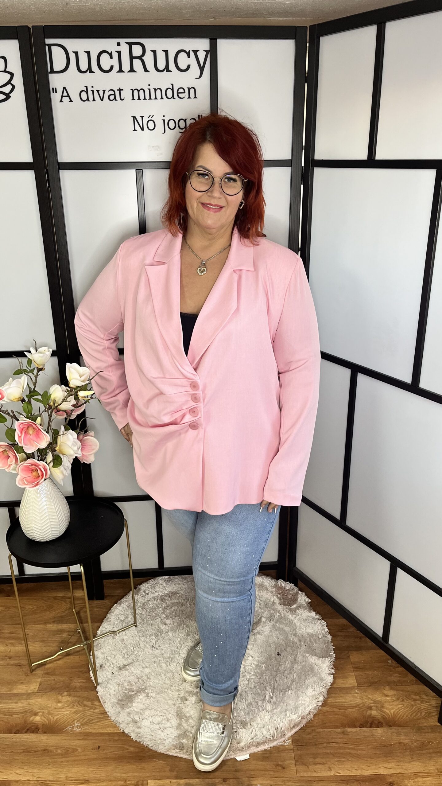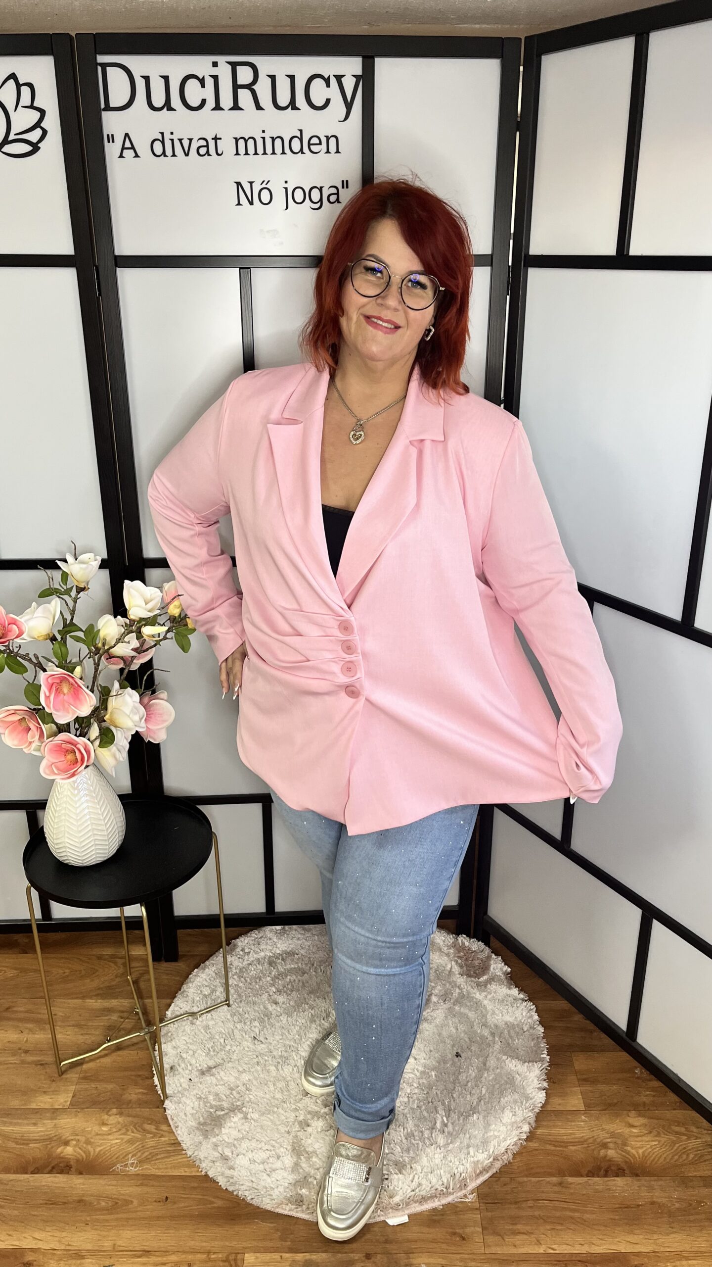 Fantasztikus olasz egyedi pocaknál ráncolt gombos szövet blézer púder színben mennyiség