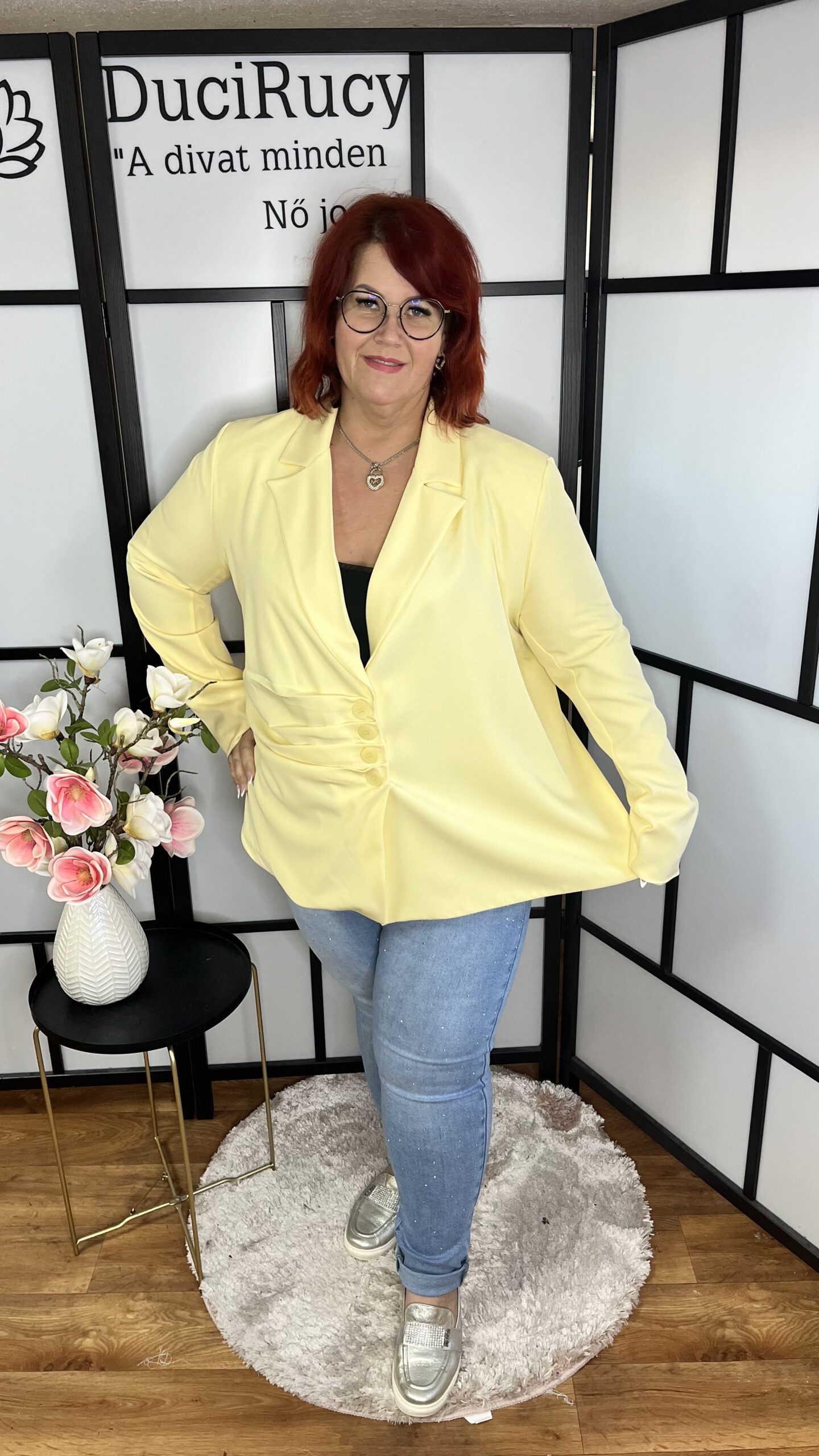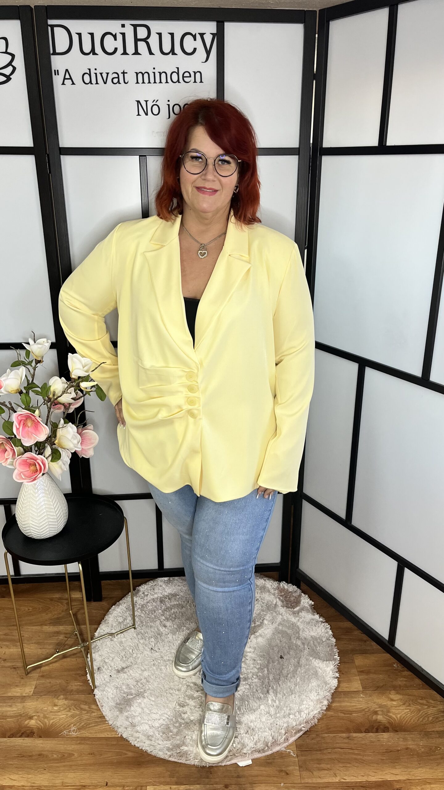 Szuper, divatos és trendi. Olasz szöveg anyagú, selyem bélésű, pocaknál különleges ráncolással készült, gombos blézer. A blézer anyaga nem rugalmas. Bármilyen alkalomra kiváló választás.