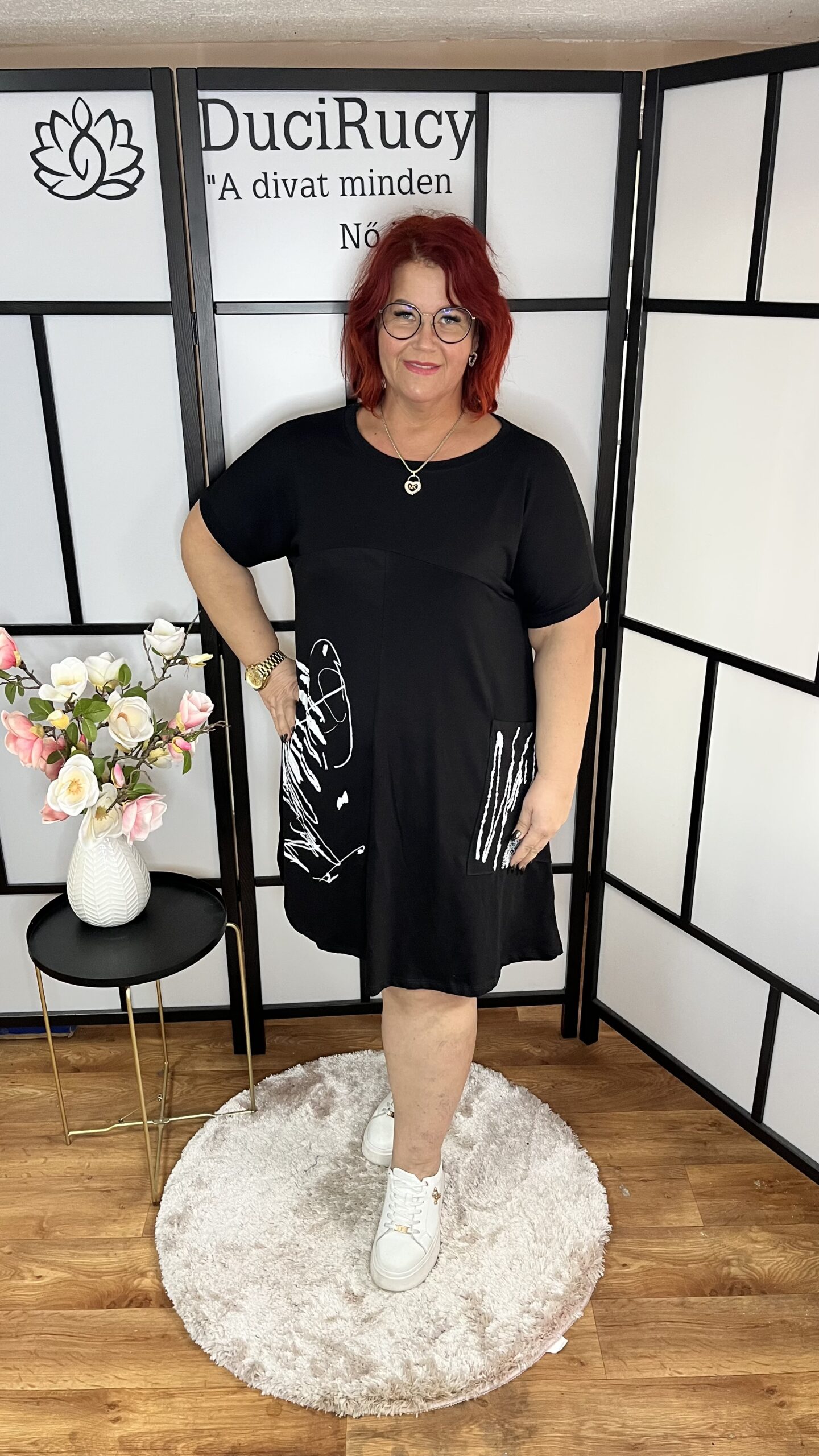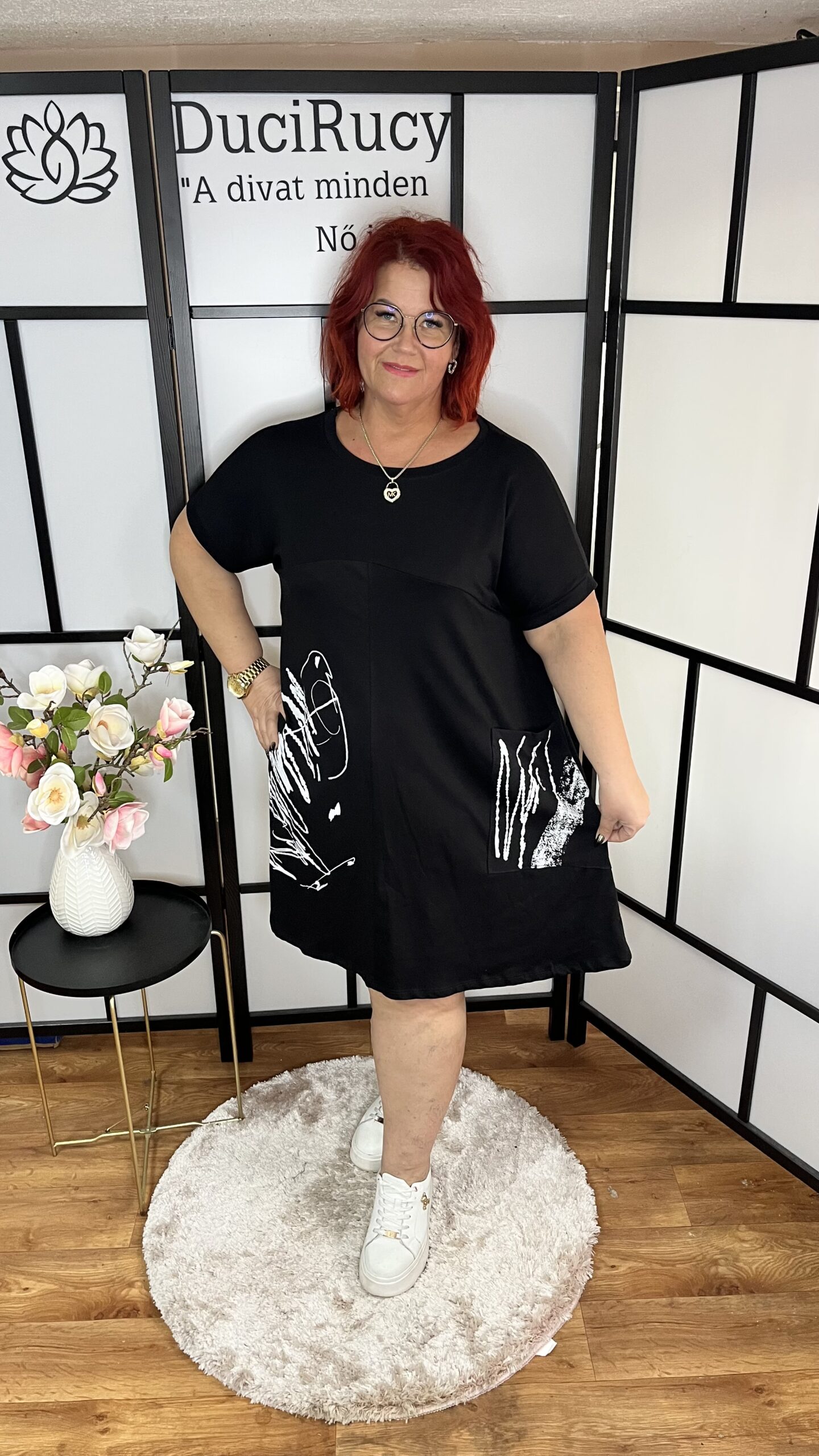 Fantasztikus pamut anyagból készült lefelé bővülő ruha elől zsebbel, mintával. Nem tömegcikk, olasz tervezés és anyaghasználat. Nagyon előnyös minden testalkatra.