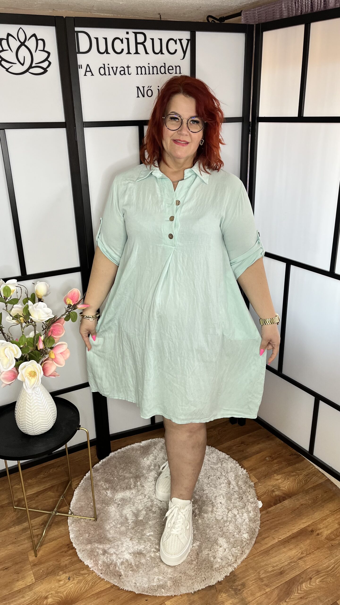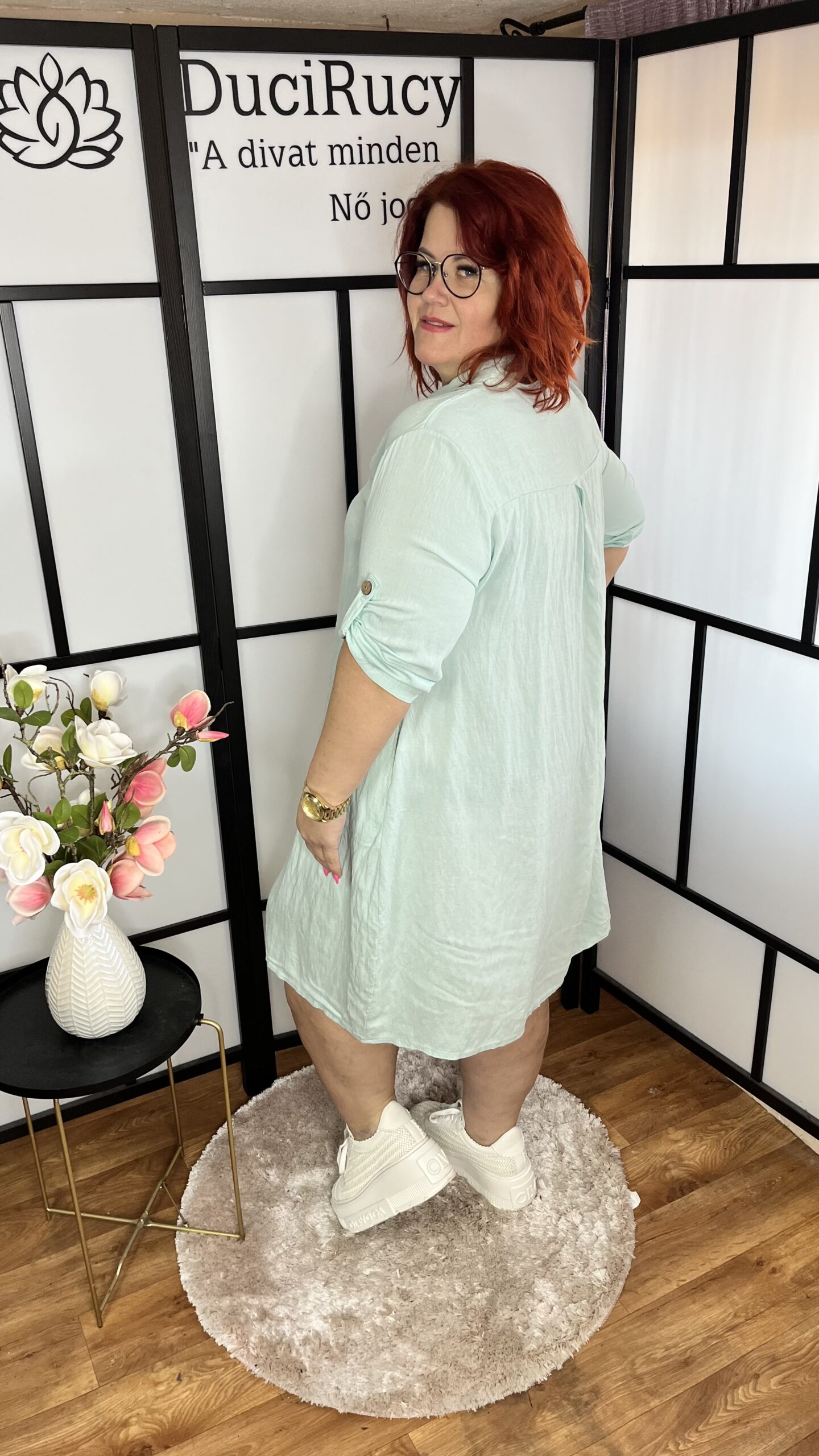 Felgombolható ujjú inggalléros elől 3 gombos zsebes hagymaruha menta színben