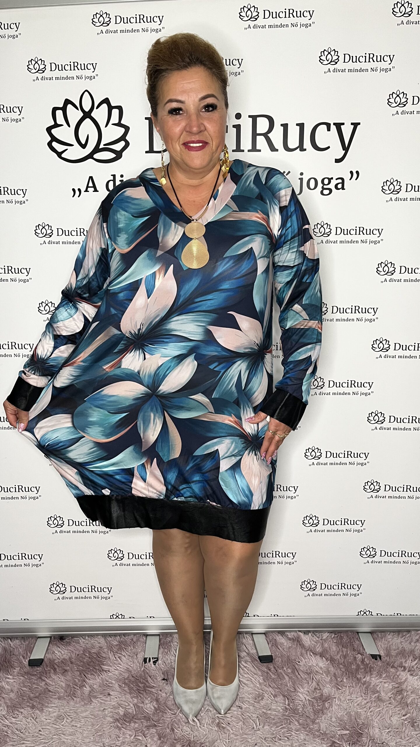 Francia, pihe-puha anyagból készült, V nyakú, alul és az ujján bőrrel kombinált, egyenes fazonú ruha. Egy vastag harisnyával nagyon mutatós darab ilyenkor ősszel-télen. Anyaga rugalmas pihe-puha pamutos anyag.