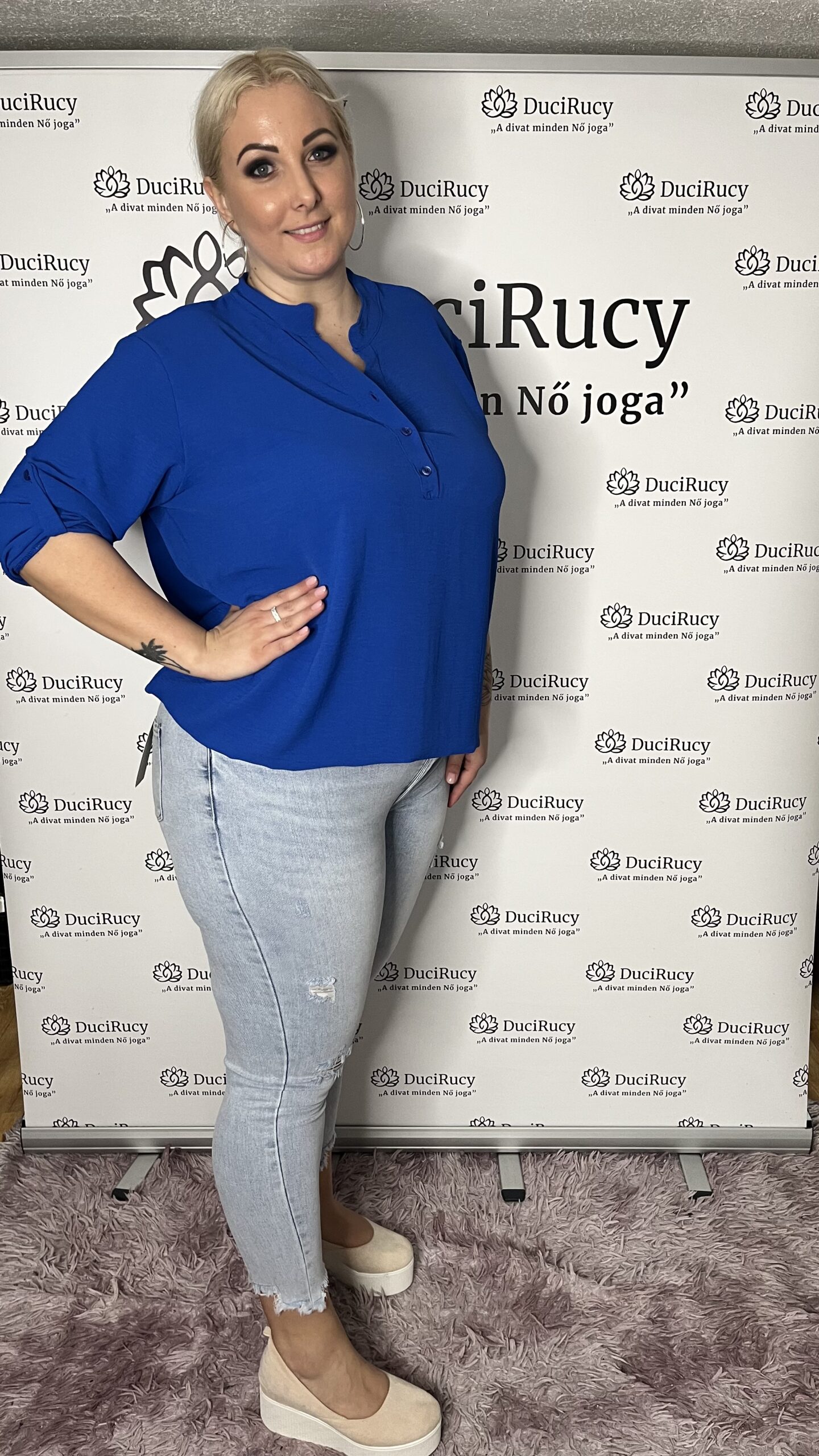 Olasz lenge anyagból készült, felgombolható ujjú, gumis aljú, gombos nyakú blúz. Bármilyen alkalomra felvehető szépség. A blúz anyaga nem rugalmas.