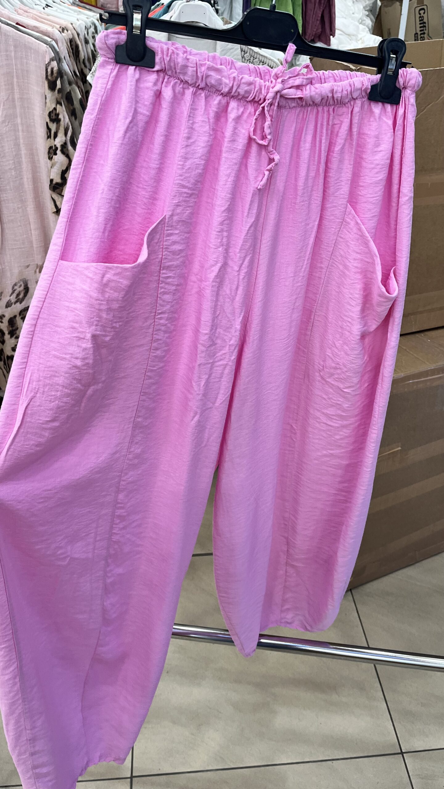 Gumis derekú, ballon fazonú, lenge tavaszi-nyári viszkóz nadrág fehér színben