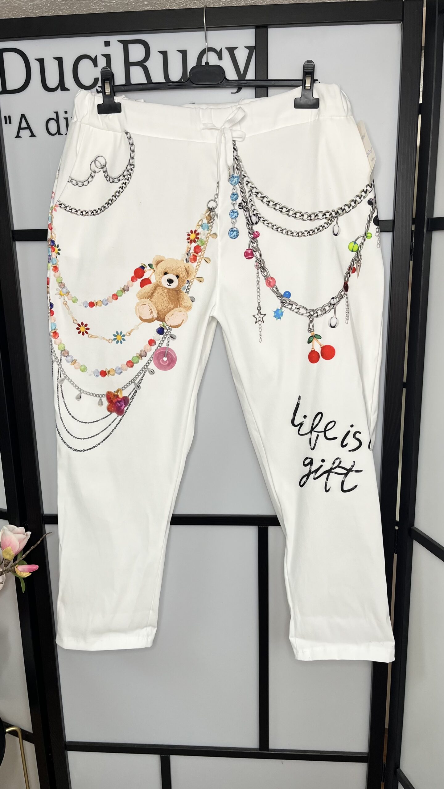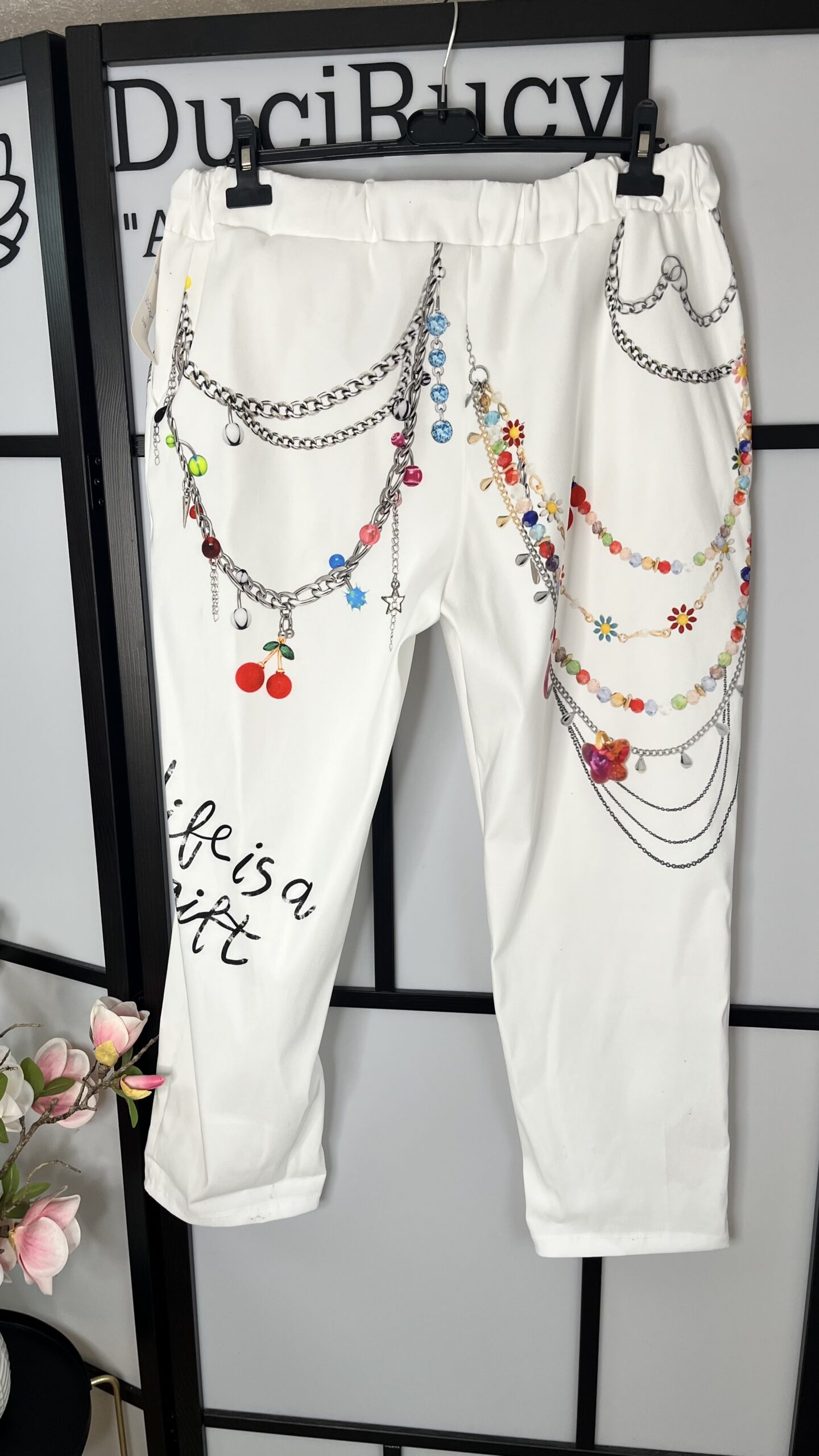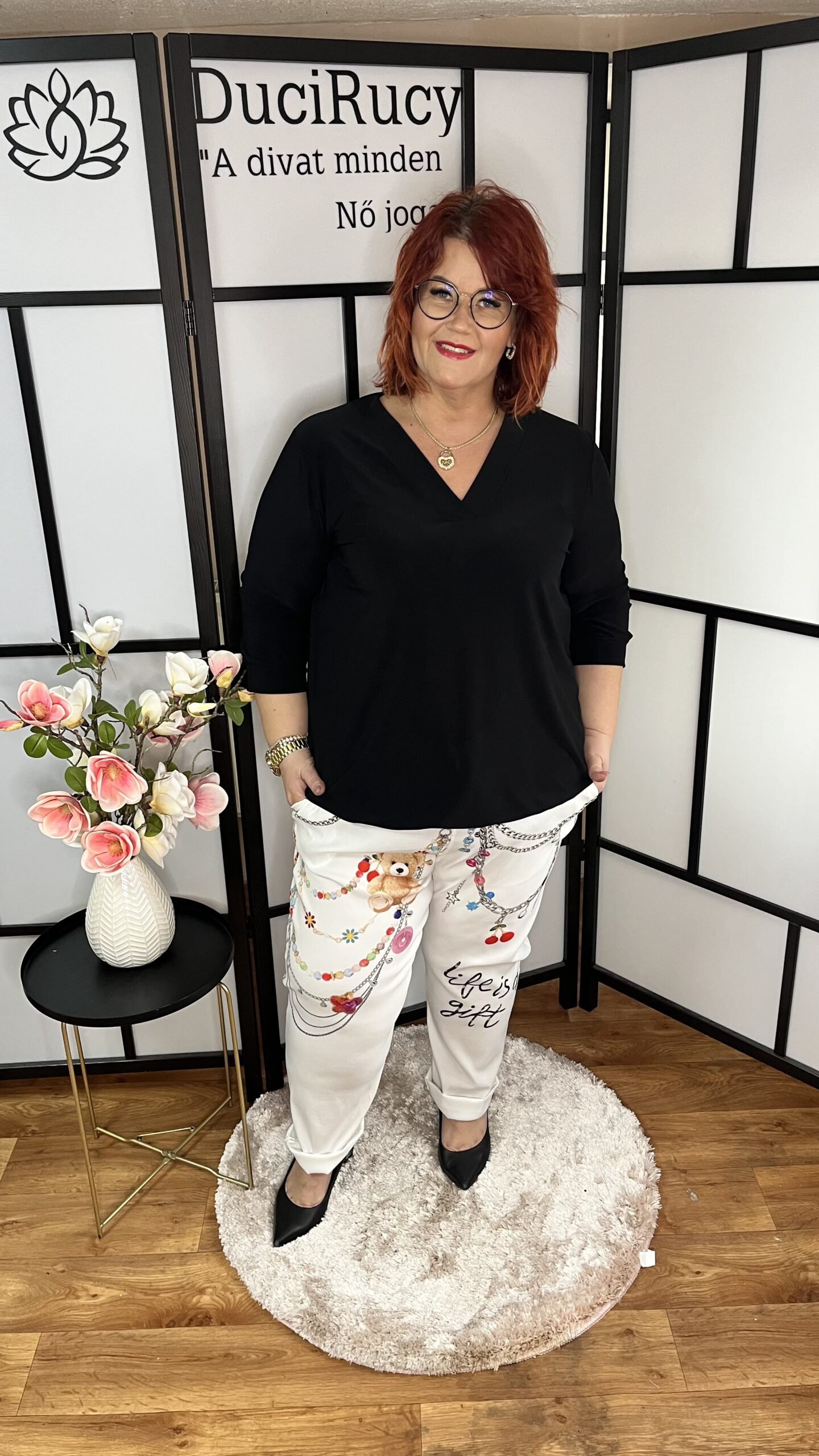 Nagyon divatos, gumis derekú, mintás vászon nadrág. Igazán mutatós darab, magas derékrésszel. A nadrág anyaga rugalmas.