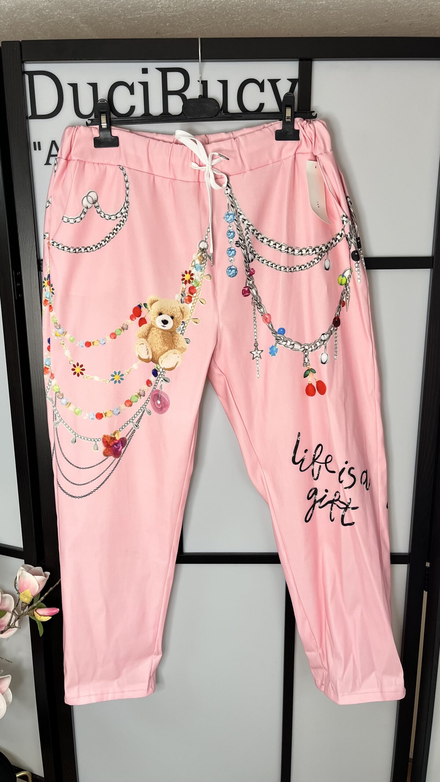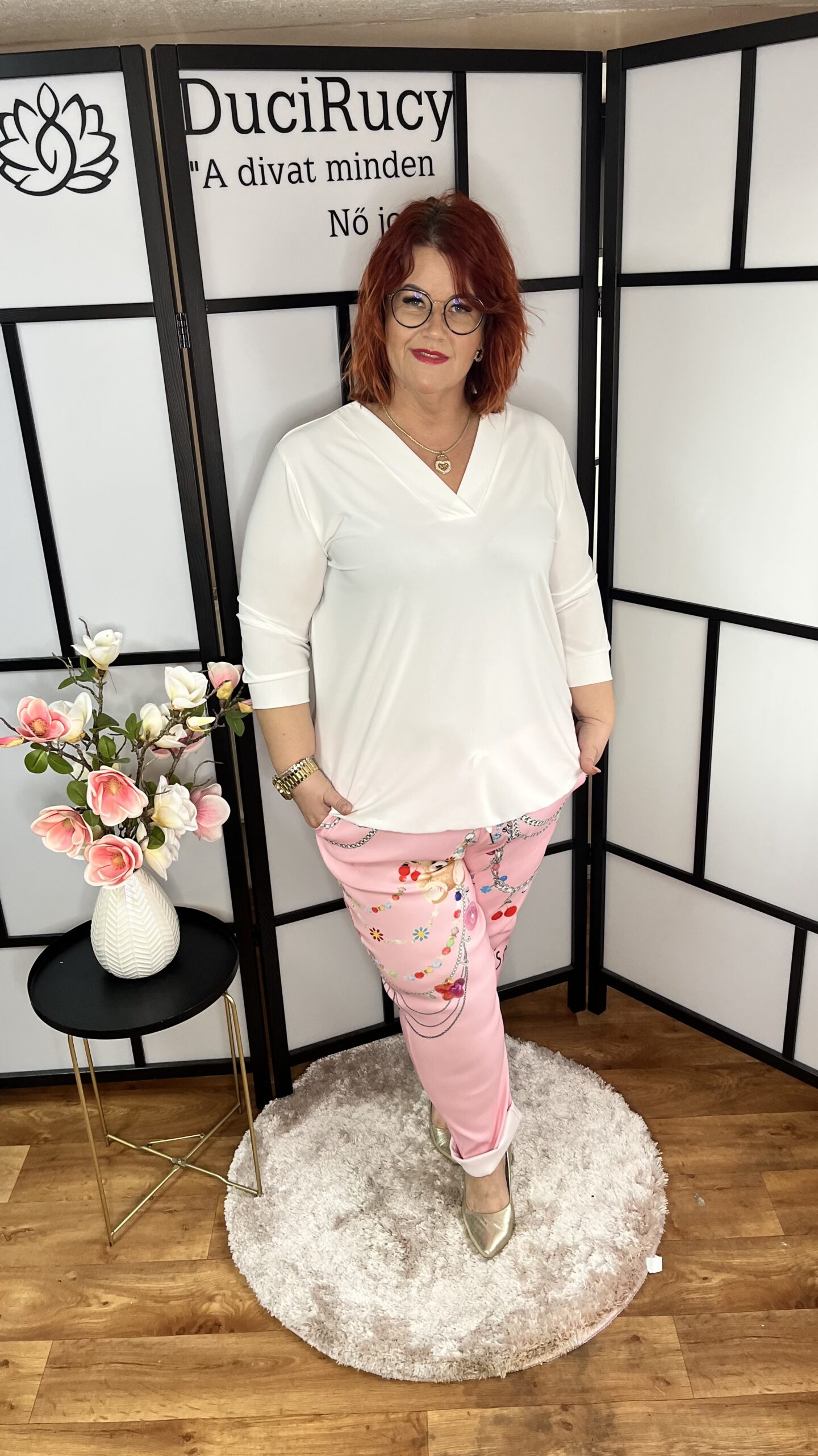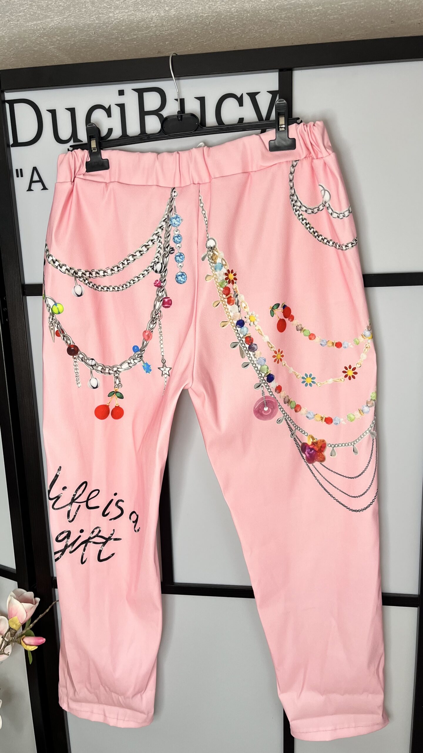 Nagyon divatos, gumis derekú, mintás vászon nadrág. Igazán mutatós darab, magas derékrésszel. A nadrág anyaga rugalmas.