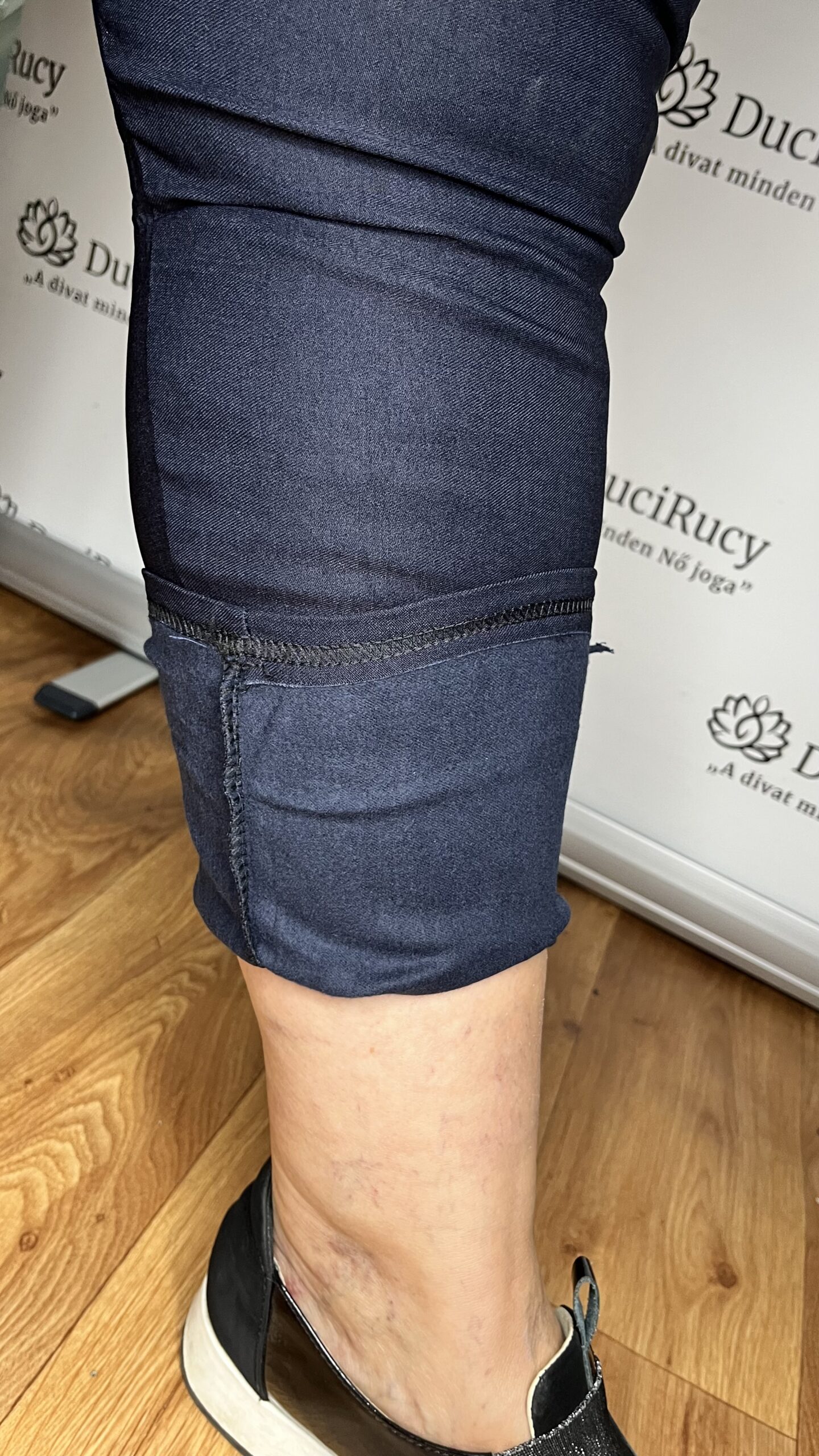 Gumis derekú, termo bélésű vászon nadrág sötétkék színben
