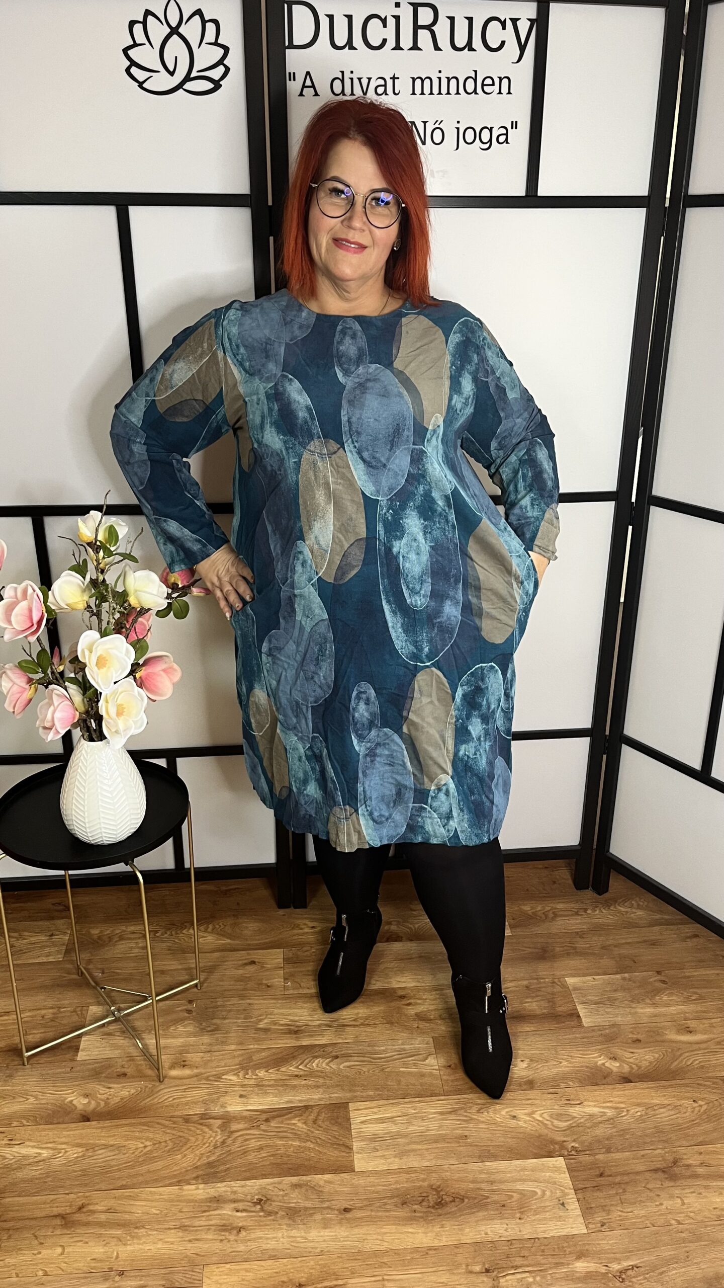 Gyönyörű és különleges ovális alakzattal díszített bársony ruha, melyen két oldalt zseb található. Szuper fazon, nagyon kényelmes viselet. Akár bakanccsal, akár egy bokacsizmával is szuper divatos.