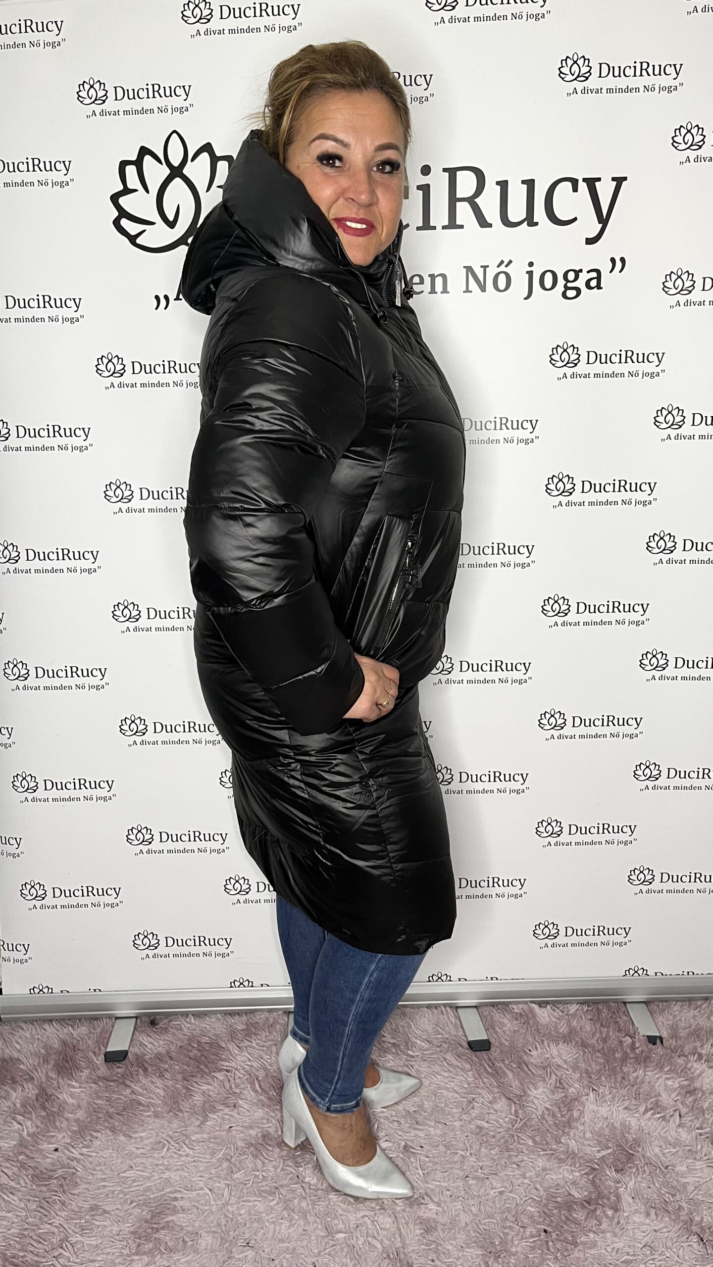 Csodaszép hosszított fazonú, karcsúsított téli kabát gyönyörű fényes anyagból. Mindazoknak ajánljuk a hossz télikabátot, akik tömegközlekedéssel utaznak, sokat kirándulnak, hisz nagyon hasznos nagy hidegben a hosszított fazon.