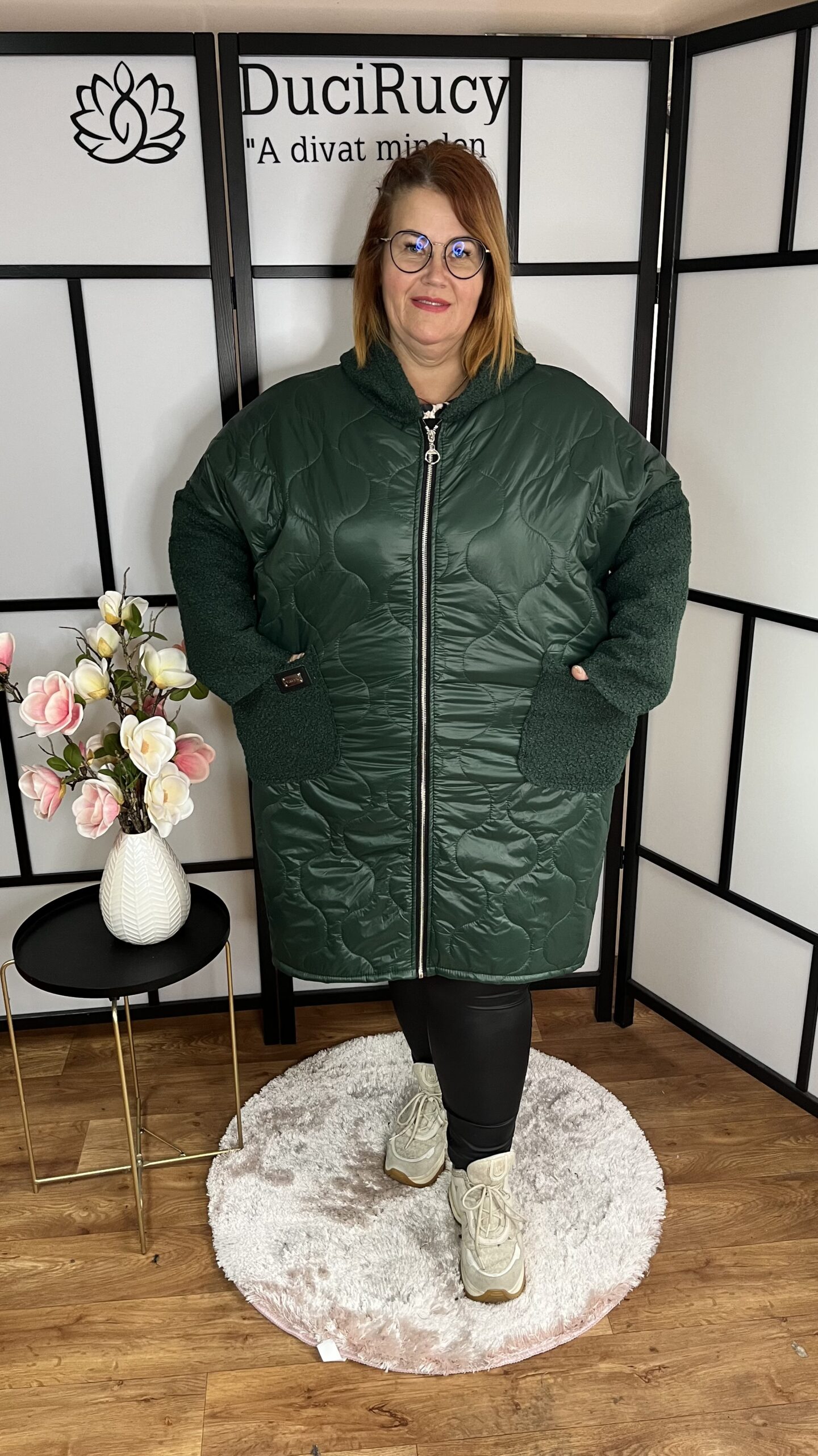 Gyönyörű és különleges hosszított fazonú steppelt nagyméretű dzseki buklé anyaggal kombinálva. Nagyon mutatós és kényelmes darab.