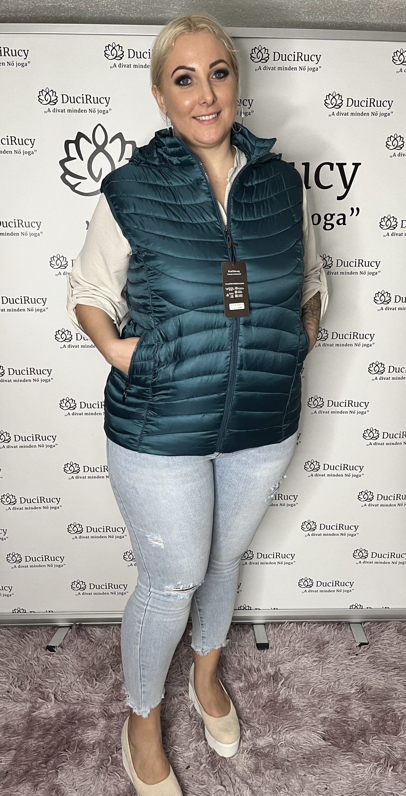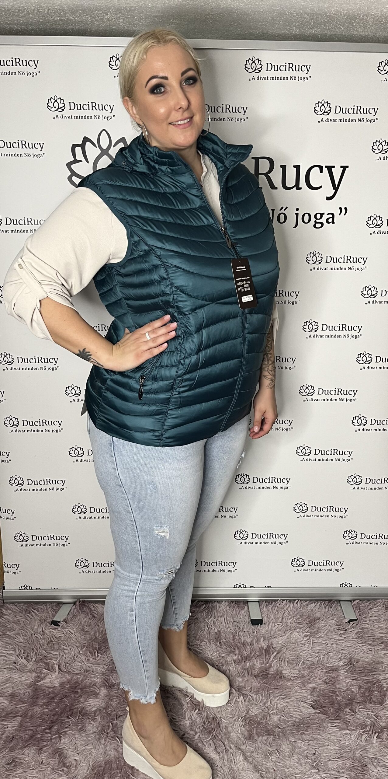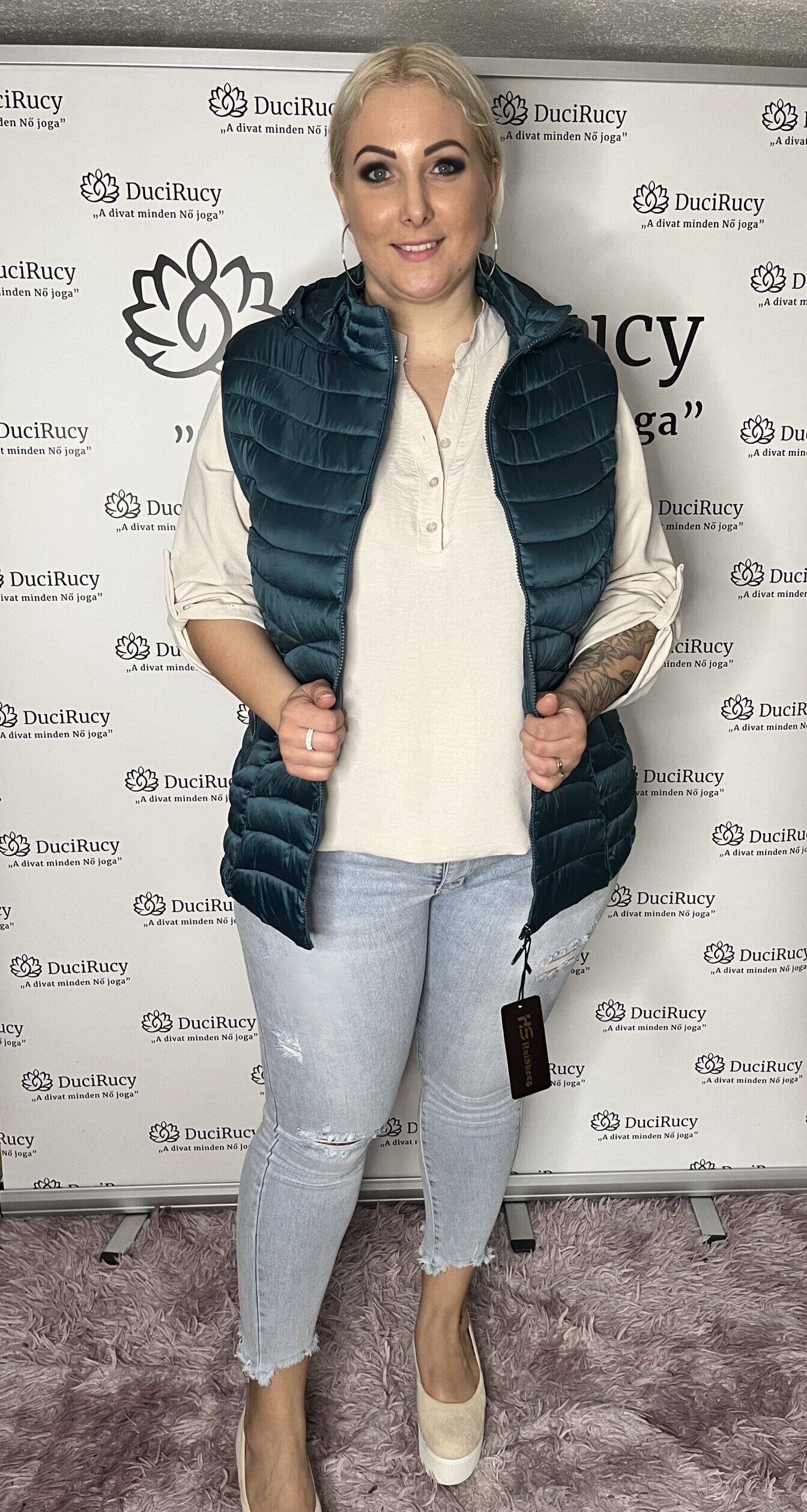 Karcsúsított levehető kapucnis mellény gyönyörű türkiz színben. Közepesen vastag steppelt mellény, ami tökéletes választás a mindennapokra.