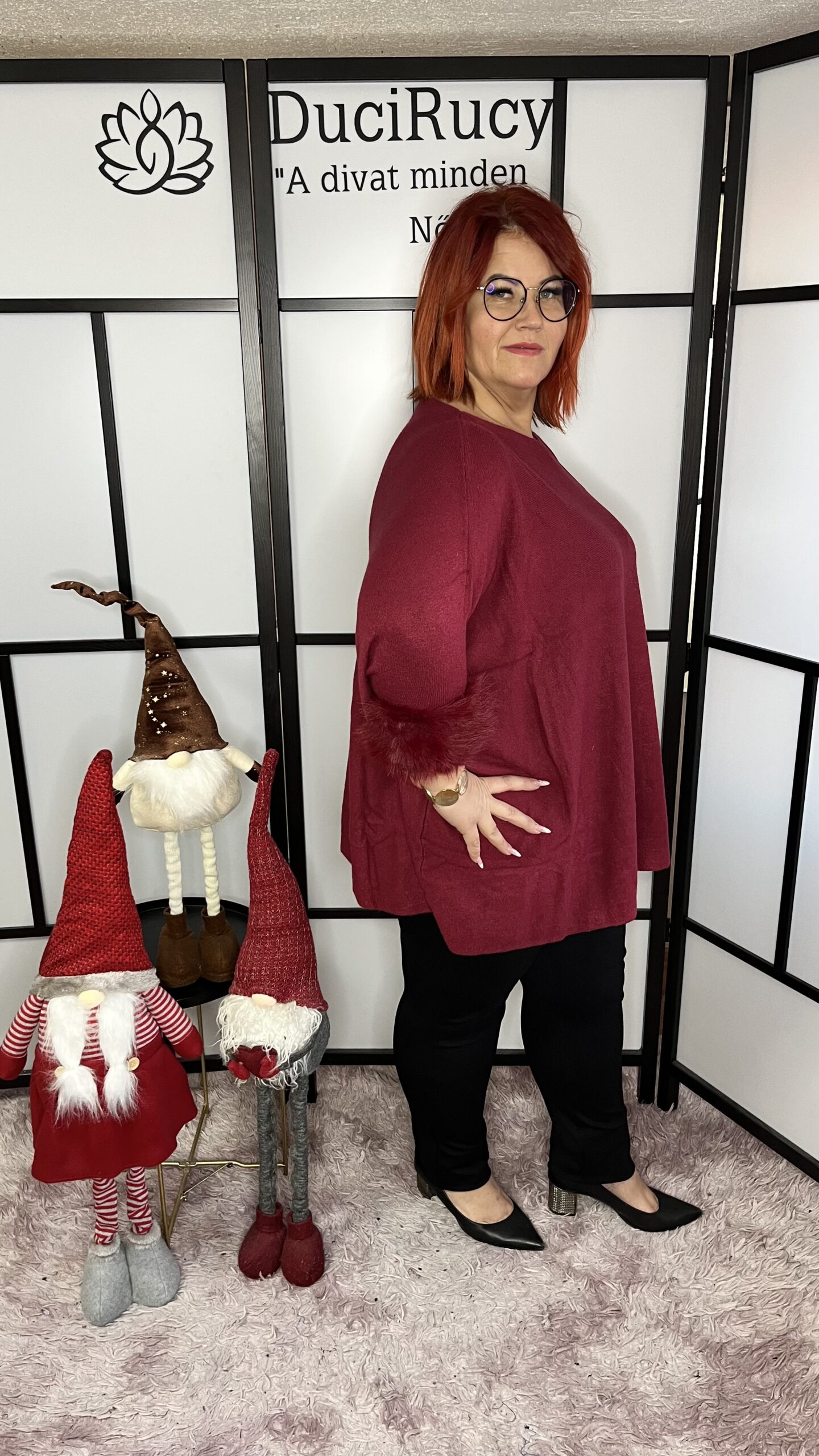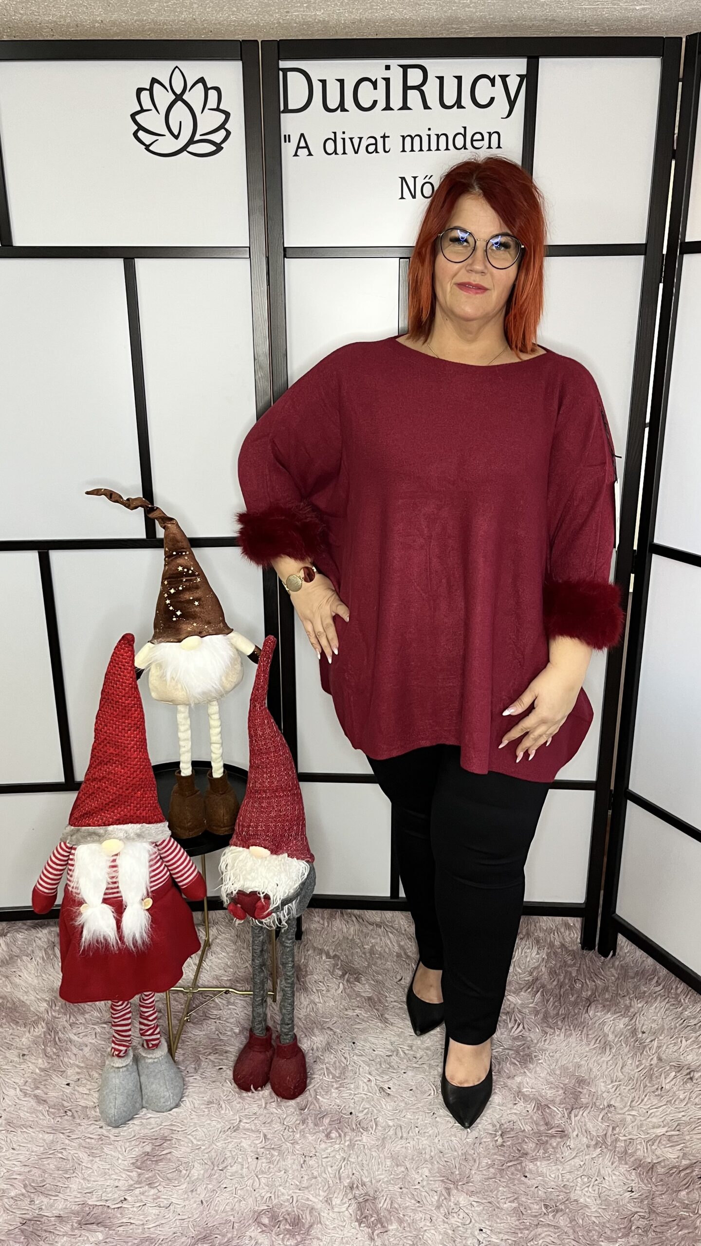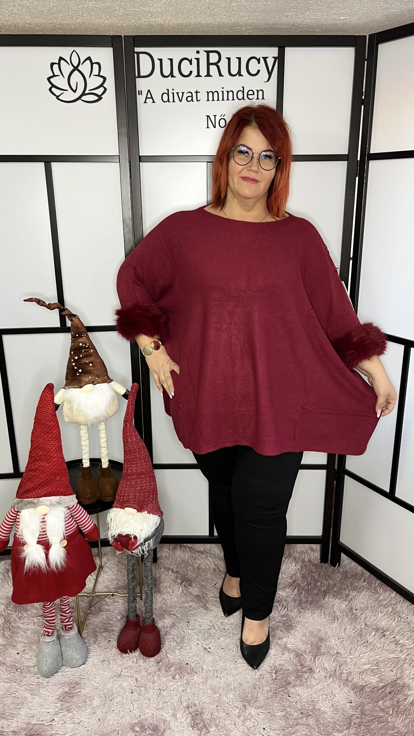 Igazán különleges, szőrmés ujjú, kerek nyakú, oversize kötött felső. A felső anyaga rugalmas, bármekkora méretre jó.