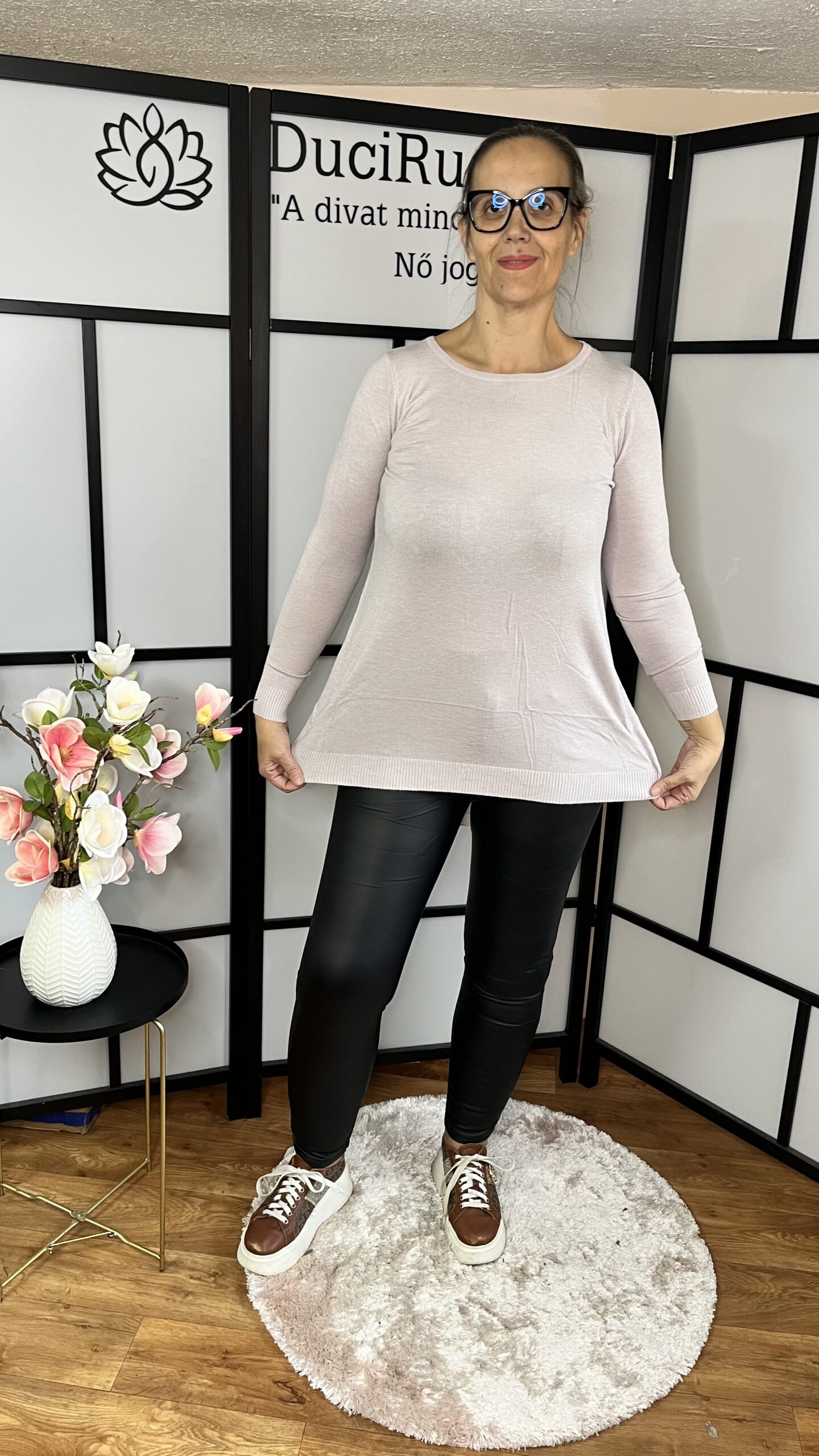 Hátul muszlin ing betéttel díszített gépi kötött felső, gyönyörű ékben szabott hátul. Hétköznapi viseletre is kiváló, nagyon csinos, csajos viselet.