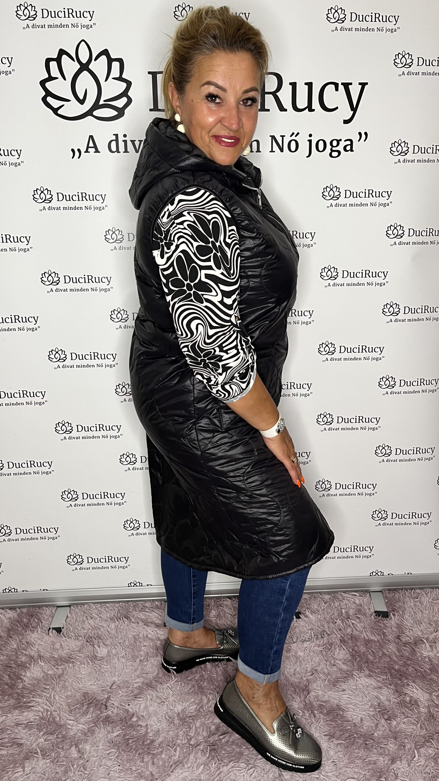 Olasz méret nélküli, hosszított fazonú, nagyon divatos, steppelt kapucnis mellény. A mellény elöl pár centiméterrel rövidebb, mint hátul.