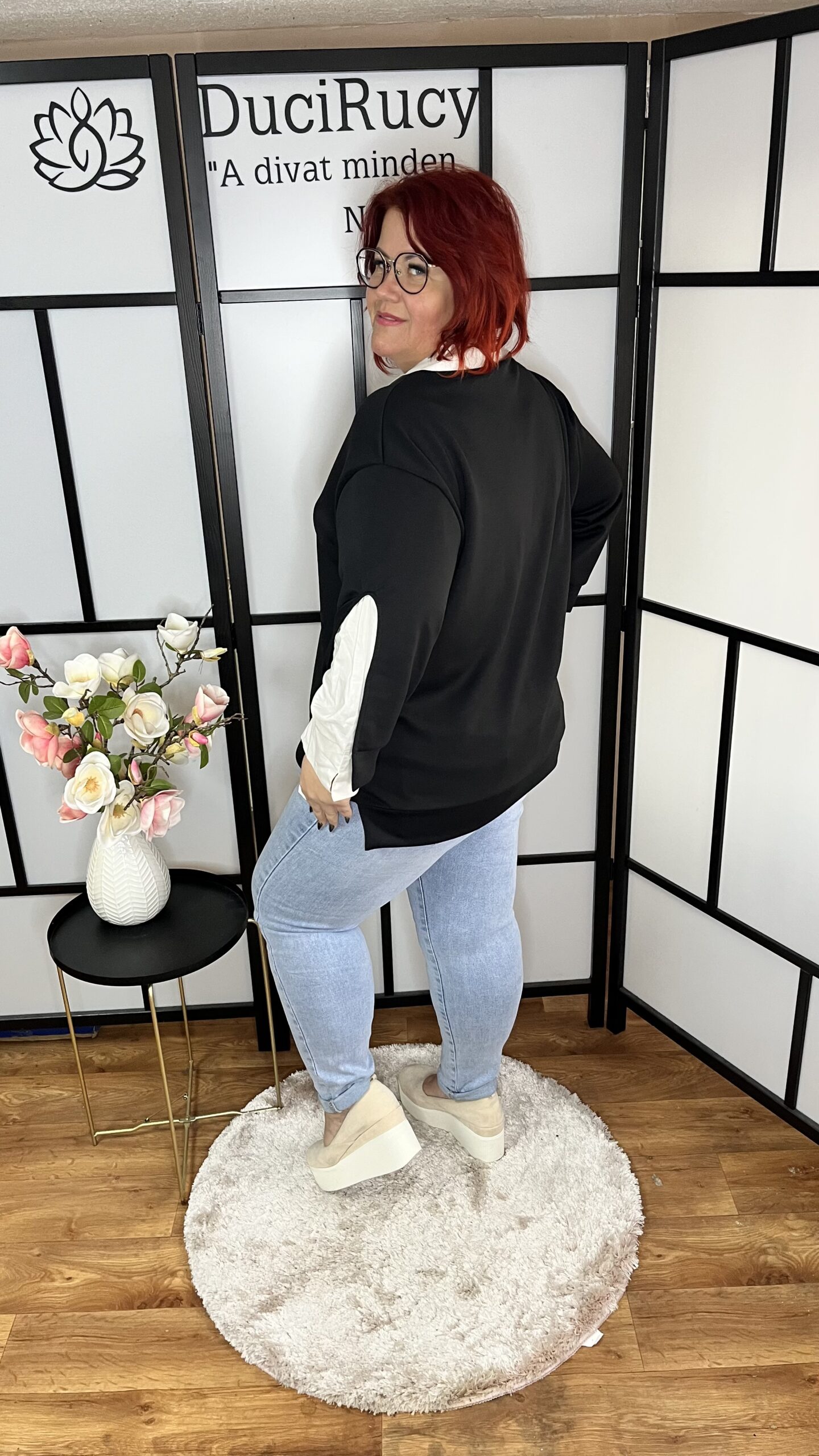 Igazán különleges megoldással megtervezett, inggel kombinált pamut felső. A felső nyak része, valamint az ujja vászon inggel került kombinálásra. A pamut anyag rugalmas.