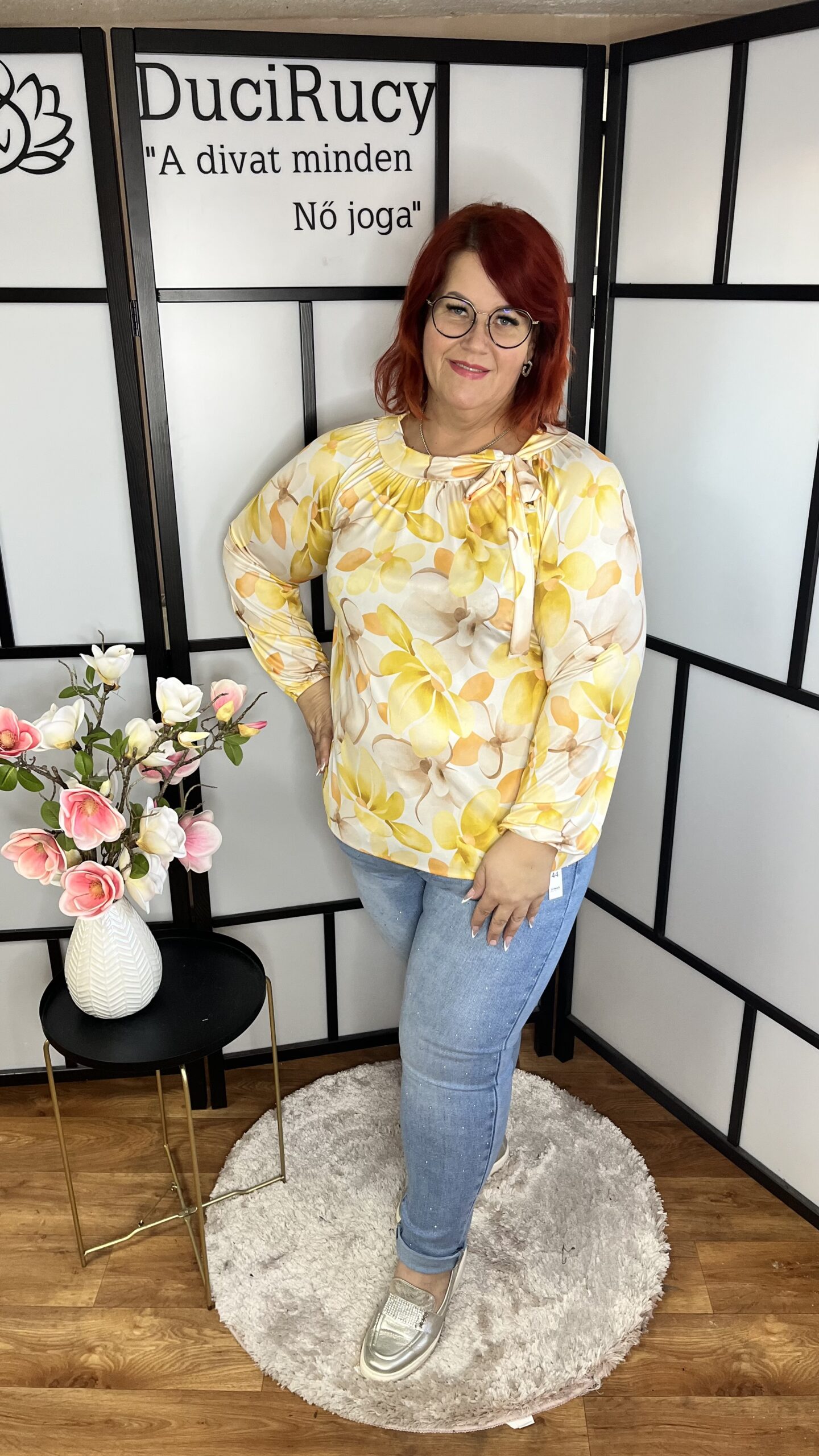 Jégselyem anyagú, megköthető nyakú gumis aljú felső citrom virág mintával mennyiség