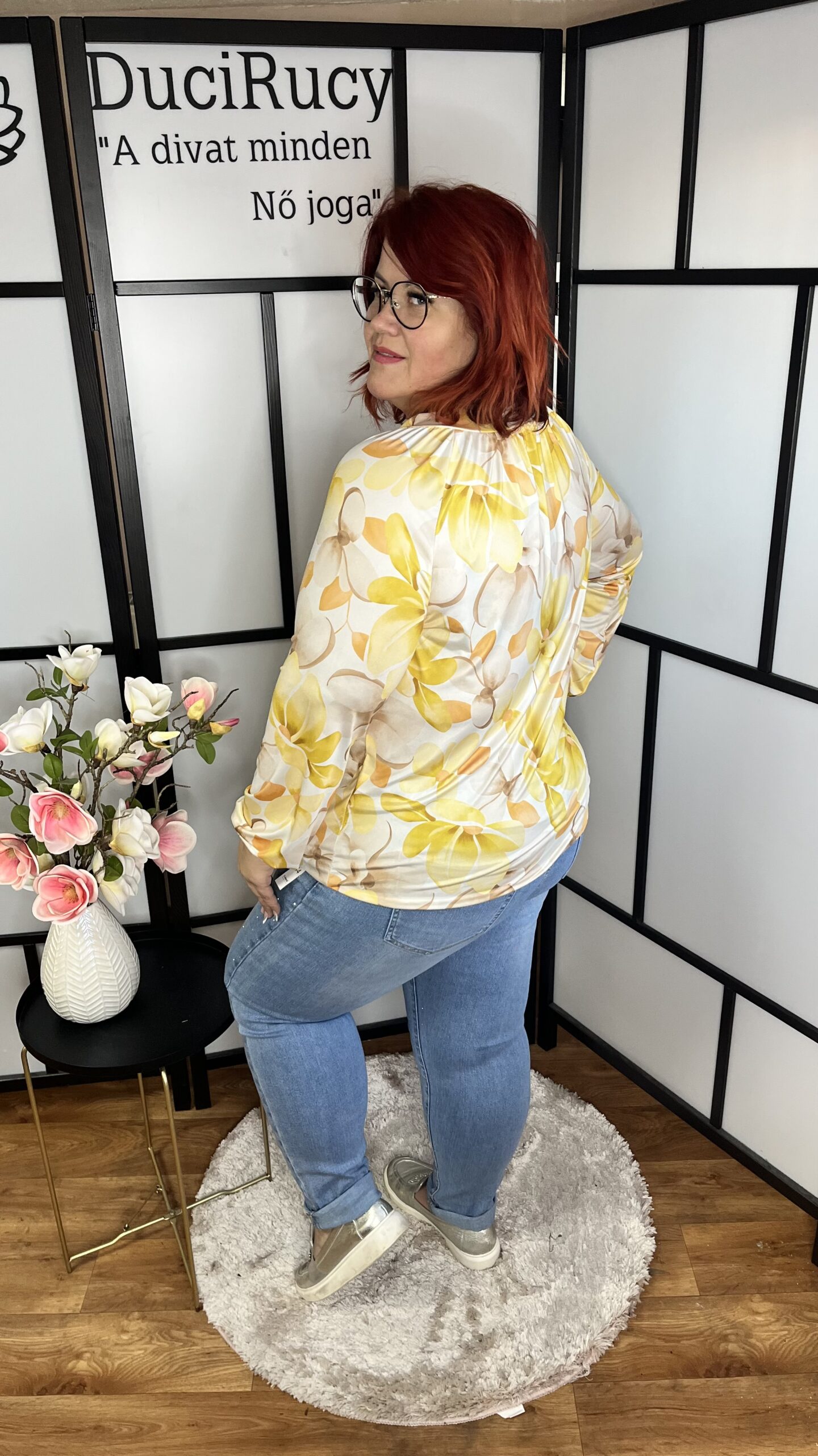 Jégselyem anyagú, megköthető nyakú gumis aljú felső citrom virág mintával