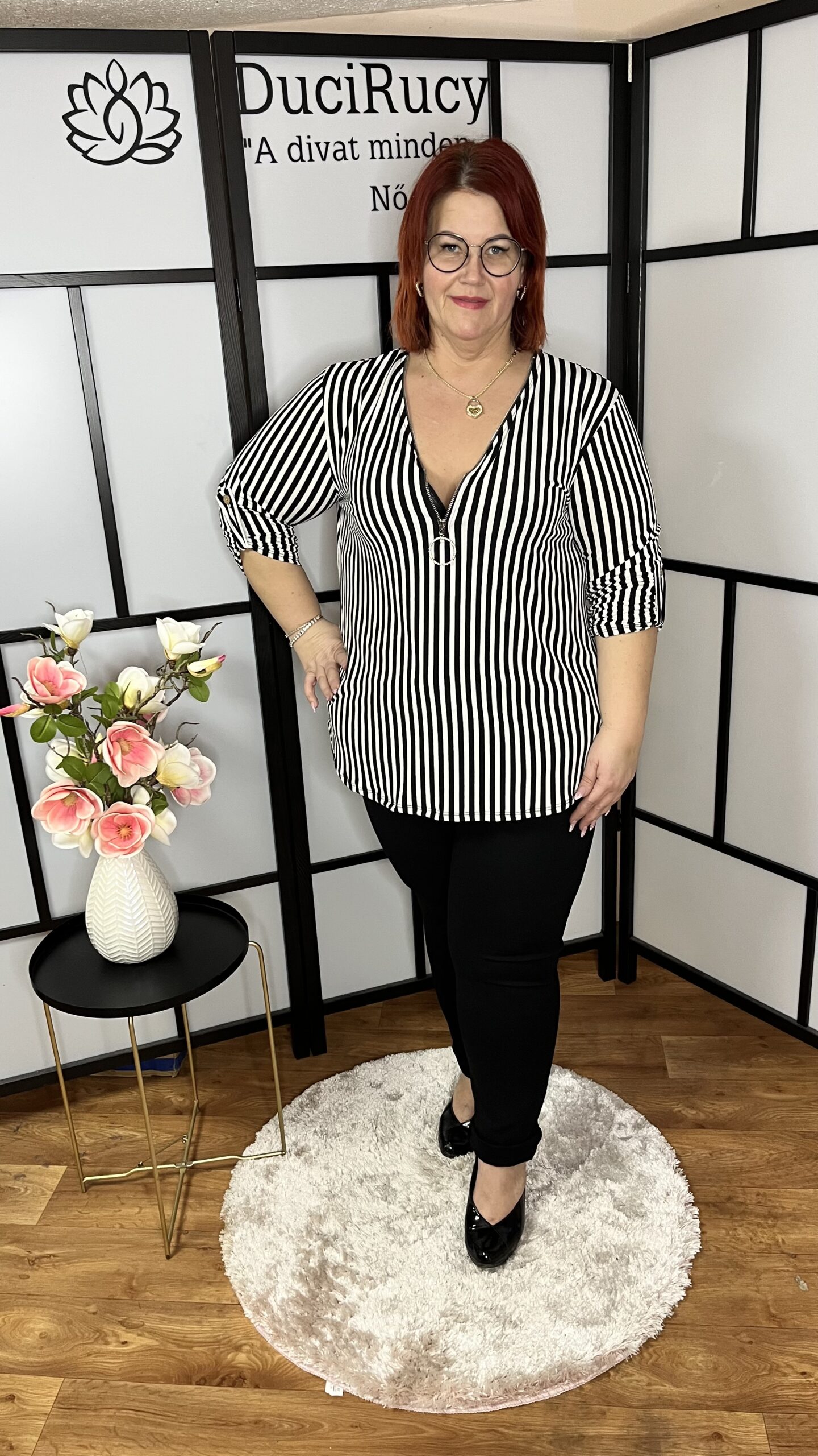 Jégselyem anyagból készült, kerekített fazonú, zipzáros mintás felső. A zipzárral kiváló dekoltázs varázsolható. A felső anyaga rugalmas anyagú. Nagyon könnyed, kellemes viselet.