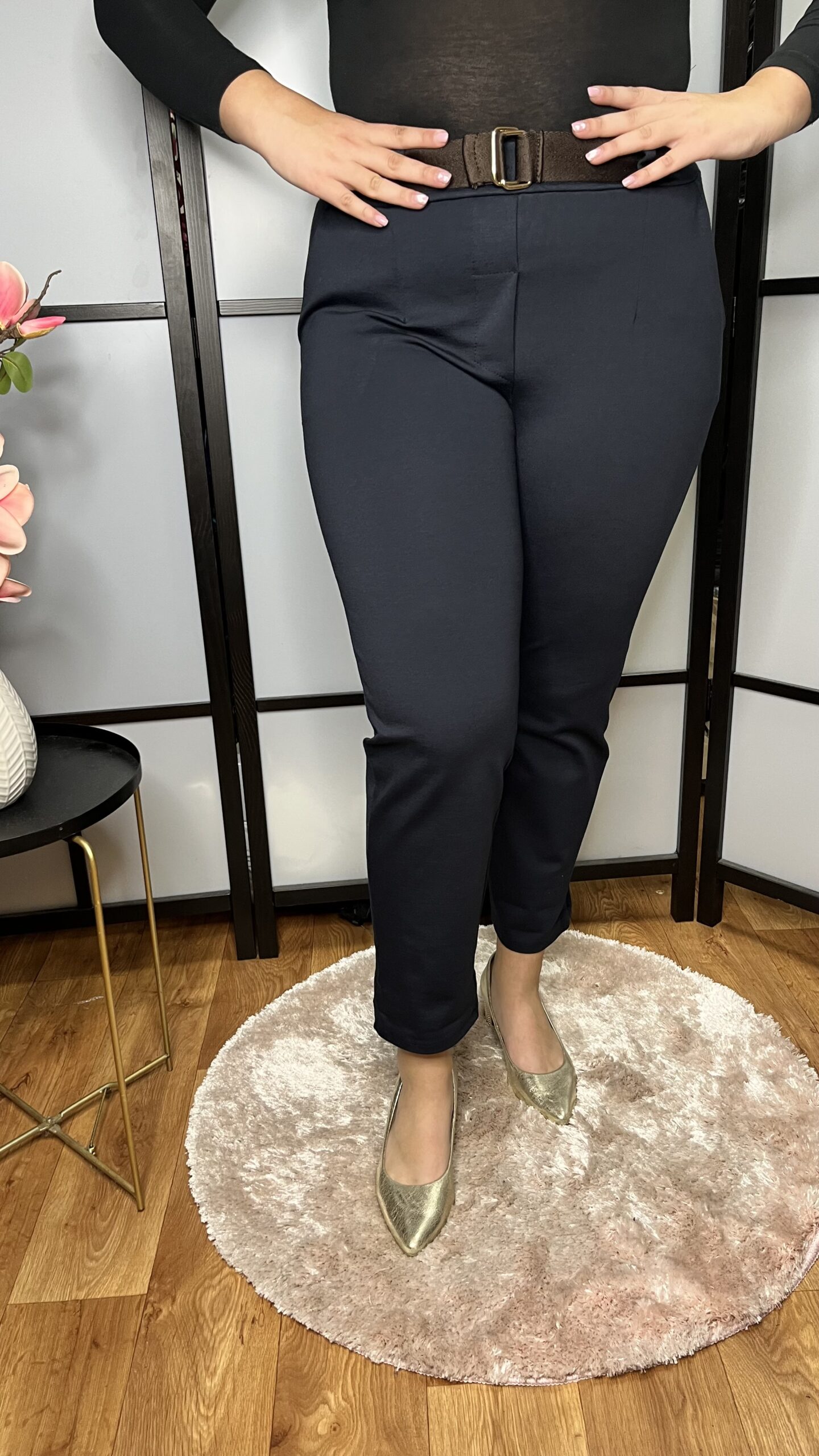 Klasszikus fazonú olasz prémium punto anyagból készült, gumis derekú nadrág hátul vágott díszzsebbel. Fantasztikusan kényelmes, ez a nadrág bárhova felvehető, nagyon csinos szabású.