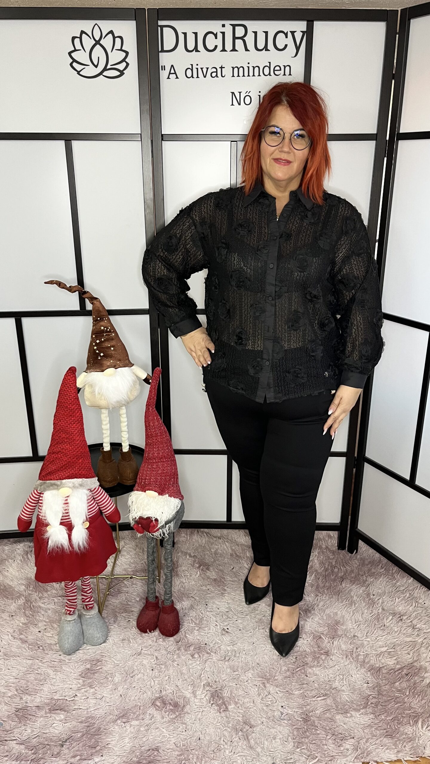 Különleges és egyedi horgolt ing 3d virágokkal díszítve. Végig gombos fazonú felső. Ez biztosan nem jön veled szemben az utcán. Bármilyen alkalomra felvehető, de hétköznapra is tökéletes választás.