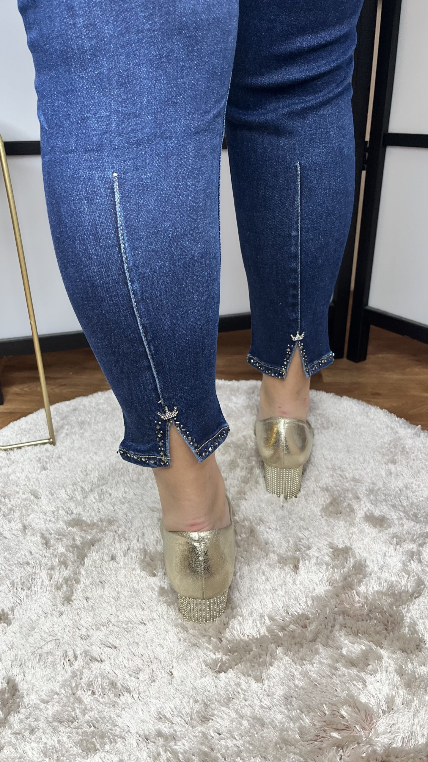 Különleges és nagyon egyedi extra rugalmas sötétkék farmernadrág szűk szárral bokánál és hátul kövekkel kirakott dísszel. Ez a farmer nem jön szembe veled Magyarországon, ez csak itt a Ducirucynál kapható az egész országban. Extra méretek! Puha és extrán rugalmas anyag.