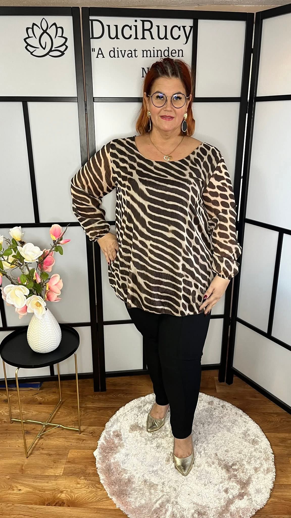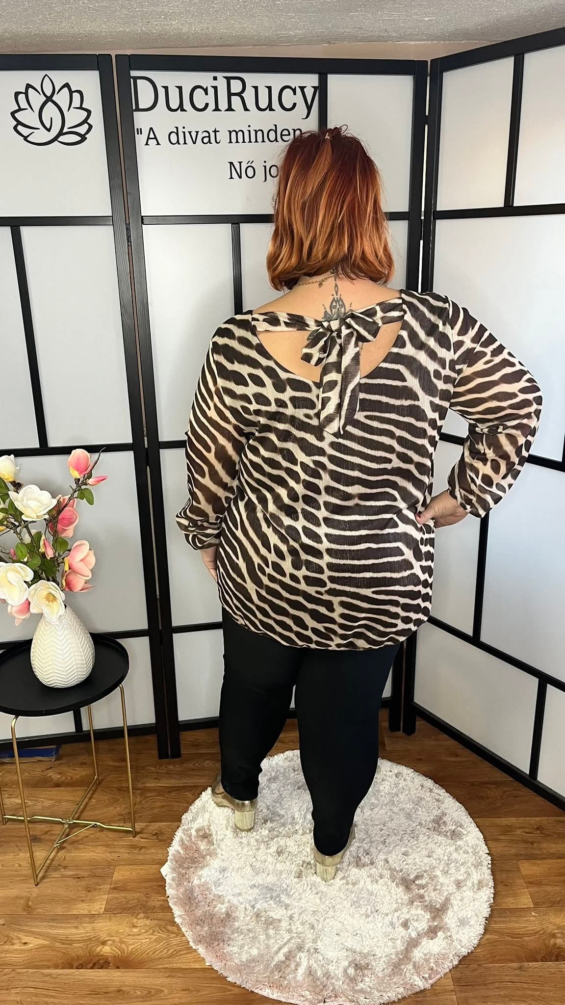 Különleges, kissé fényes anyagból készült kétrétegű felső hátul megkötős fazonnal barna színben