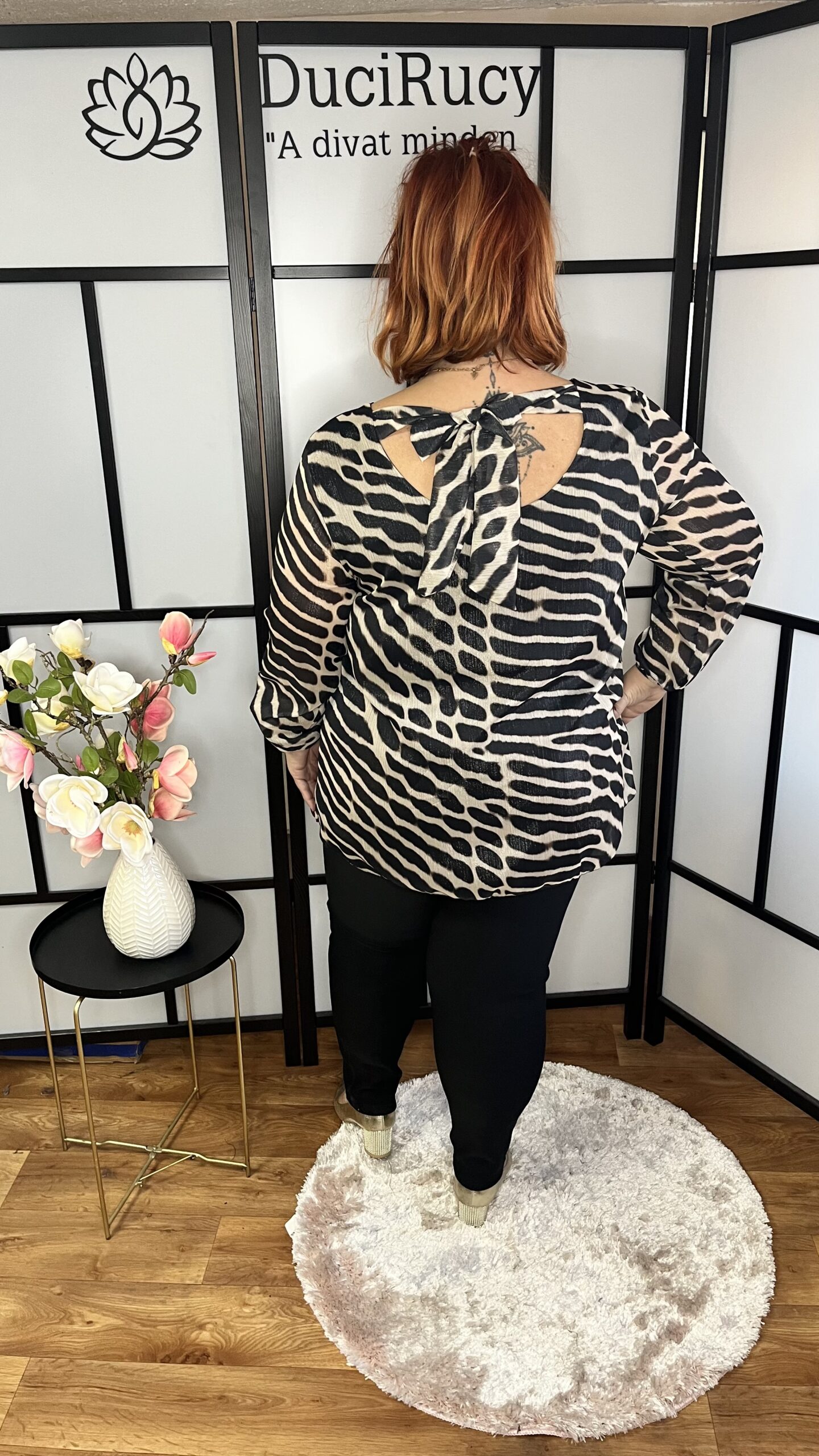 Különleges, kissé fényes anyagból készült kétrétegű felső hátul megkötős fazonnal. Bármilyen alkalomra felvehető, gyönyörű felső.