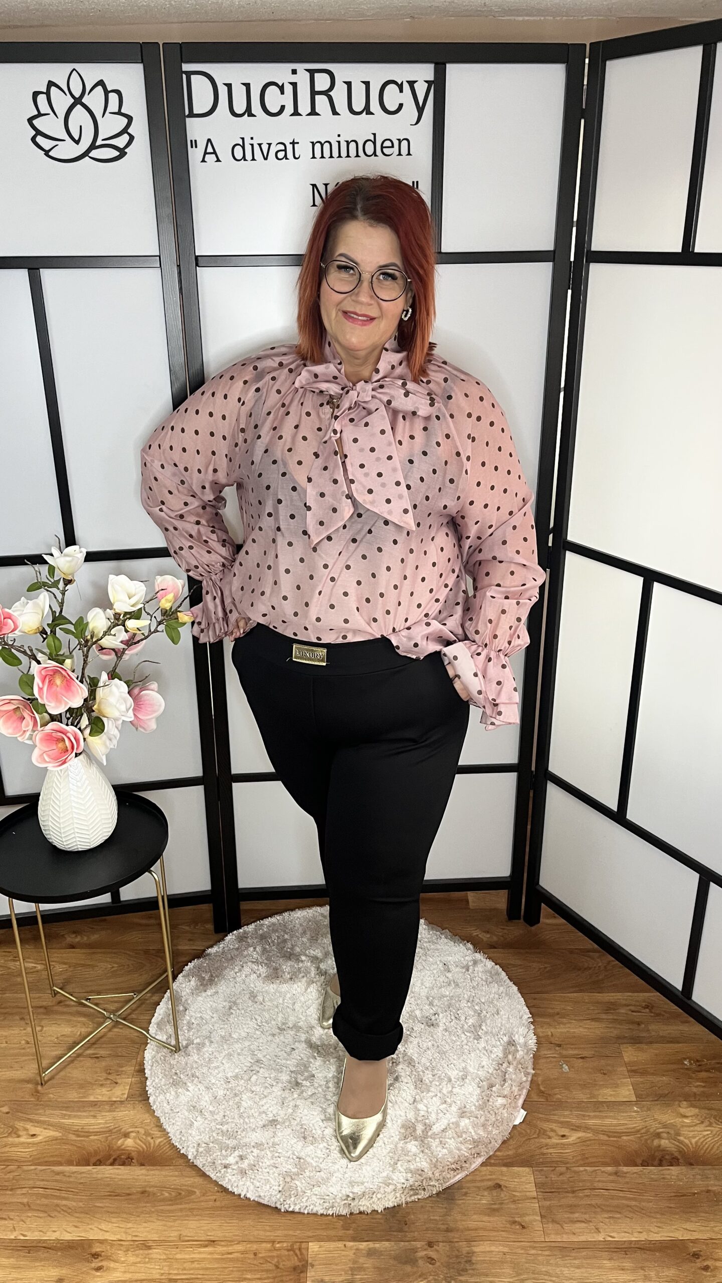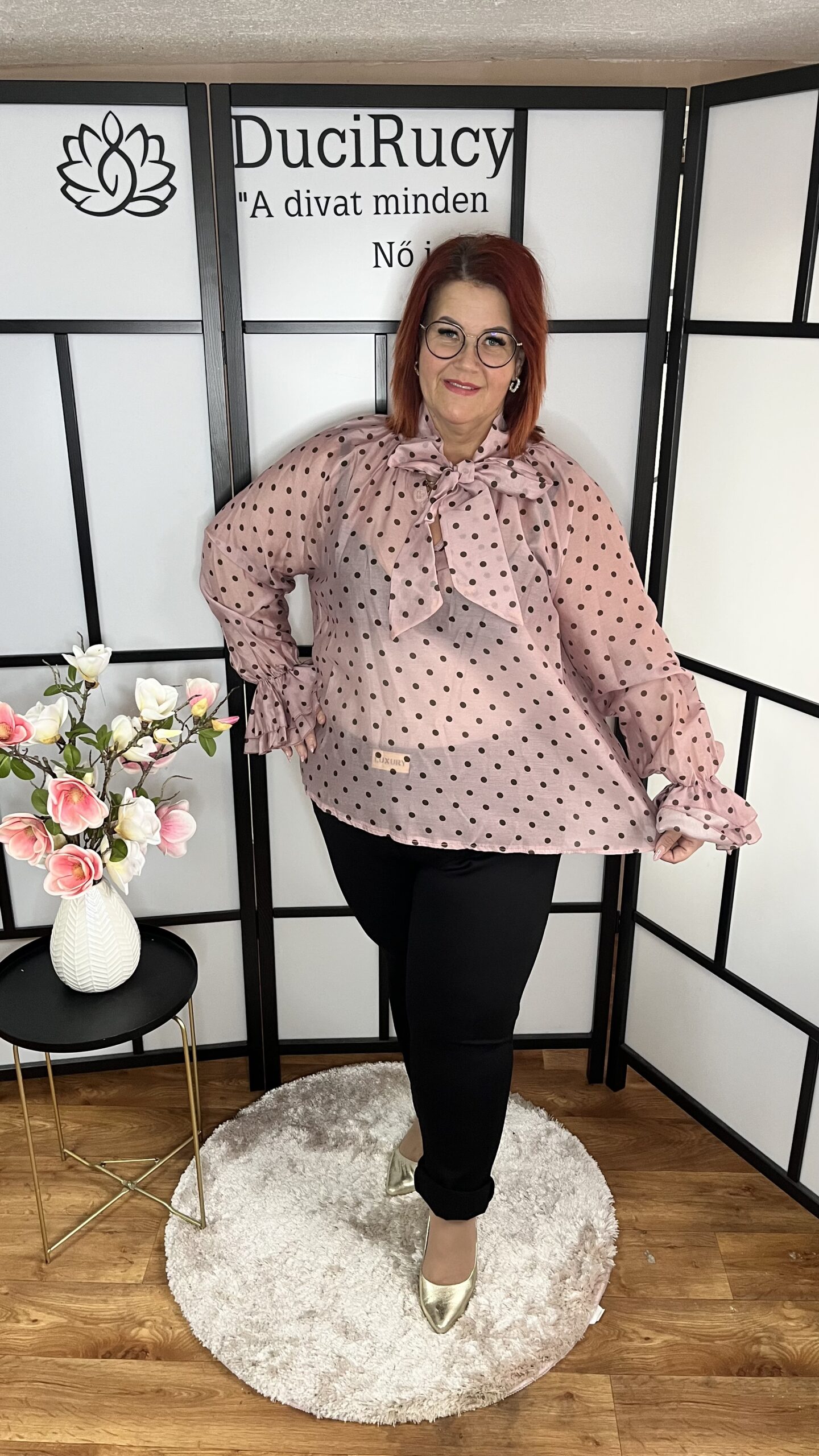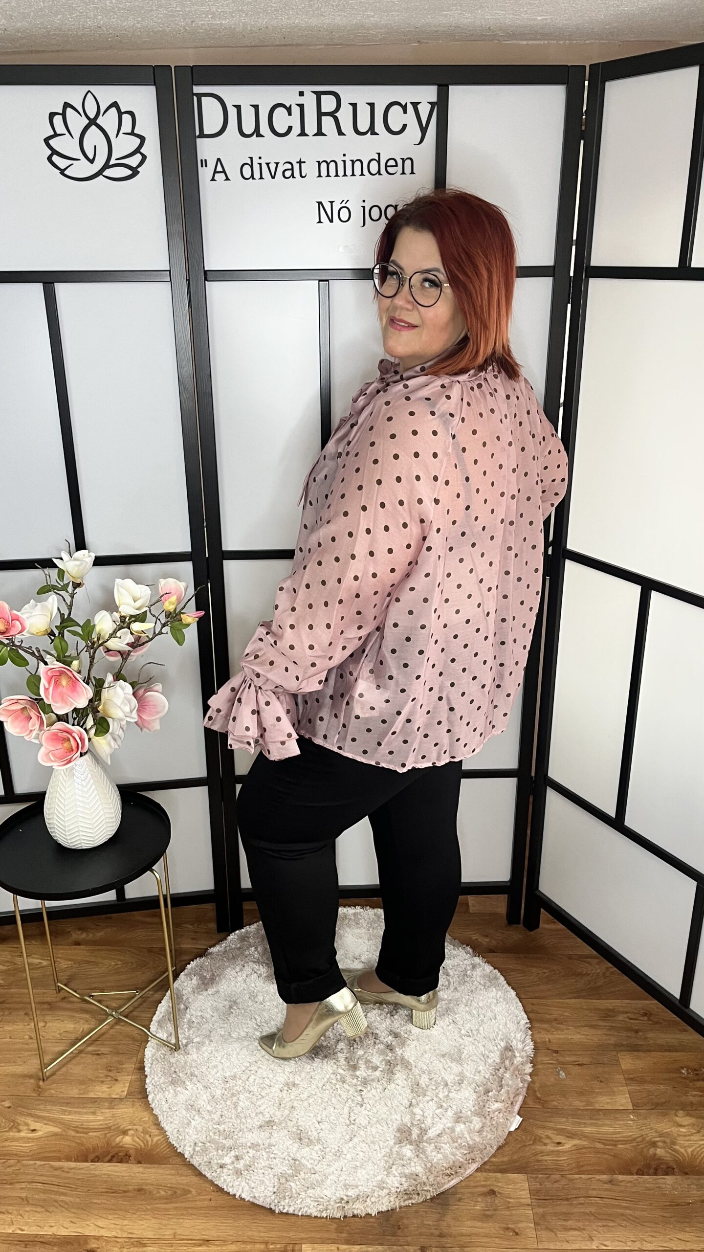 Különleges könnyed, légies pöttyös blúz nyaknál megköthető fazonnal púder színben