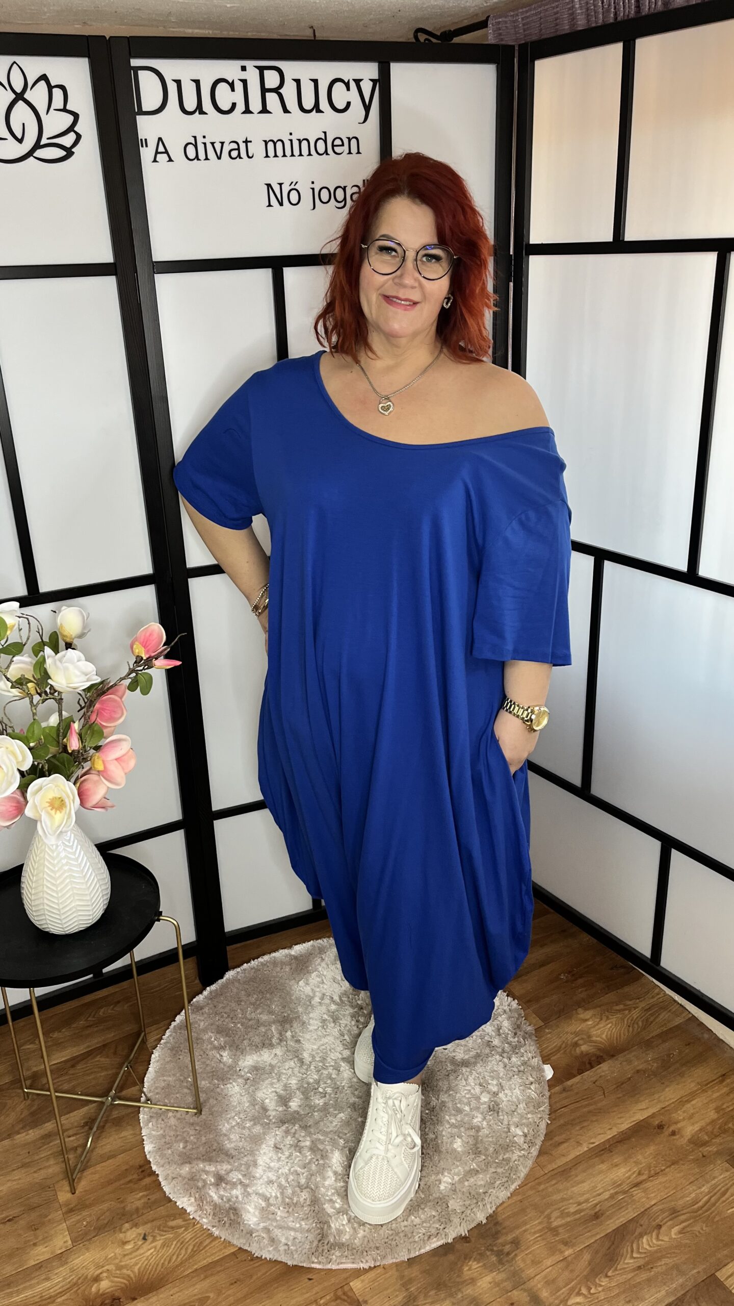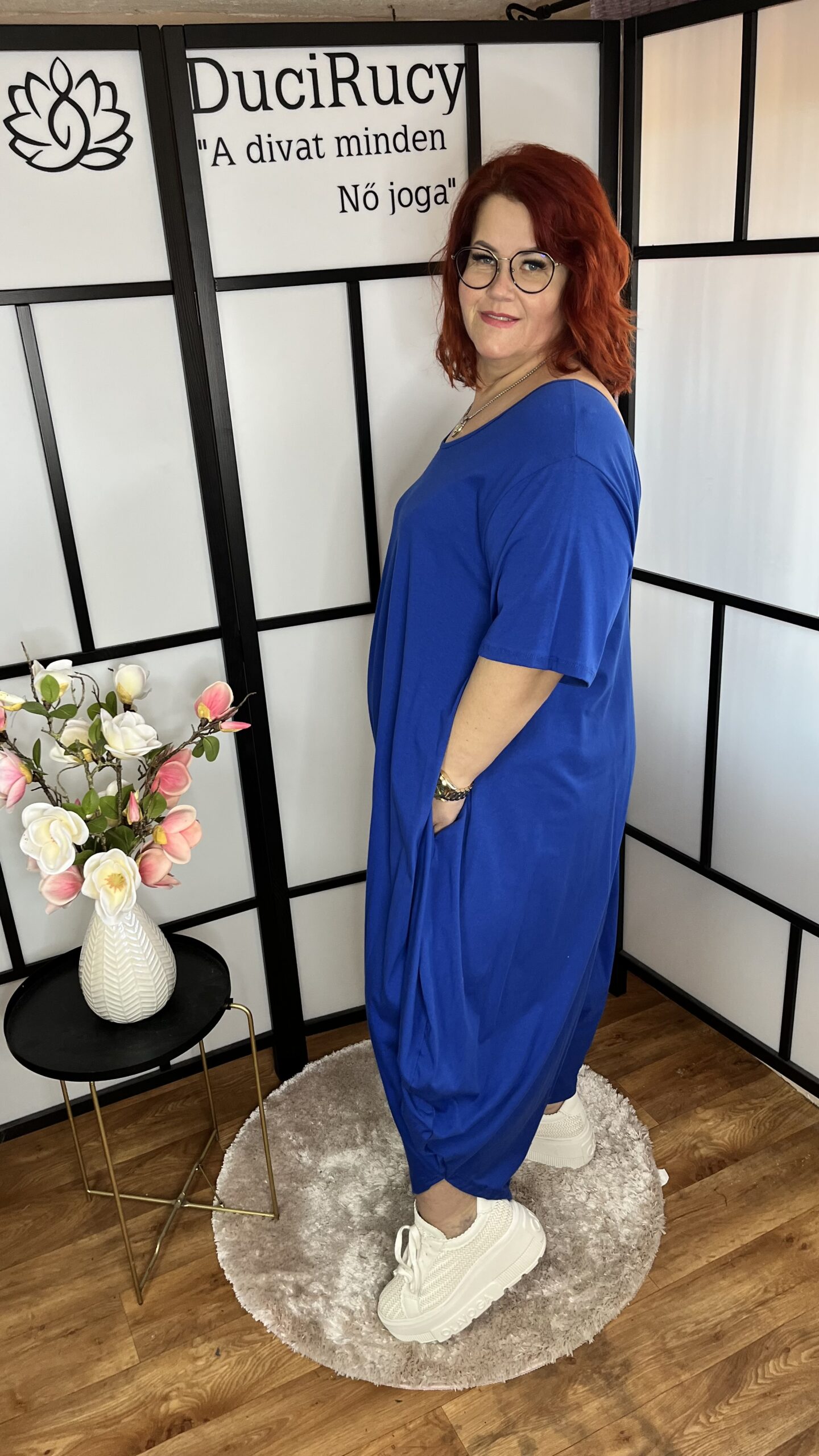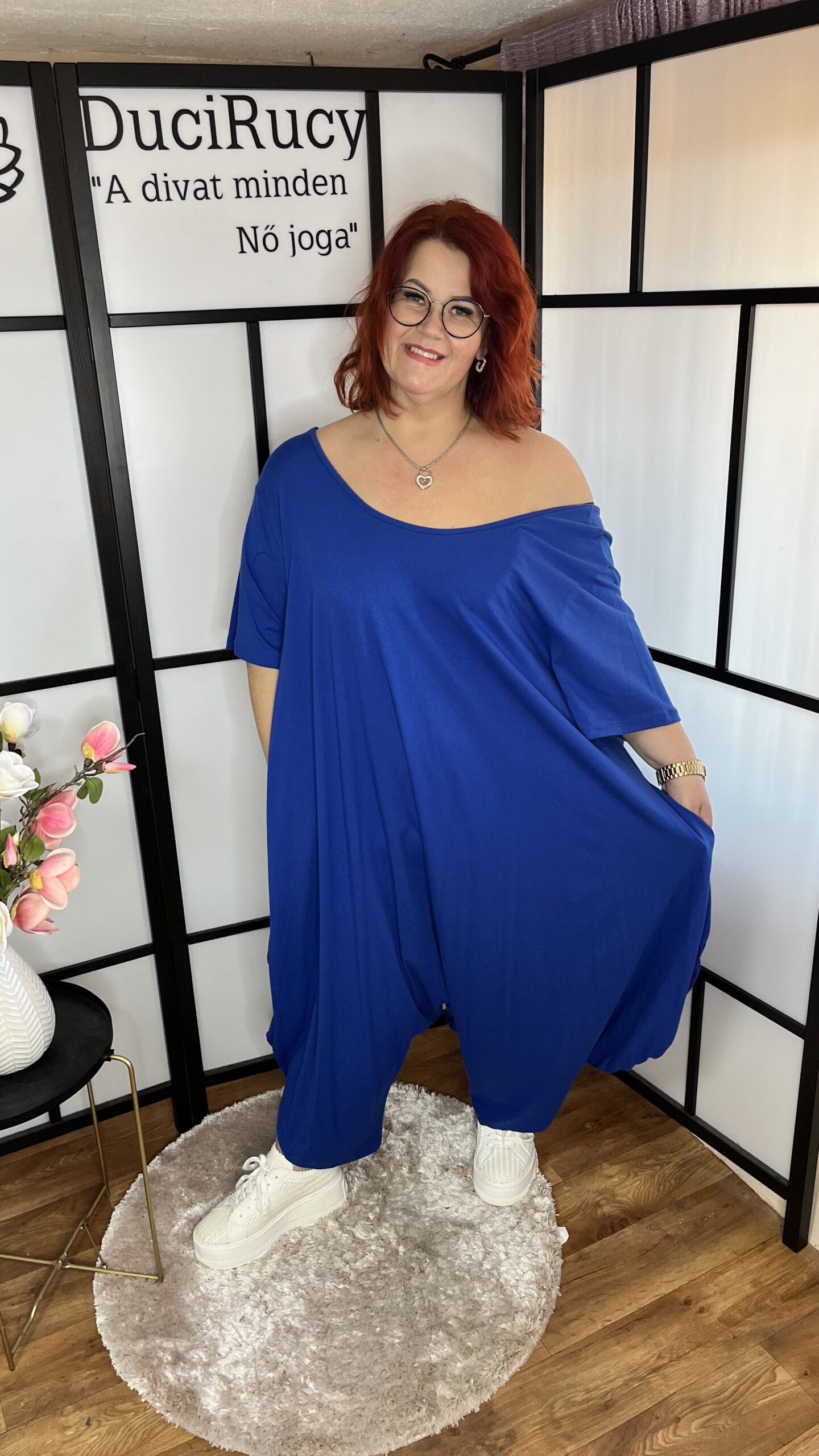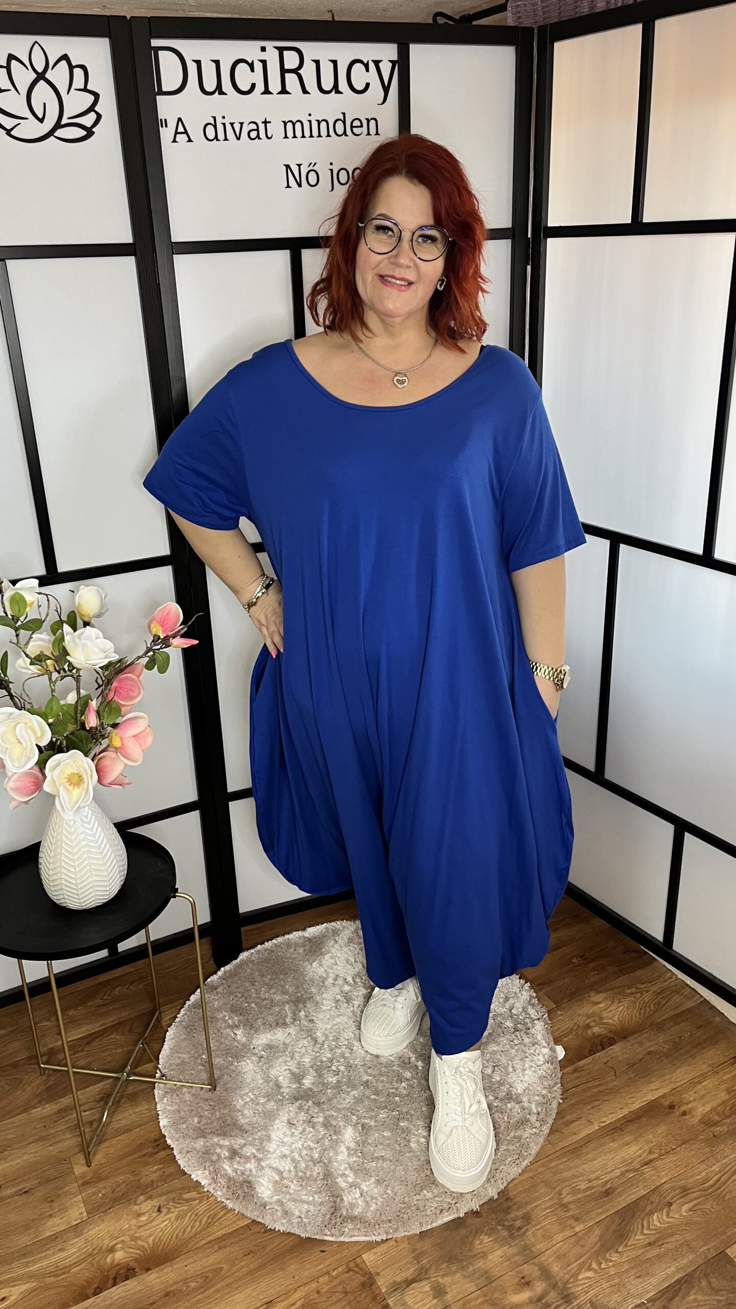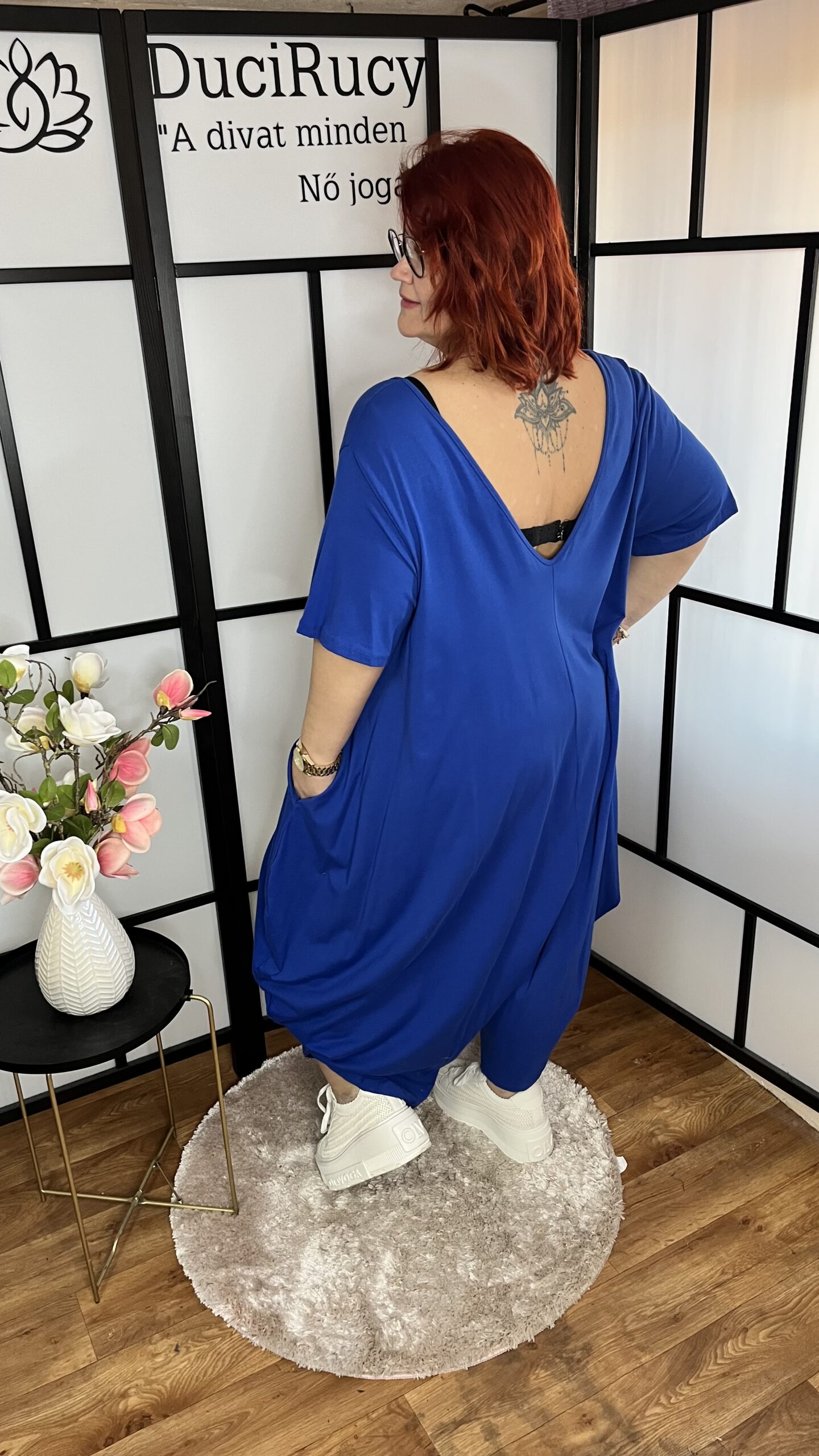Különleges oversize pamut overál sötétkék színben mennyiség