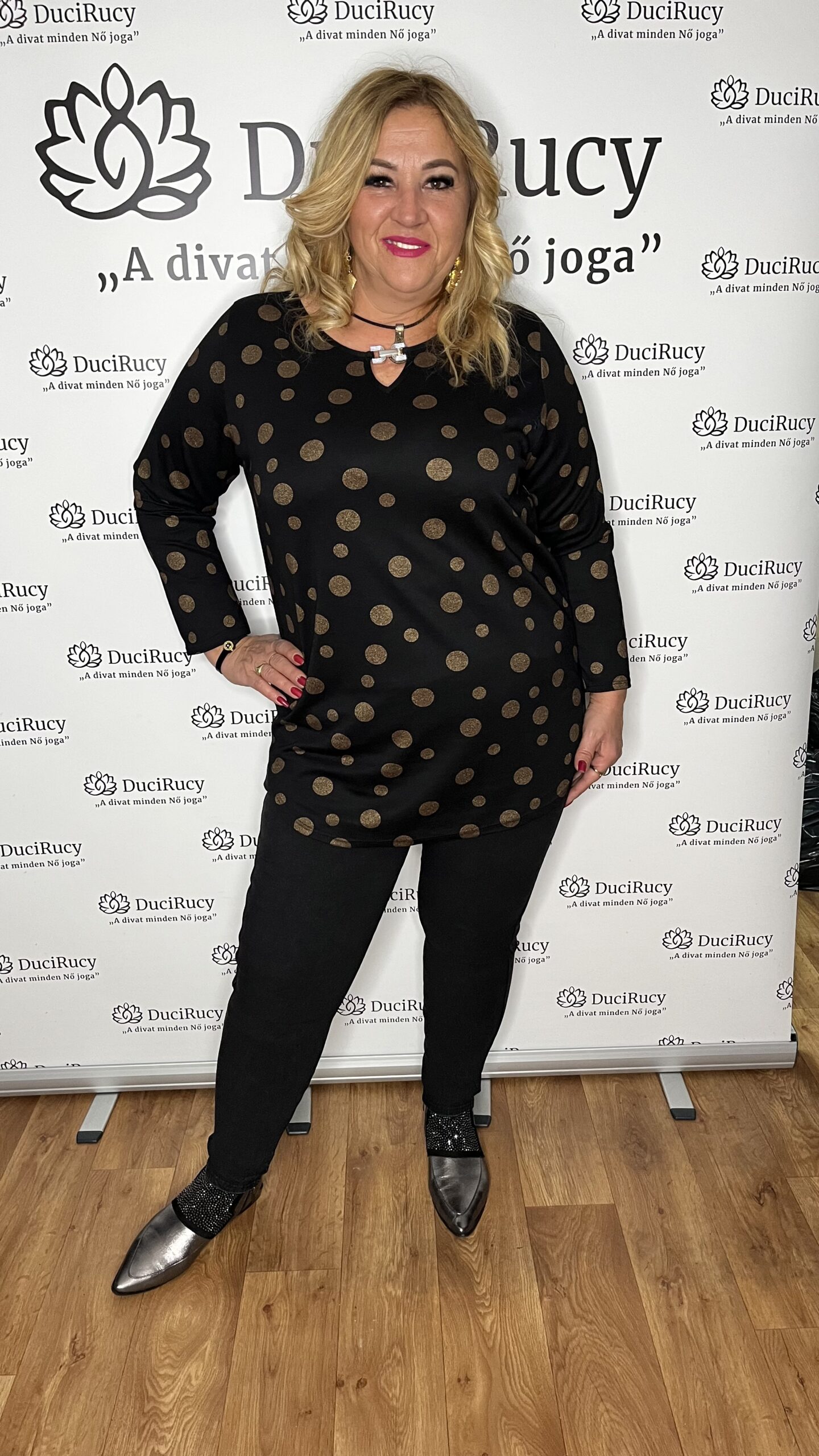 Lengyel kiváló minőségű, nagyméretű, pihe puha anyagból készült, kerekített tunika szuper fazonnal. Szemet gyönyörködtető szín-összeállításban.