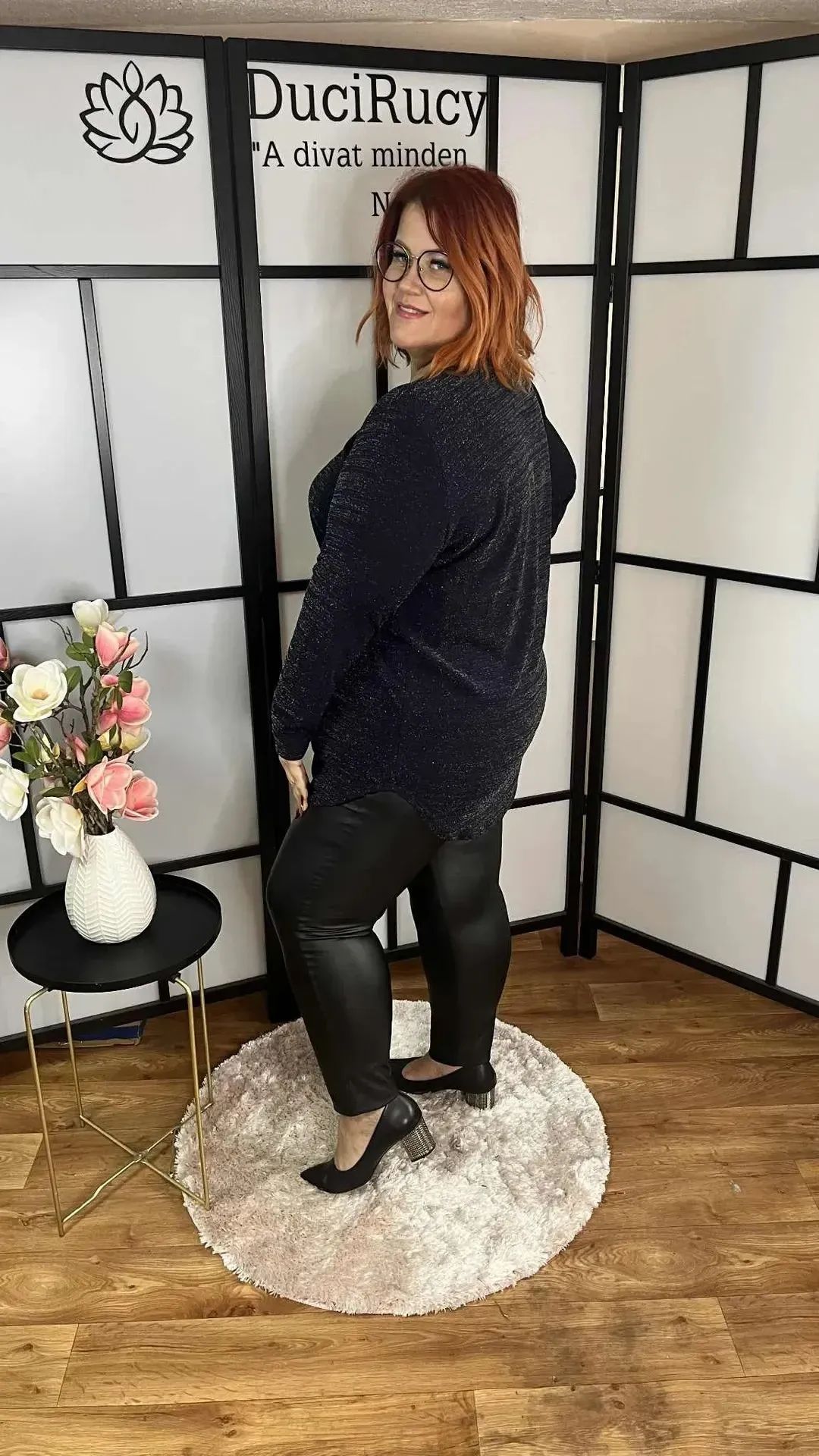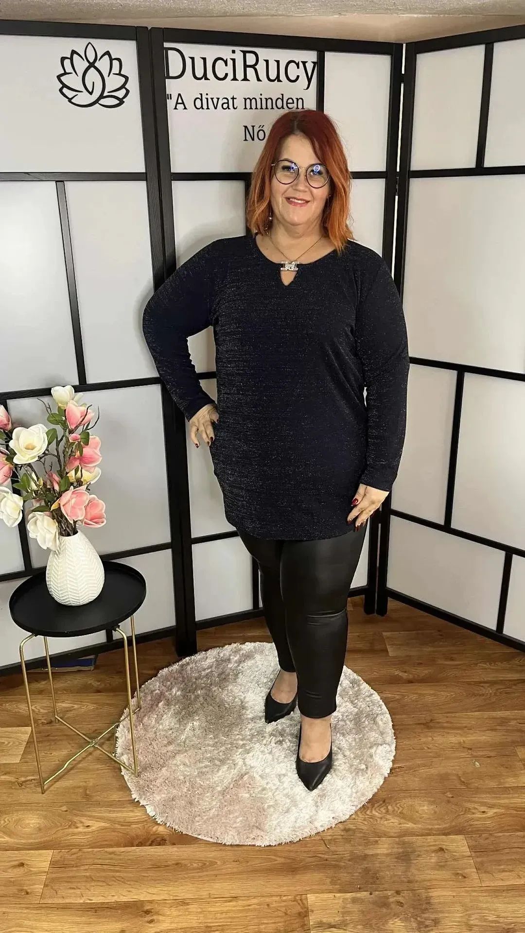 Lengyel, lurex, csillámos anyagból készült, csepp kivágású alkalmi felső, rugalmas anyagból. Csinos viselet akár egy évzáró vacsorán, karácsonykor, szilveszterkor akár egy szoknyával, akár egy alkalmi nadrággal.