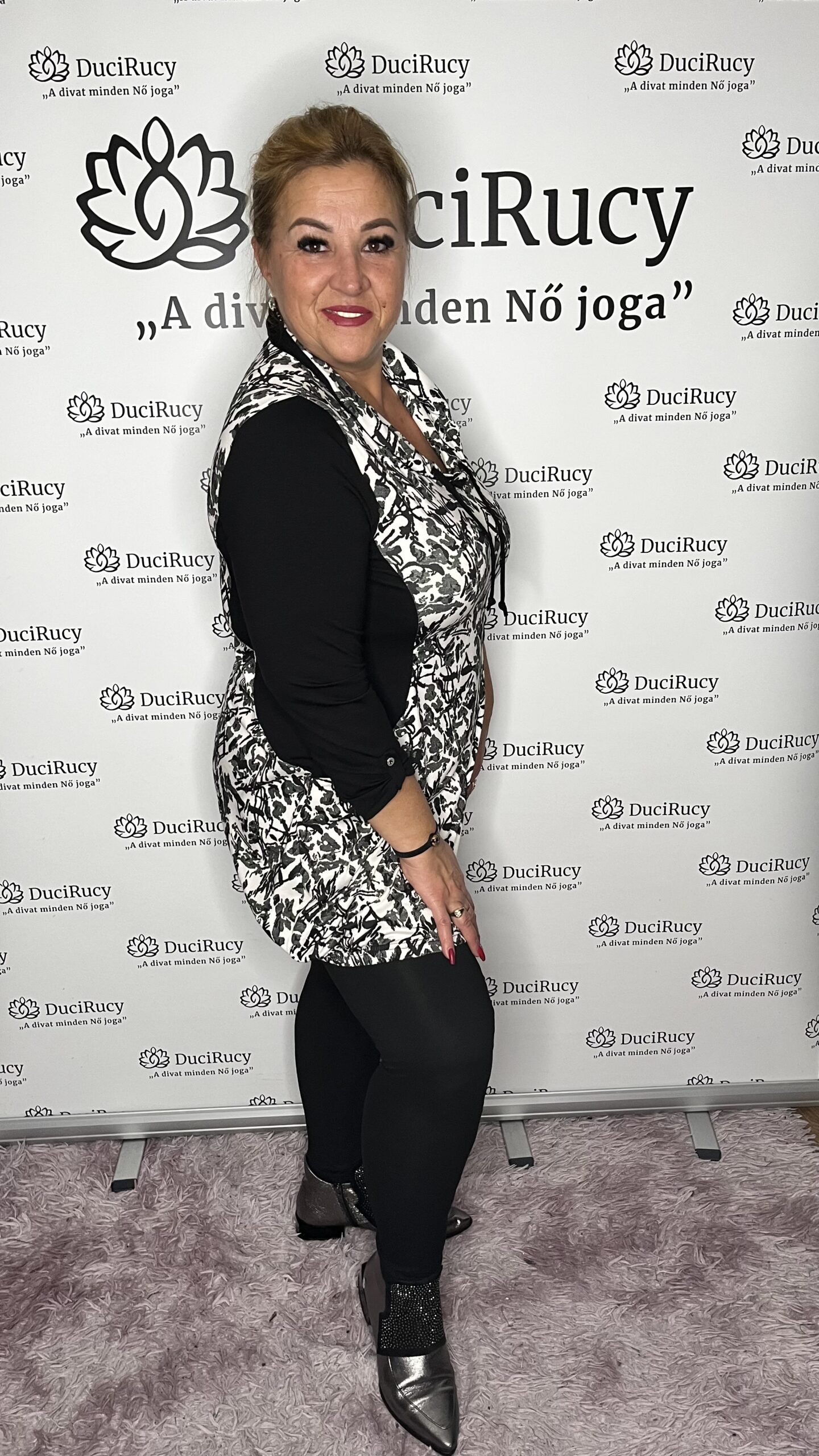 A modell a képeken a 44-es méretet viseli. A modell méretei: mell- és csípőbőség 120 cm, magassága 167 cm.