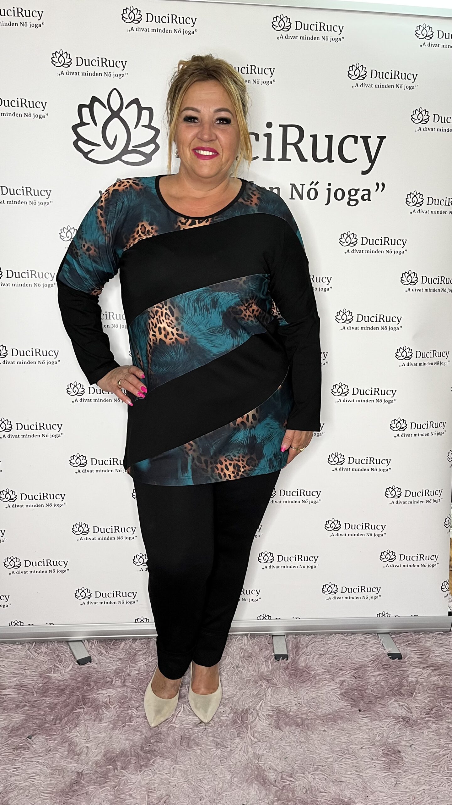 Magyar készítői, gyönyörű párduc mintás, csíkban szabott, egyenes fazonú tunika. Nagyon mutatós darab, bármilyen alkalomra tökéletes választás lehet.